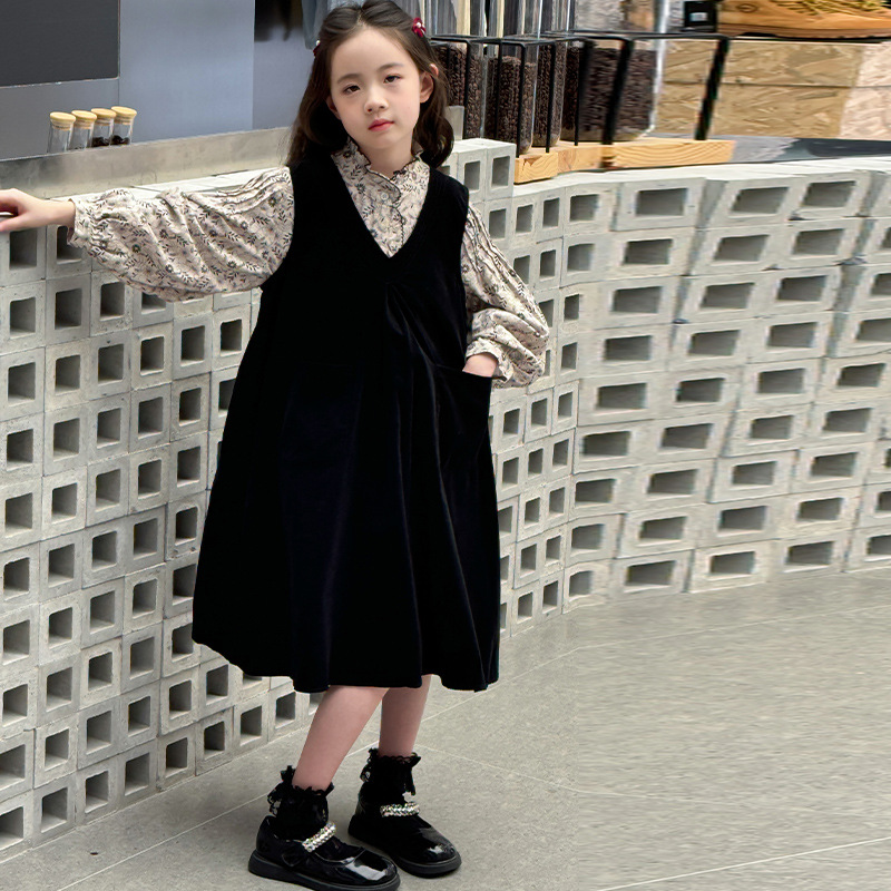 소녀 꽃 셔츠 코듀로이 투피스 세트 2025 봄 새로운 큰 소년 한국 스타일 서양 스타일 빈 스커트 투피스 세트스토어 가기
