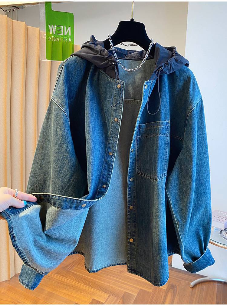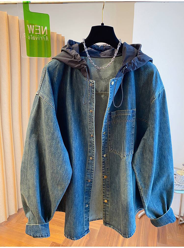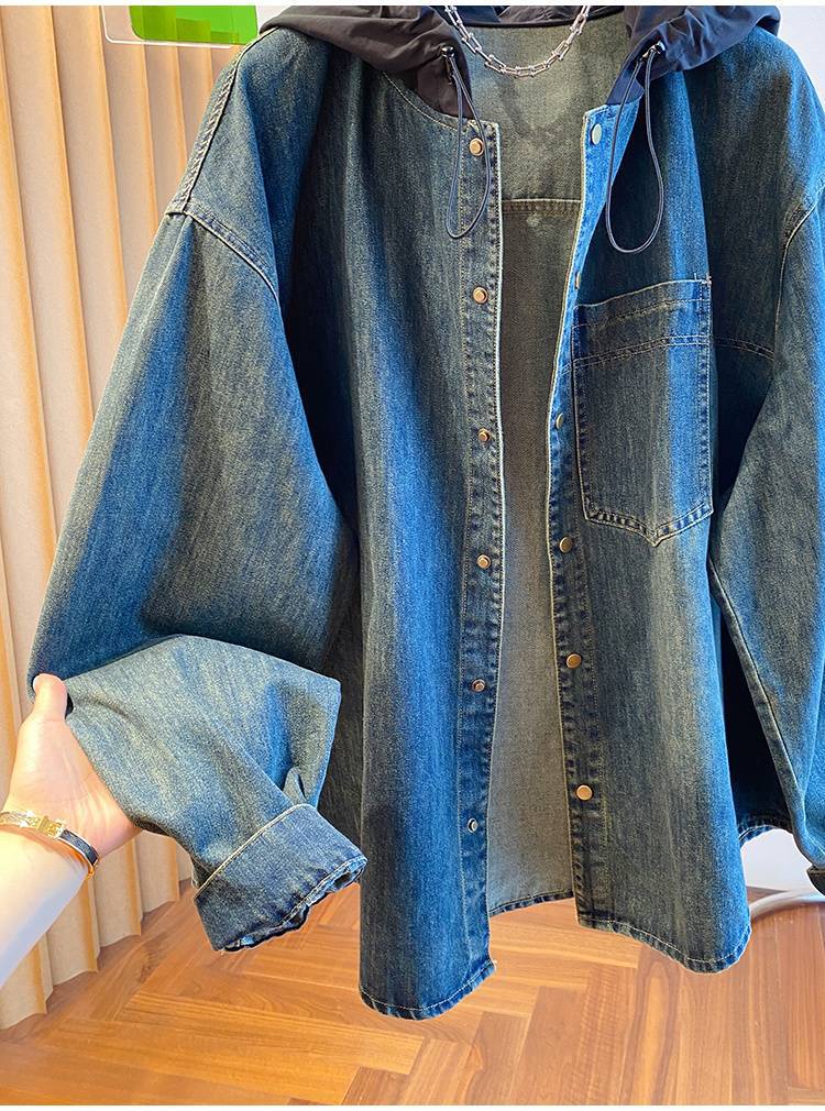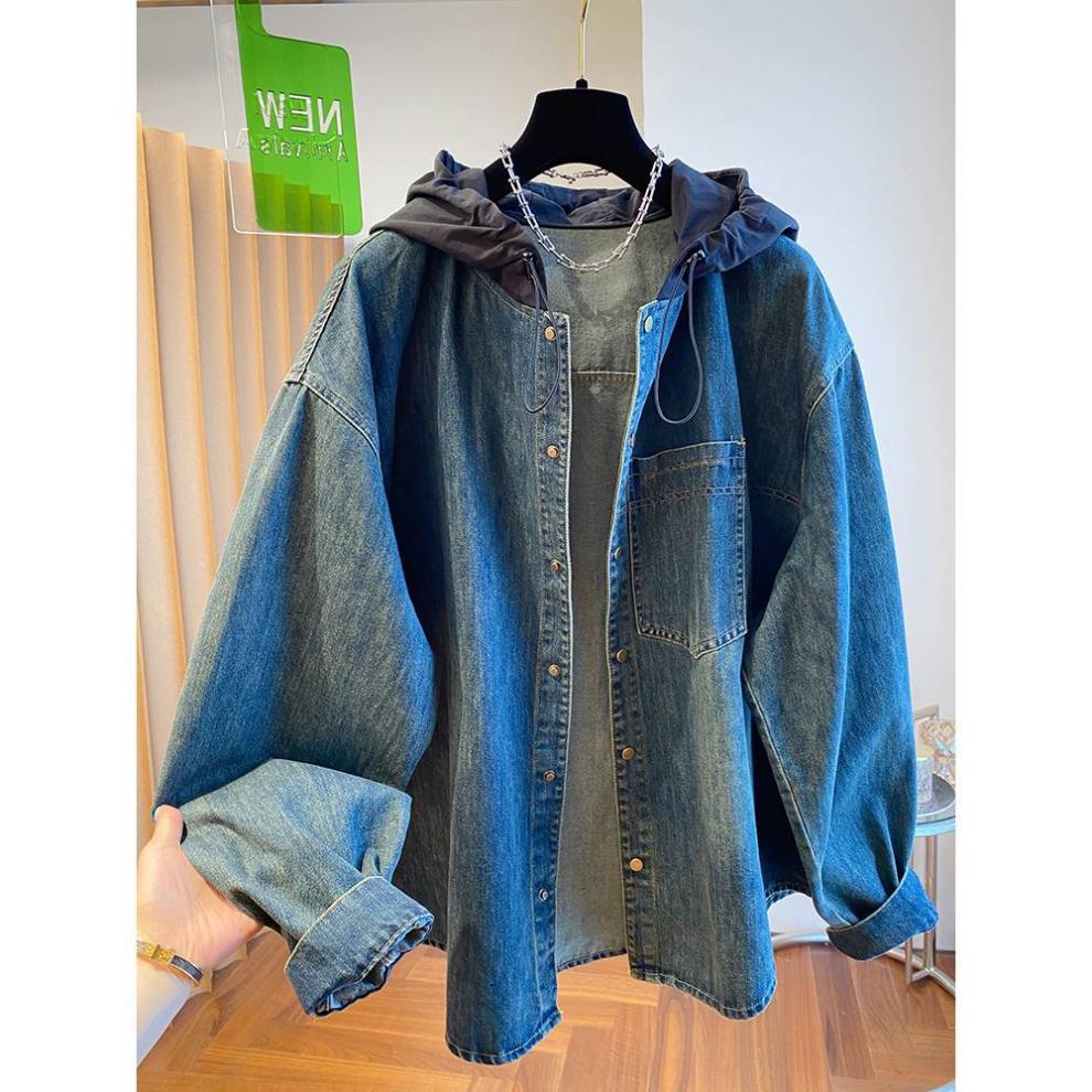 빈티지 후드 데님 셔츠 재킷 여성 이른 봄 2025 새로운 한국 느슨한 대형 에디션 하이 엔드 후드 탑스토어 가기