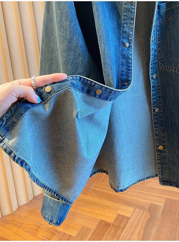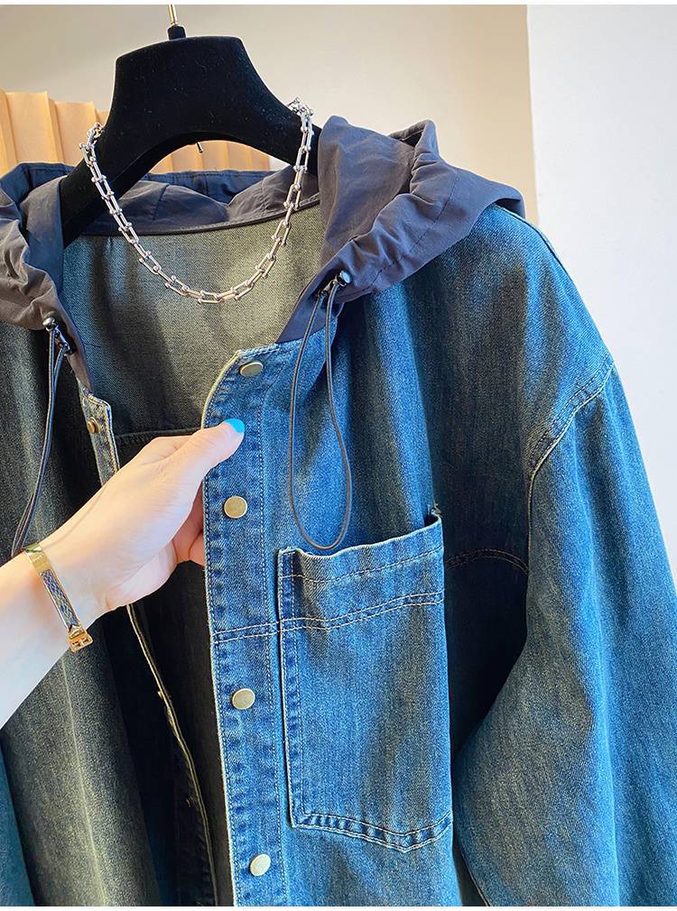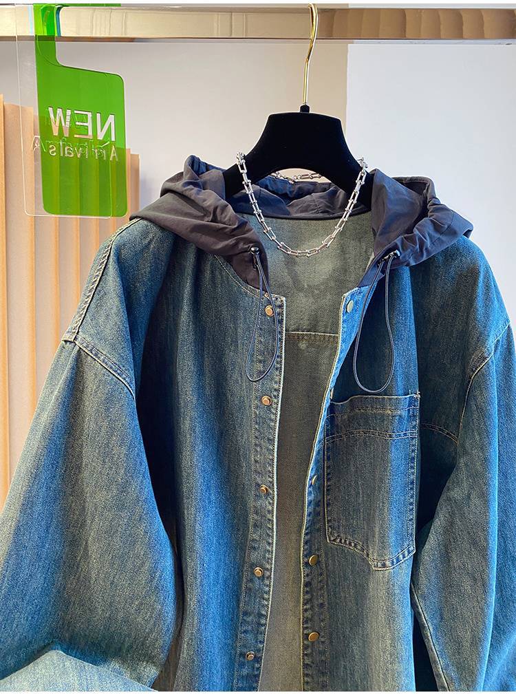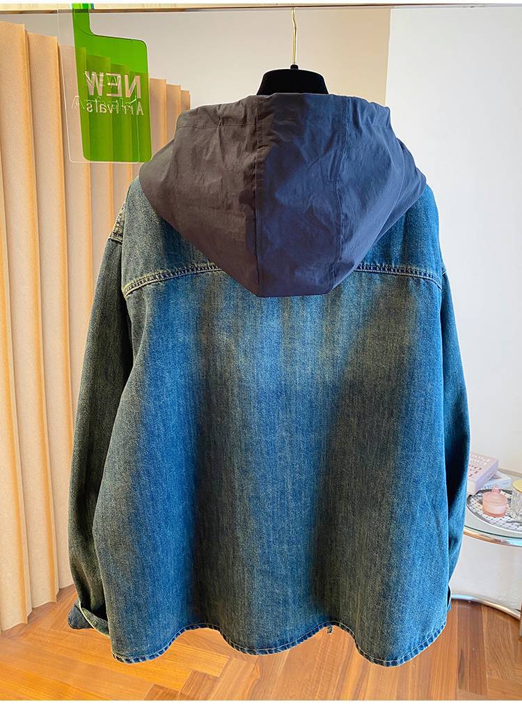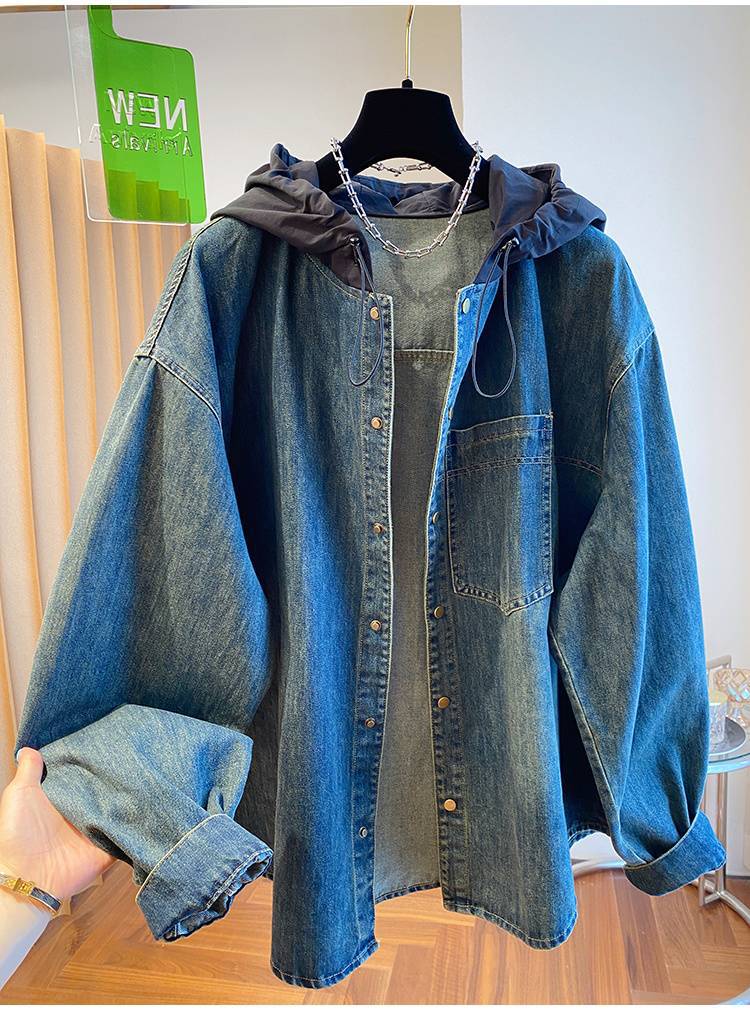 빈티지 후드 데님 셔츠 재킷 여성 이른 봄 2025 새로운 한국 느슨한 대형 에디션 하이 엔드 후드 탑스토어 가기