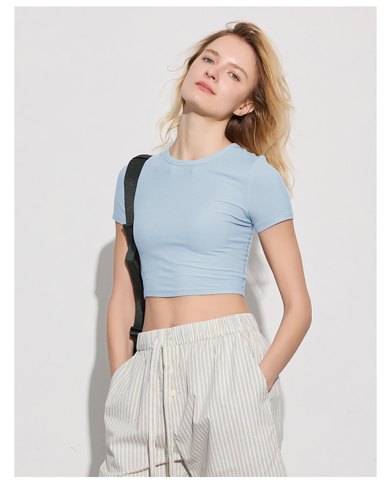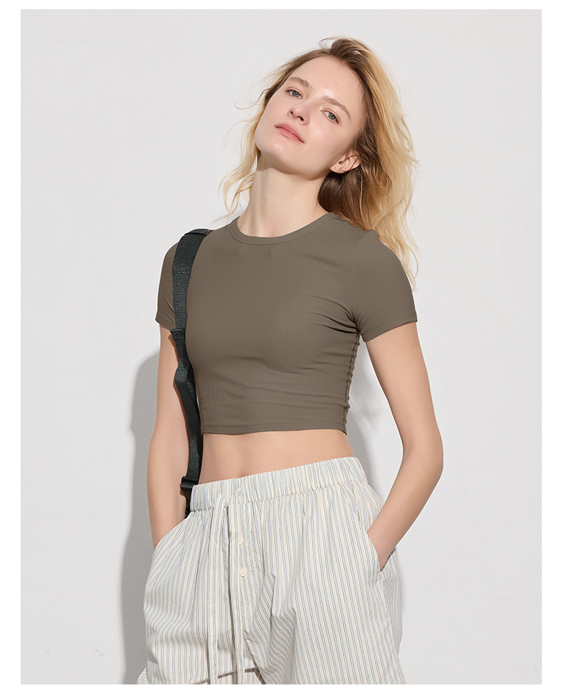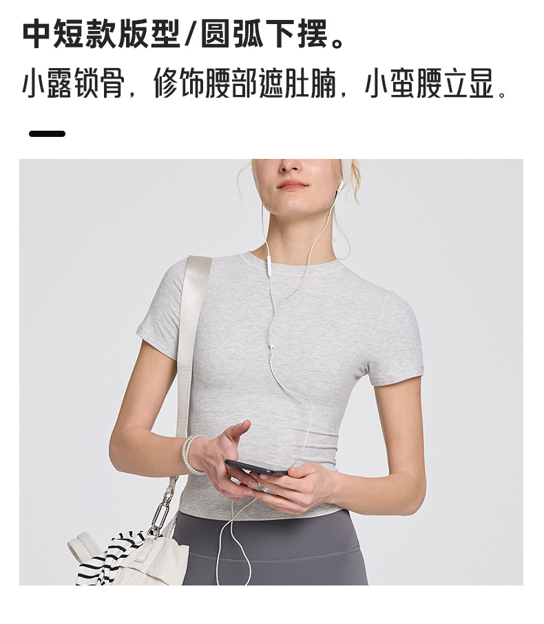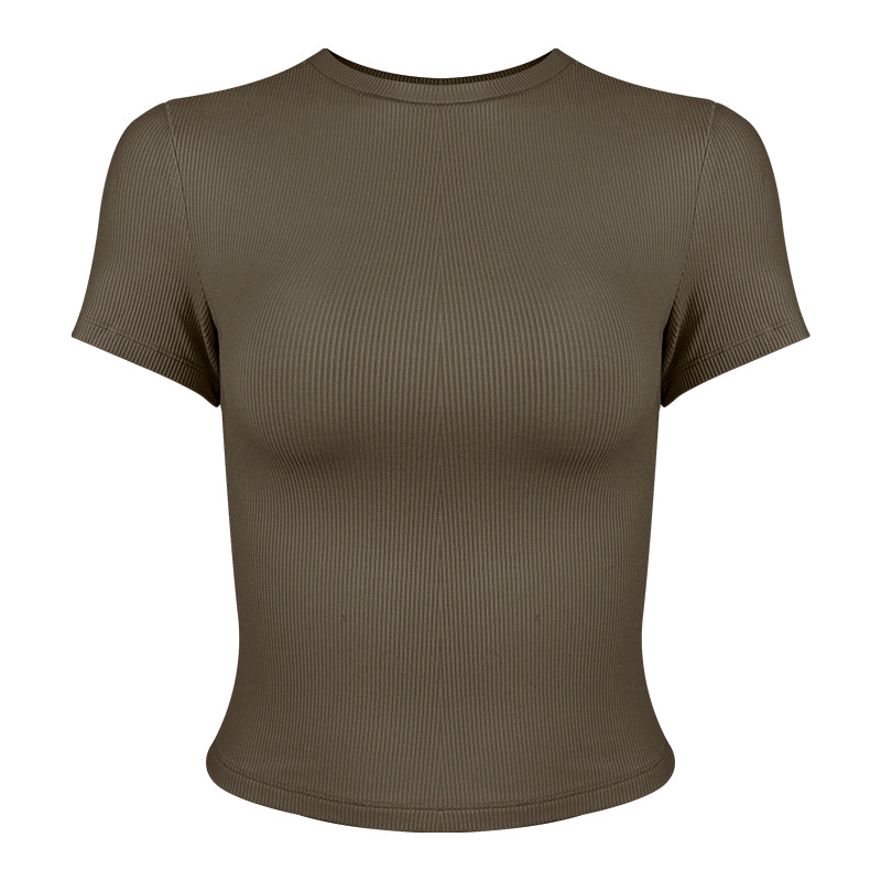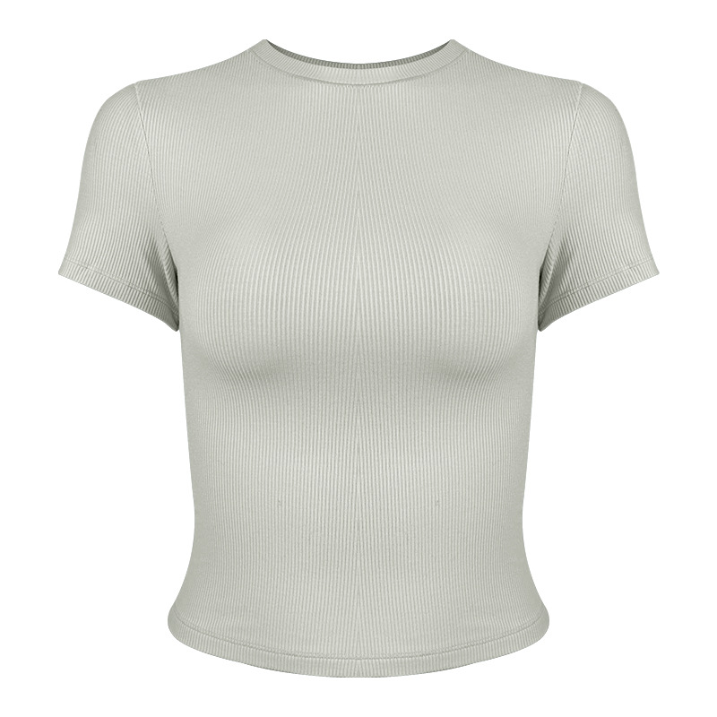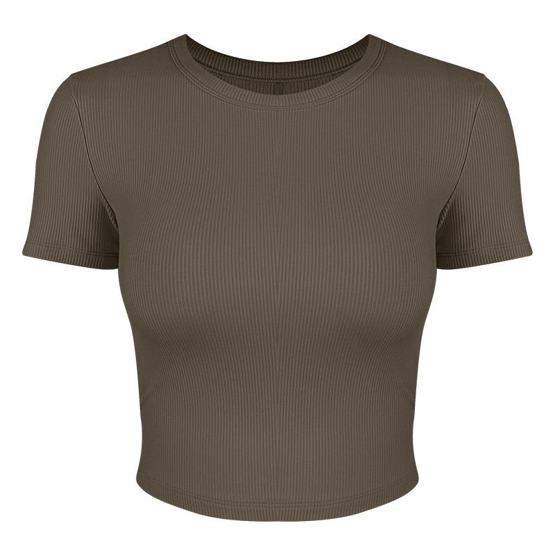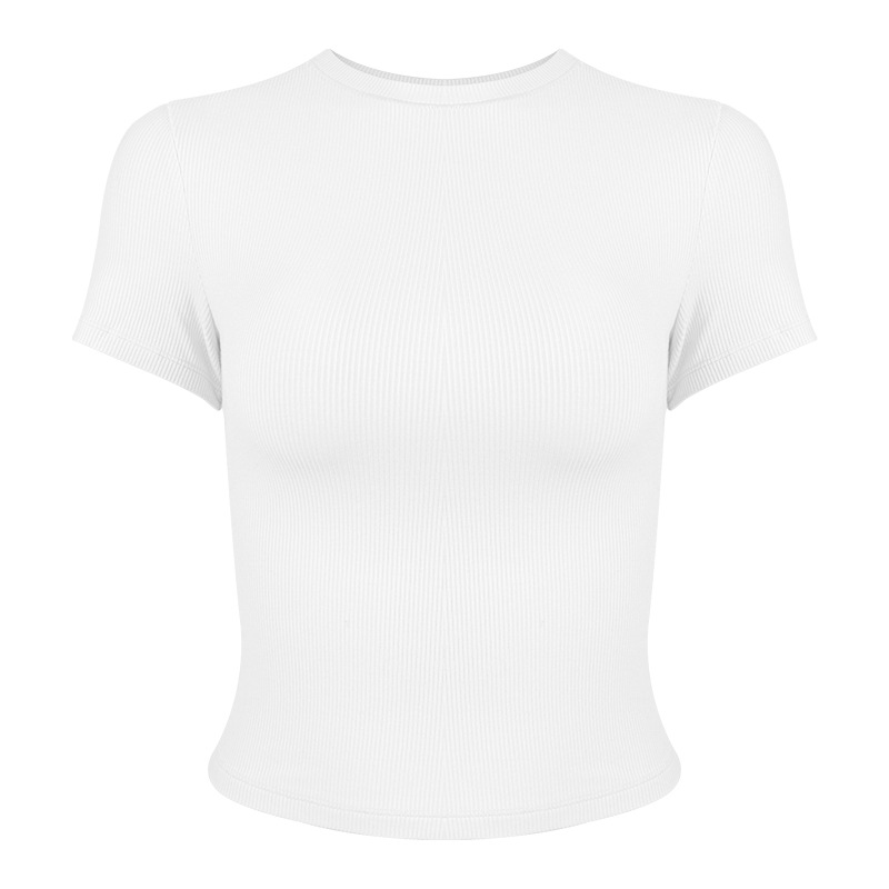 봄 여름 신상 여성용 요가복, 골지 스포츠 티셔츠, 섹시 슬림핏 라운드넥, 유럽풍 단색 상의, 피트니스복스토어 가기