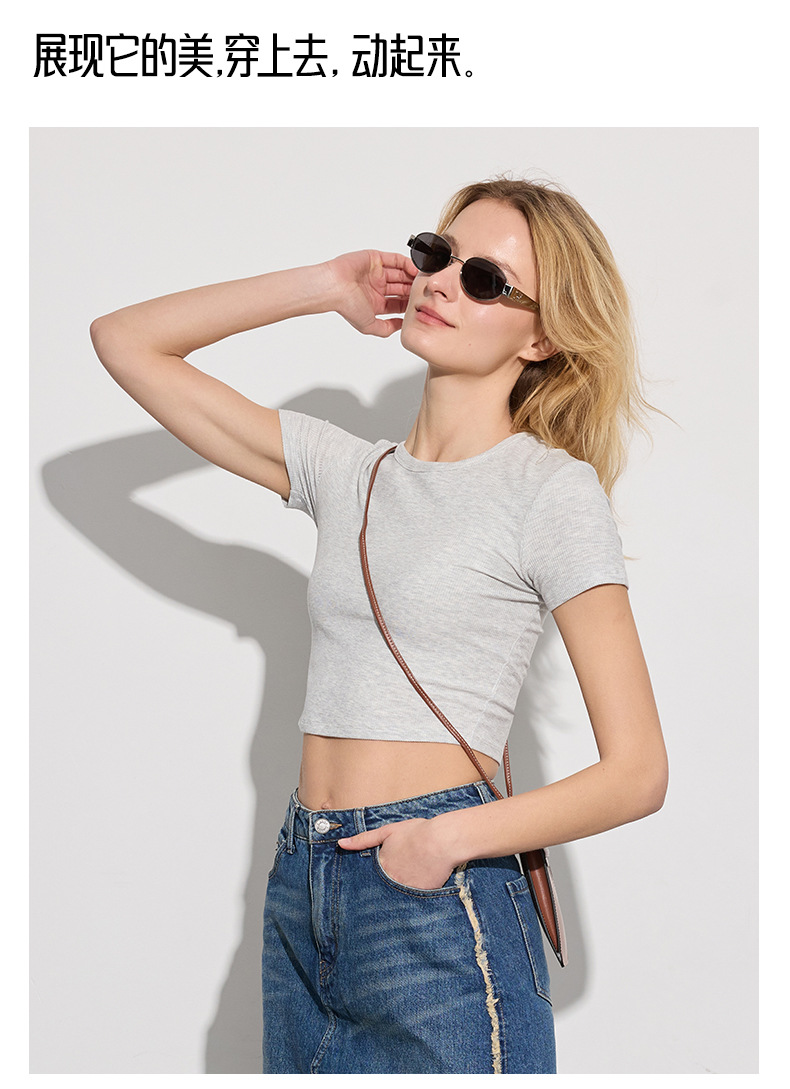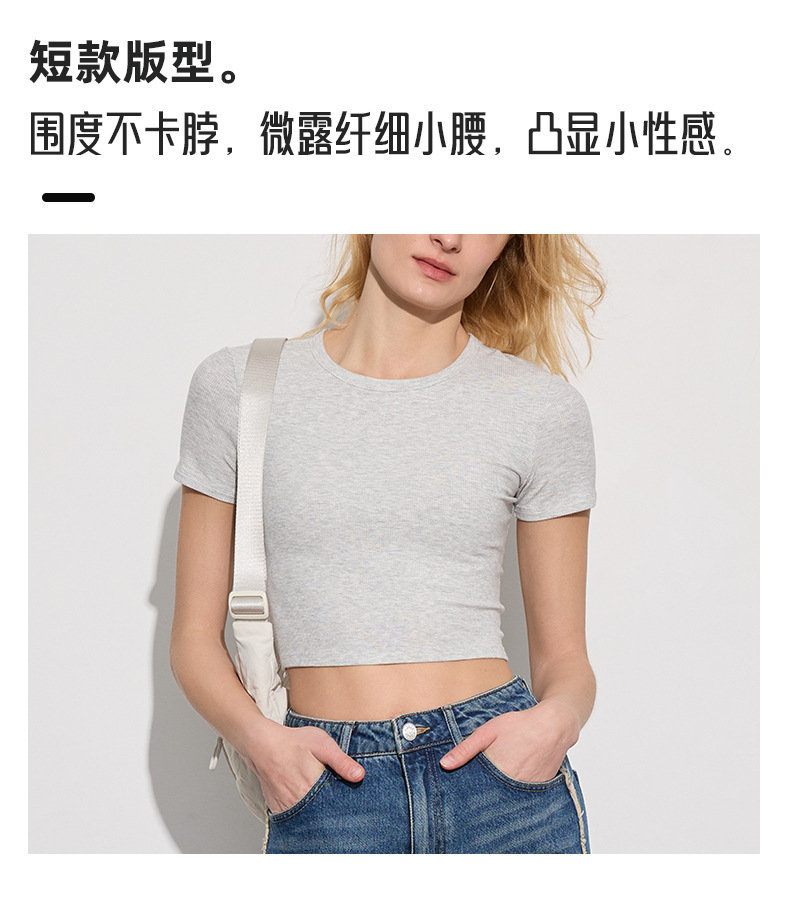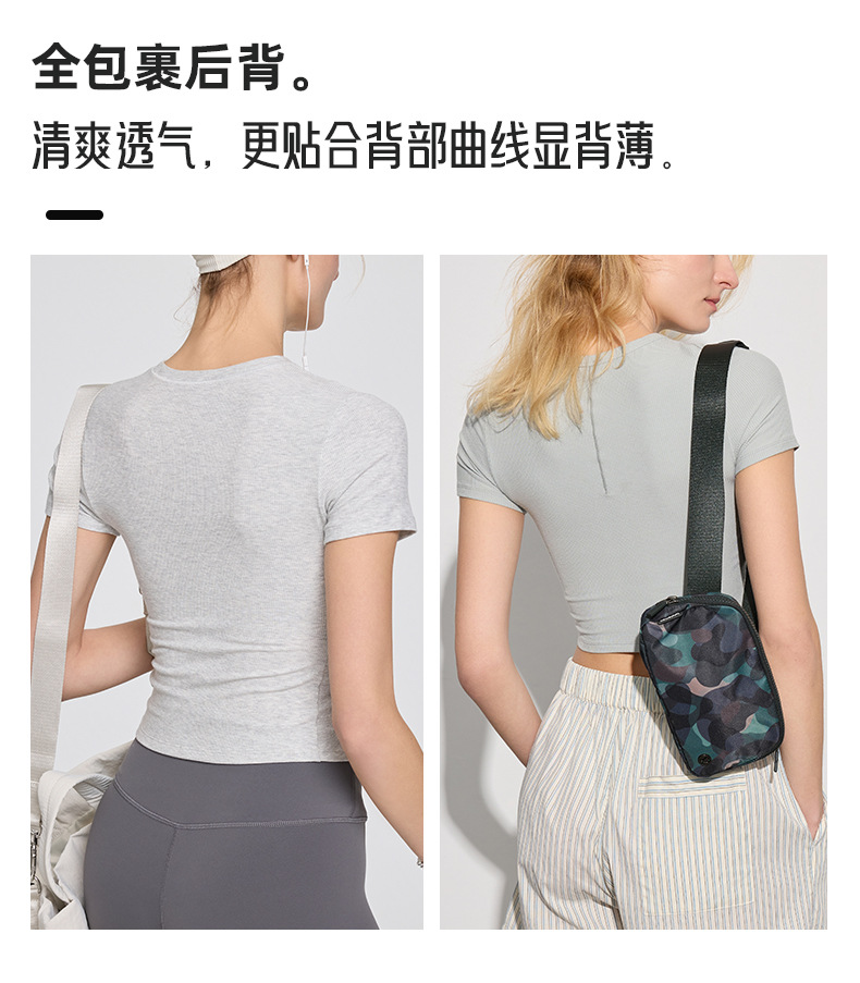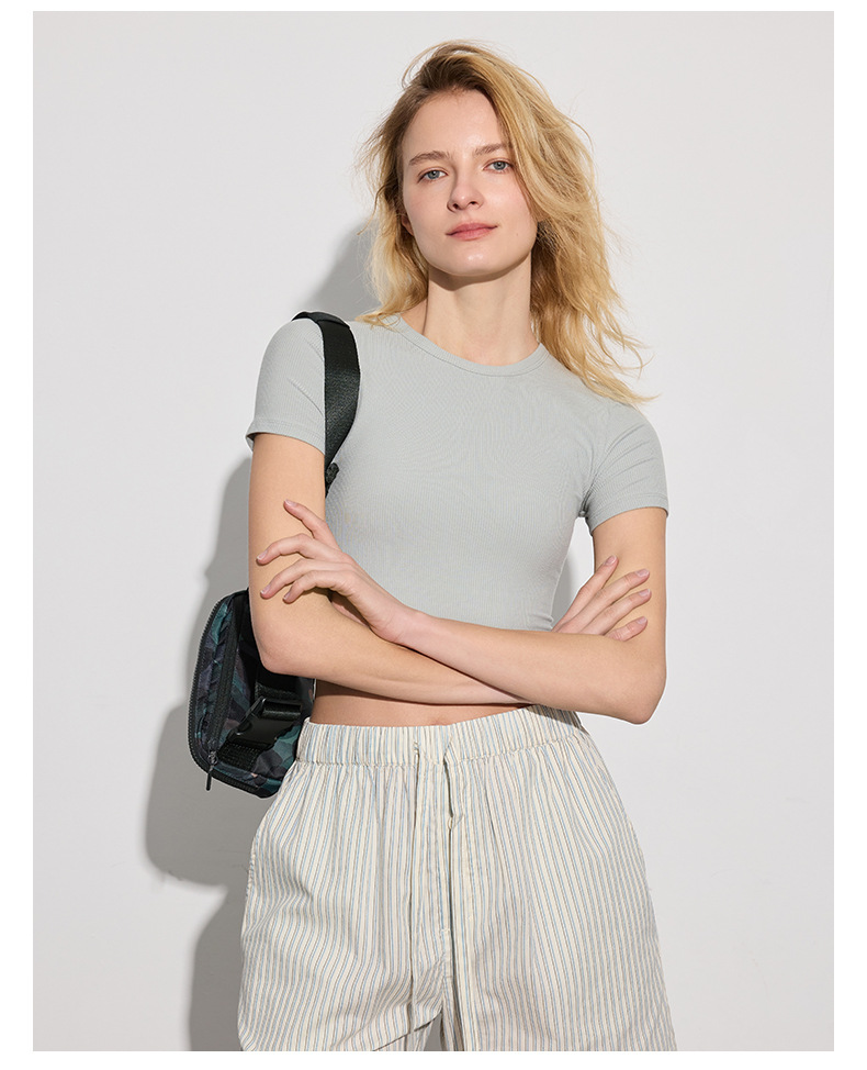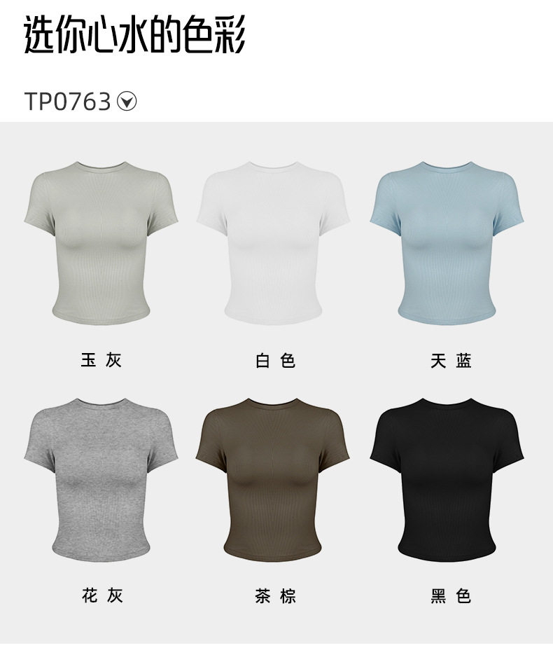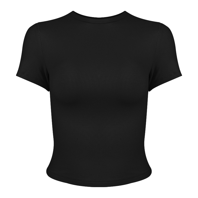 봄 여름 신상 여성용 요가복, 골지 스포츠 티셔츠, 섹시 슬림핏 라운드넥, 유럽풍 단색 상의, 피트니스복스토어 가기