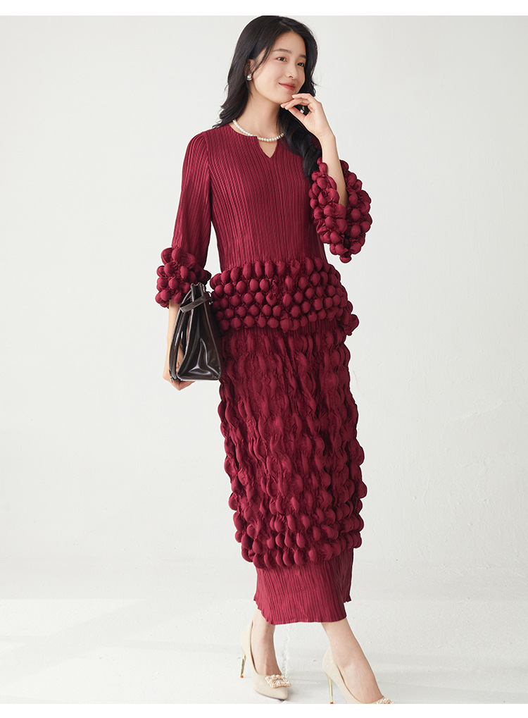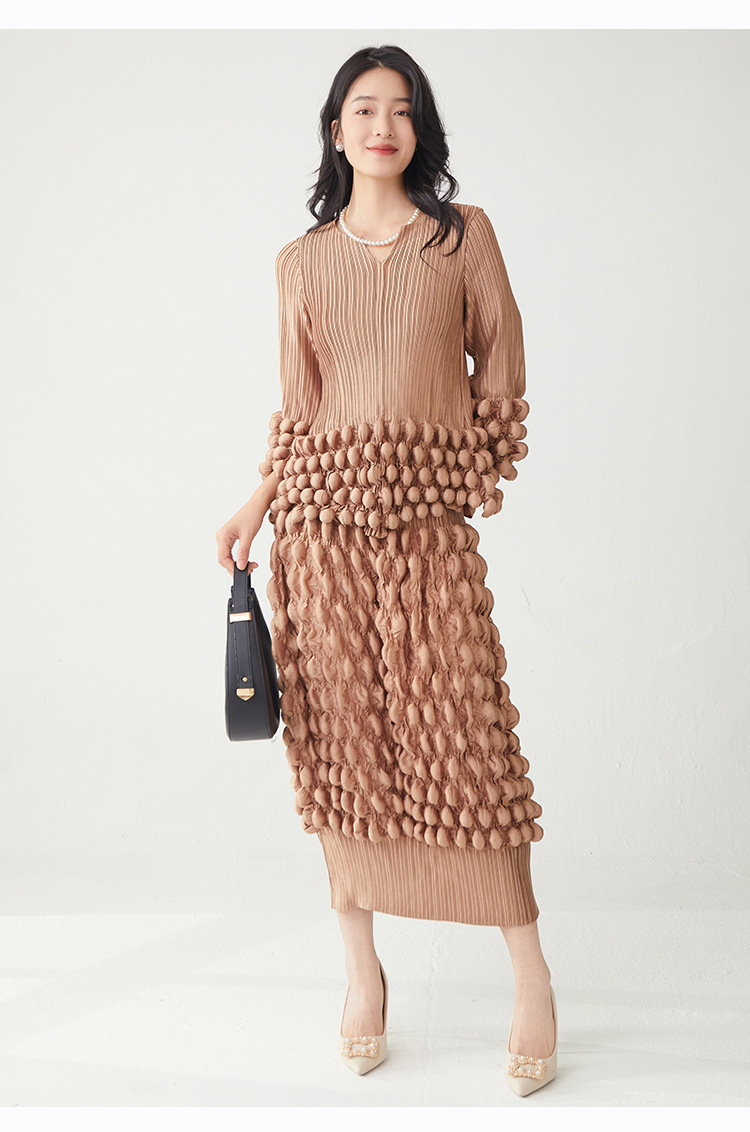 미야케 2025 여성의 봄 세트 디자인 센스 틈새 티셔츠 탑 엉덩이 하프 스커트 유행 투피스 세트