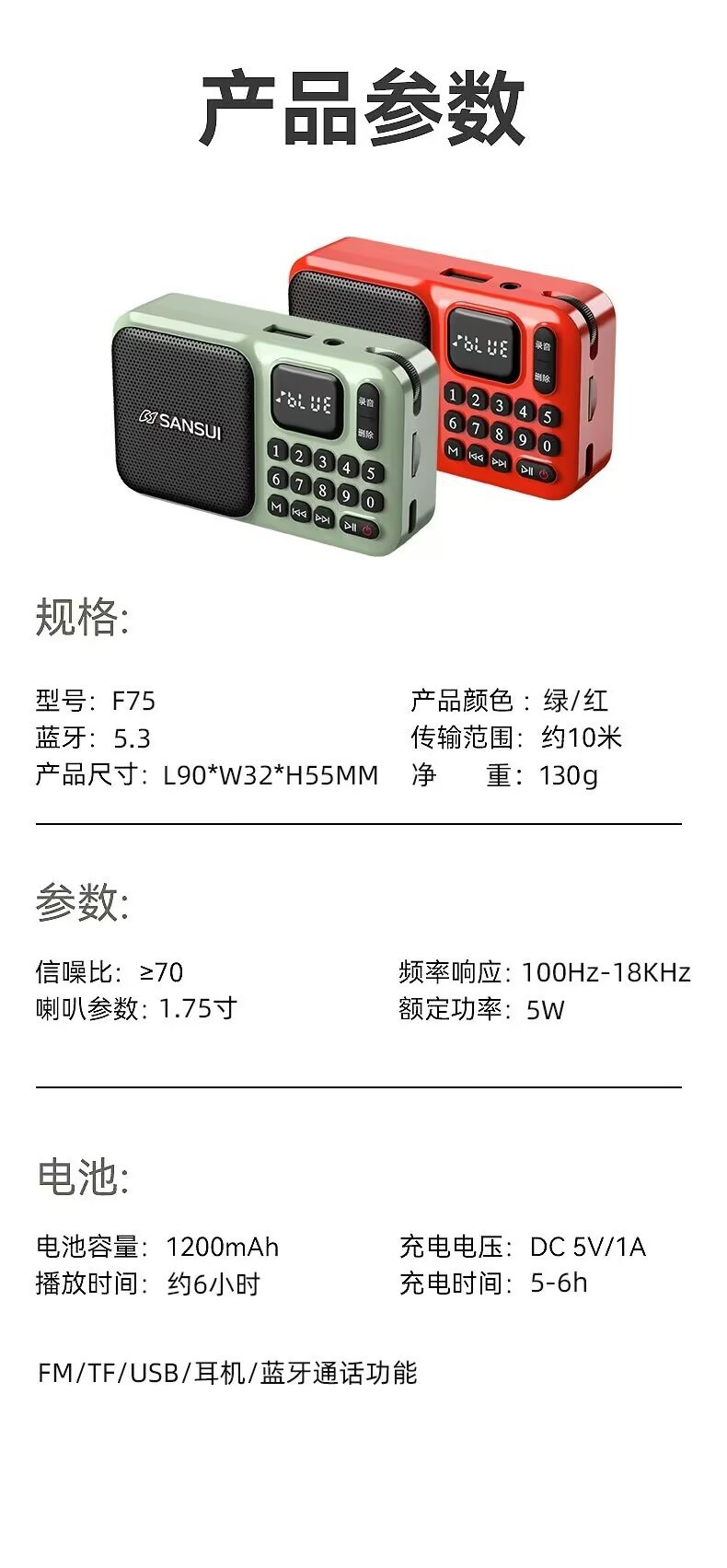노인 라디오 디지털 노래 기계 녹음 스토리 텔링을위한 새로운 풍경 F75 작은 휴대용 카드 플레이어