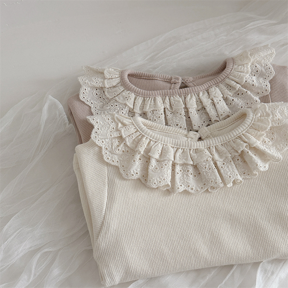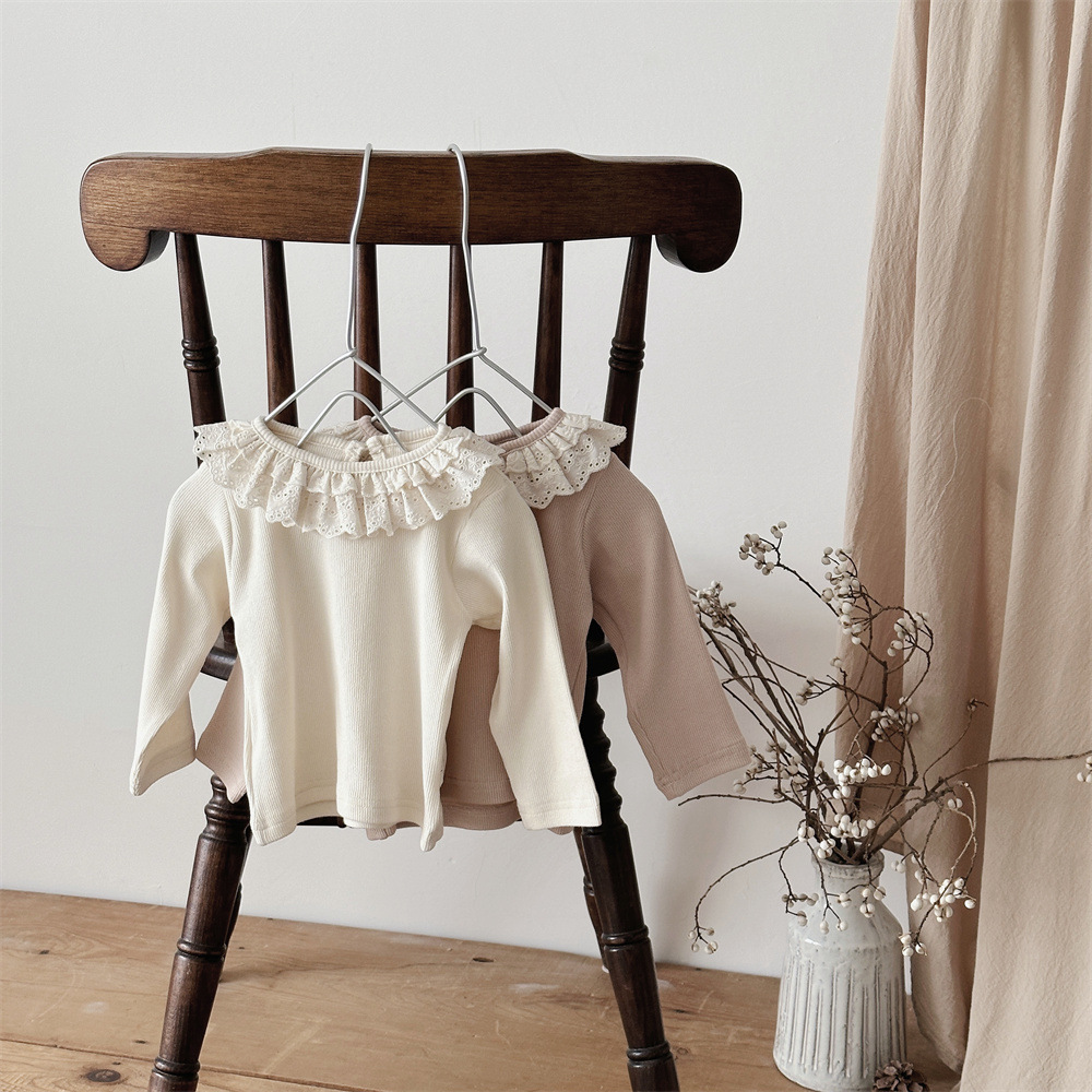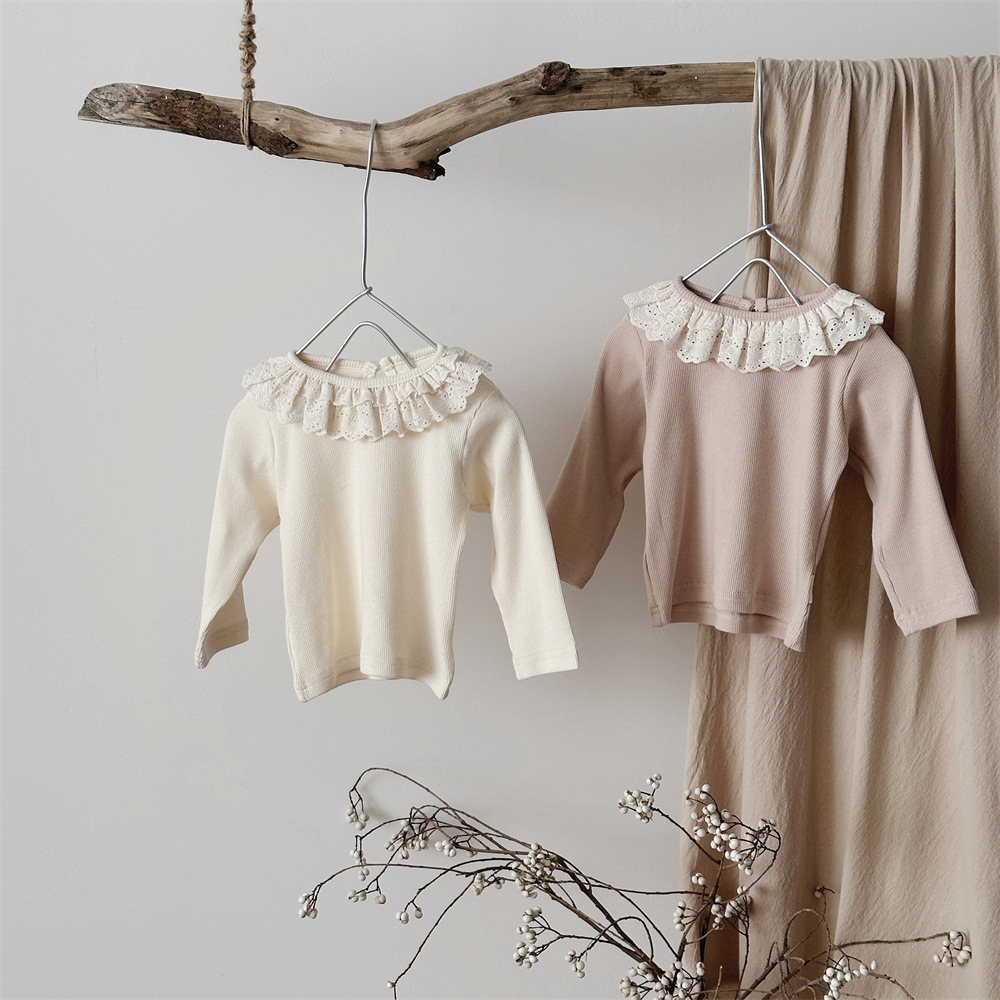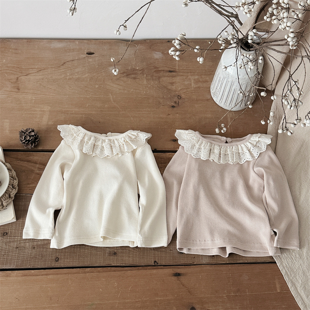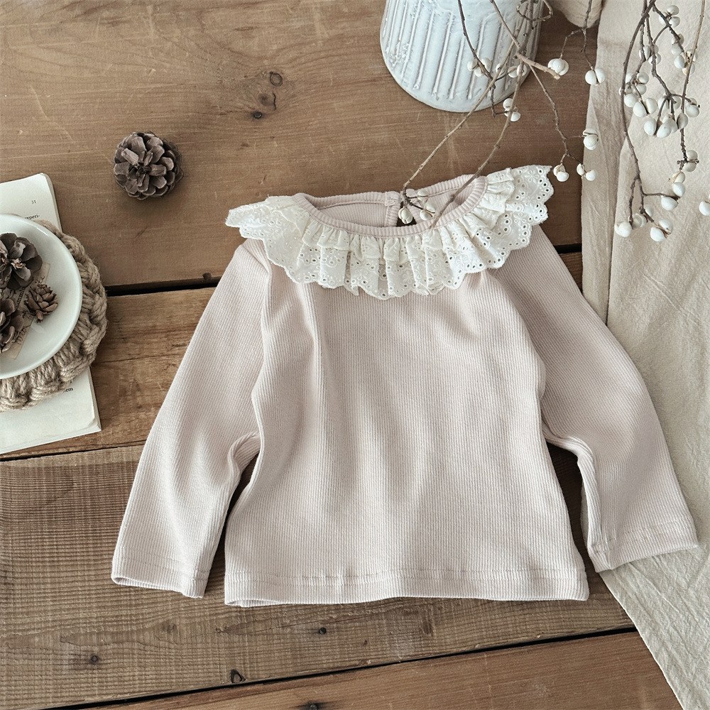 INS 봄과 가을 아기 더블 레이스 칼라 긴 소매 얇은 피트 백업 셔츠 아기 소녀 하나의 버튼 탑
