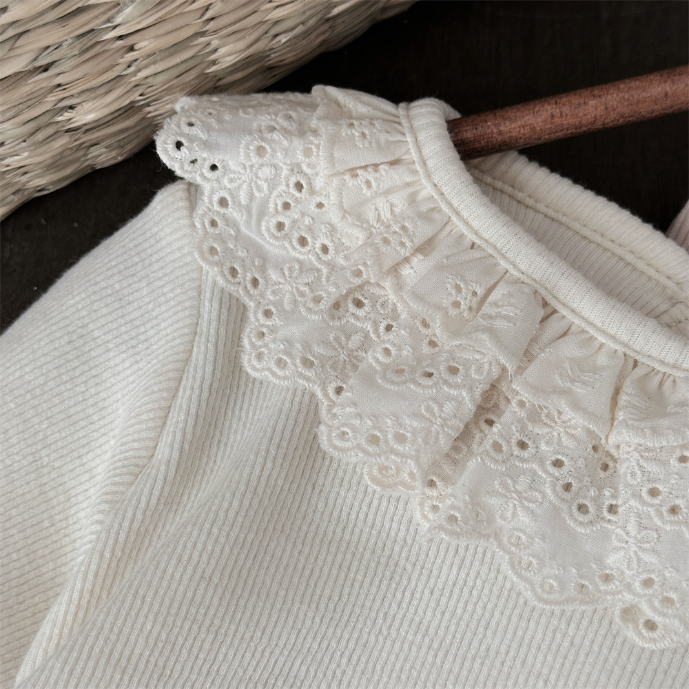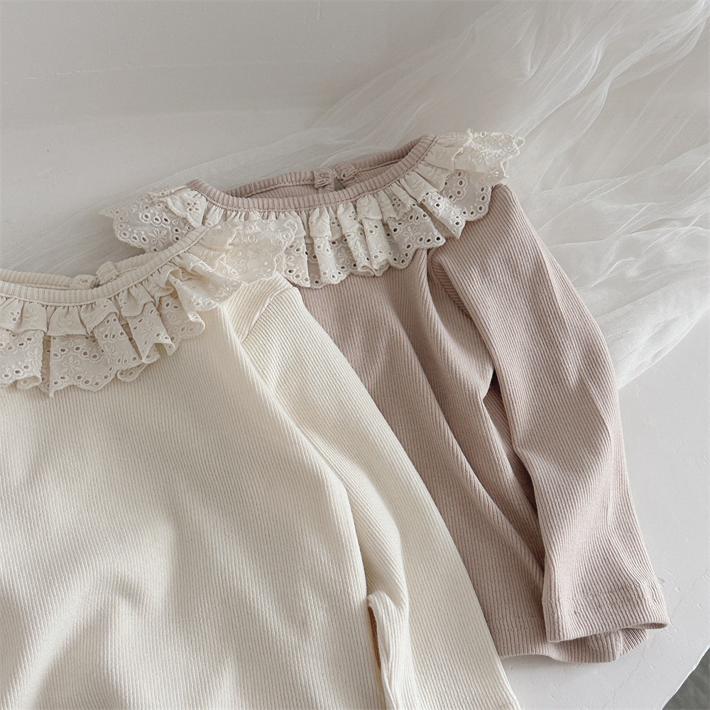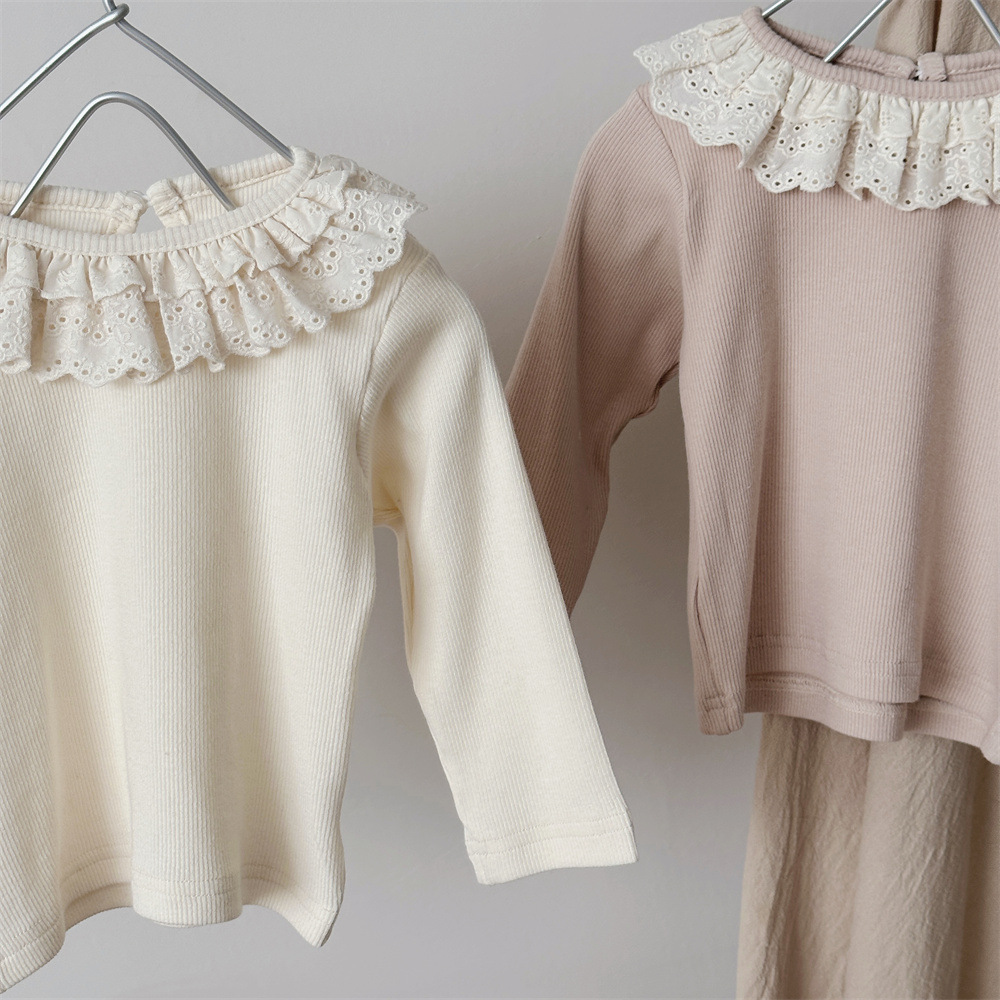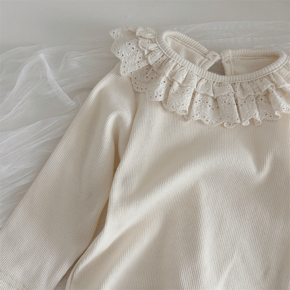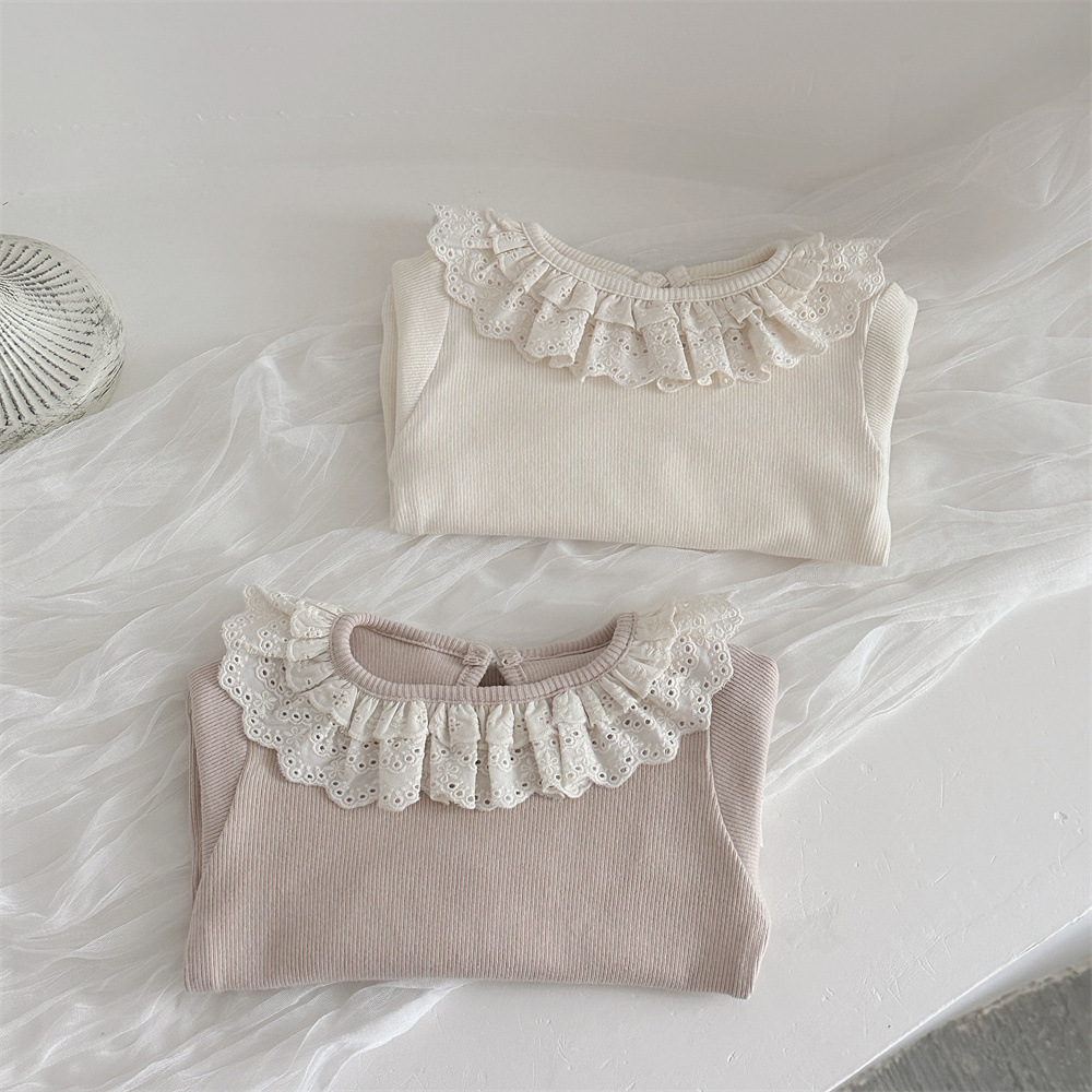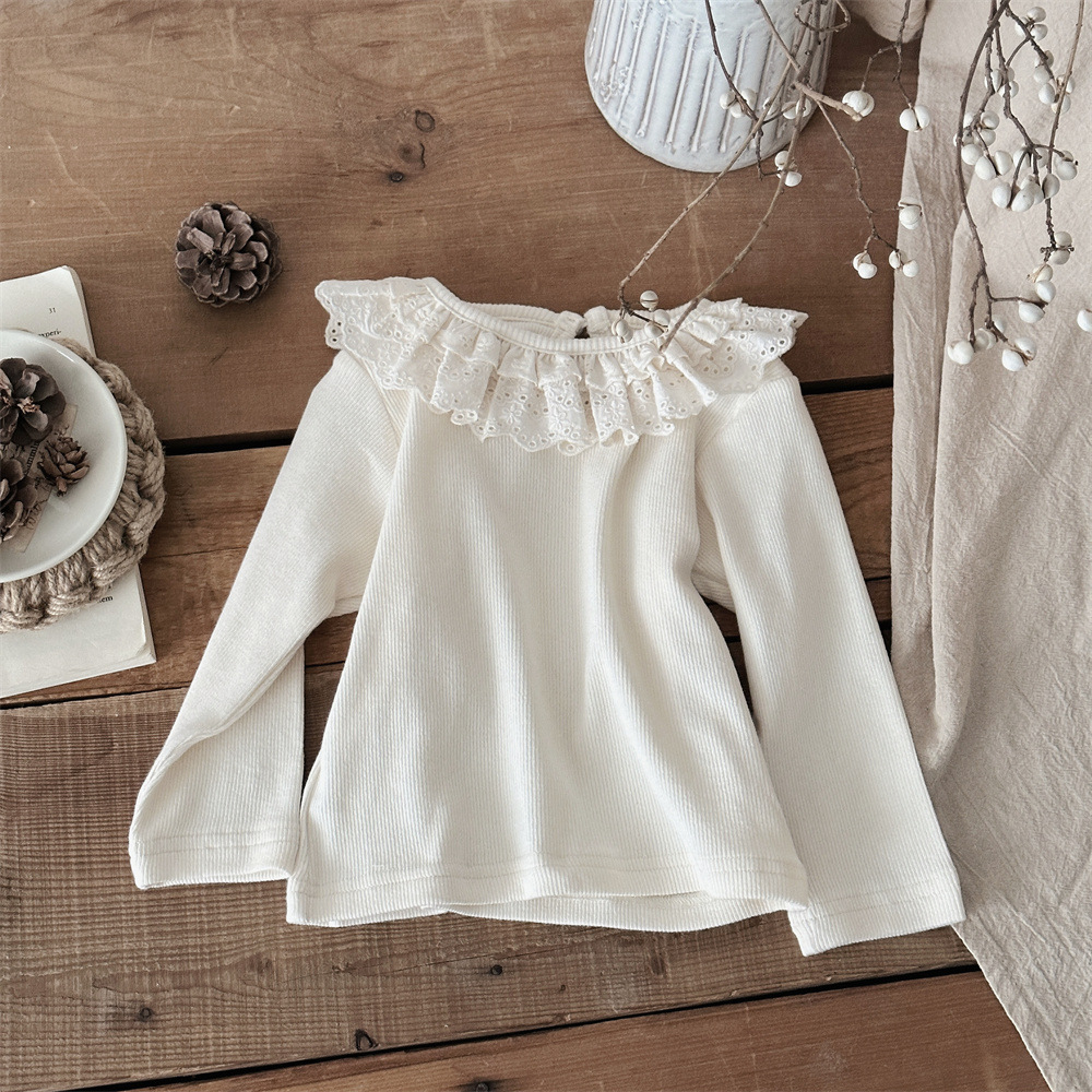 INS 봄과 가을 아기 더블 레이스 칼라 긴 소매 얇은 피트 백업 셔츠 아기 소녀 하나의 버튼 탑