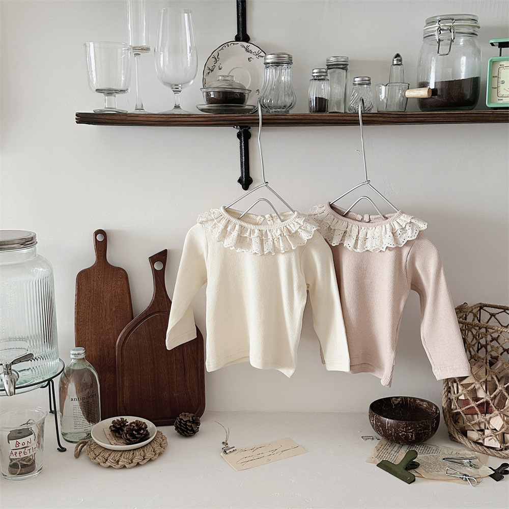 INS 봄과 가을 아기 더블 레이스 칼라 긴 소매 얇은 피트 백업 셔츠 아기 소녀 하나의 버튼 탑스토어 가기