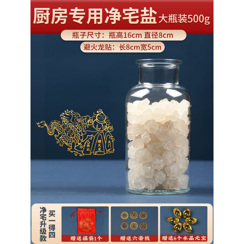 • [침실 순하우스 소금] - 불을 피하는 용 금속 스티커 + 복주머니 + 여섯 황제 동전 + 주괴