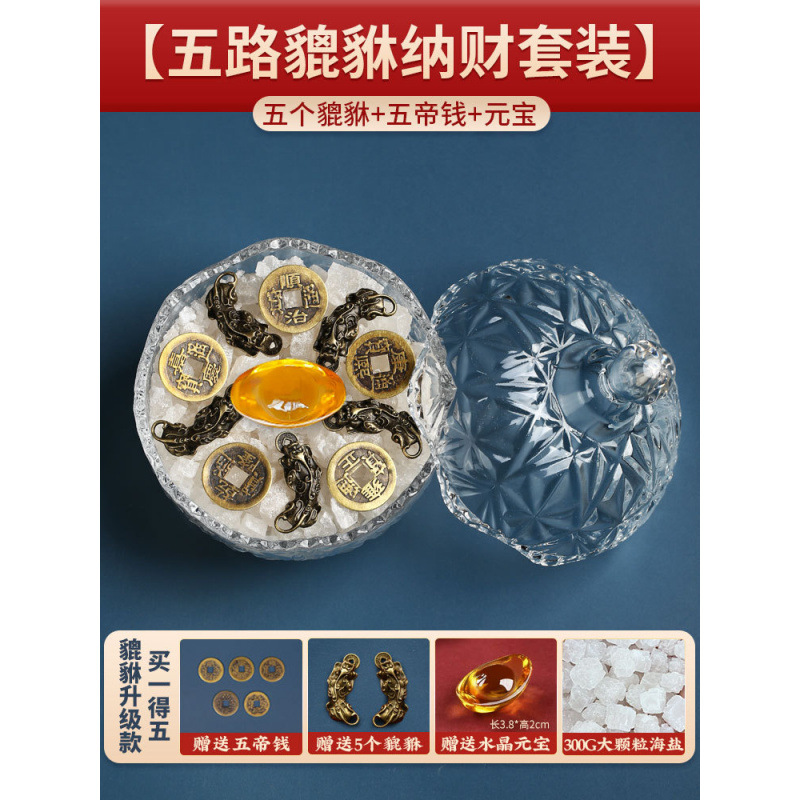 • [상점 순하우스 소금] - Pixiu 금속 스티커 + 복주머니 + 여섯 황제 동전 + 주괴