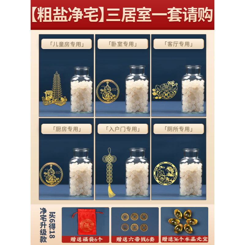 • [거실 순하우스 소금] - 주괴 금속 스티커 + 복주머니 + 여섯 황제 동전 + 주괴