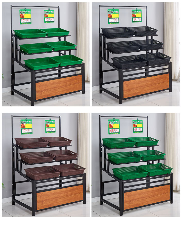슈퍼마켓 과일 및 야채 선반 디스플레이 랙 저장 랙 다층 야채 랙 상업 편의점 과일 및 야채 랙 나무 철 랙