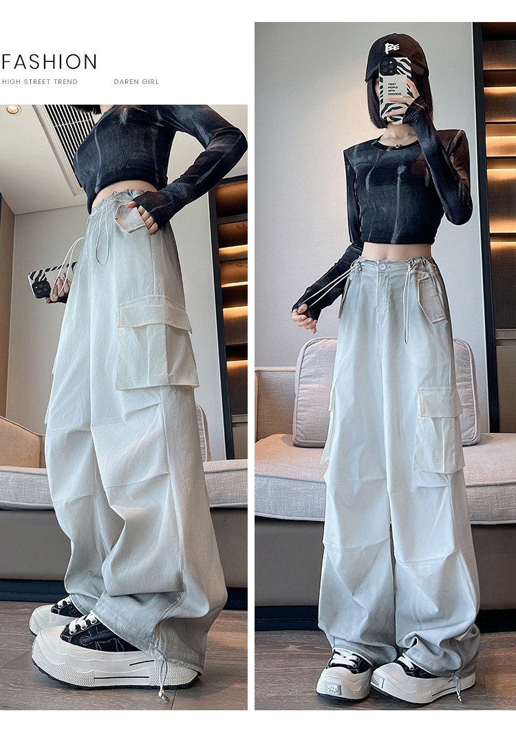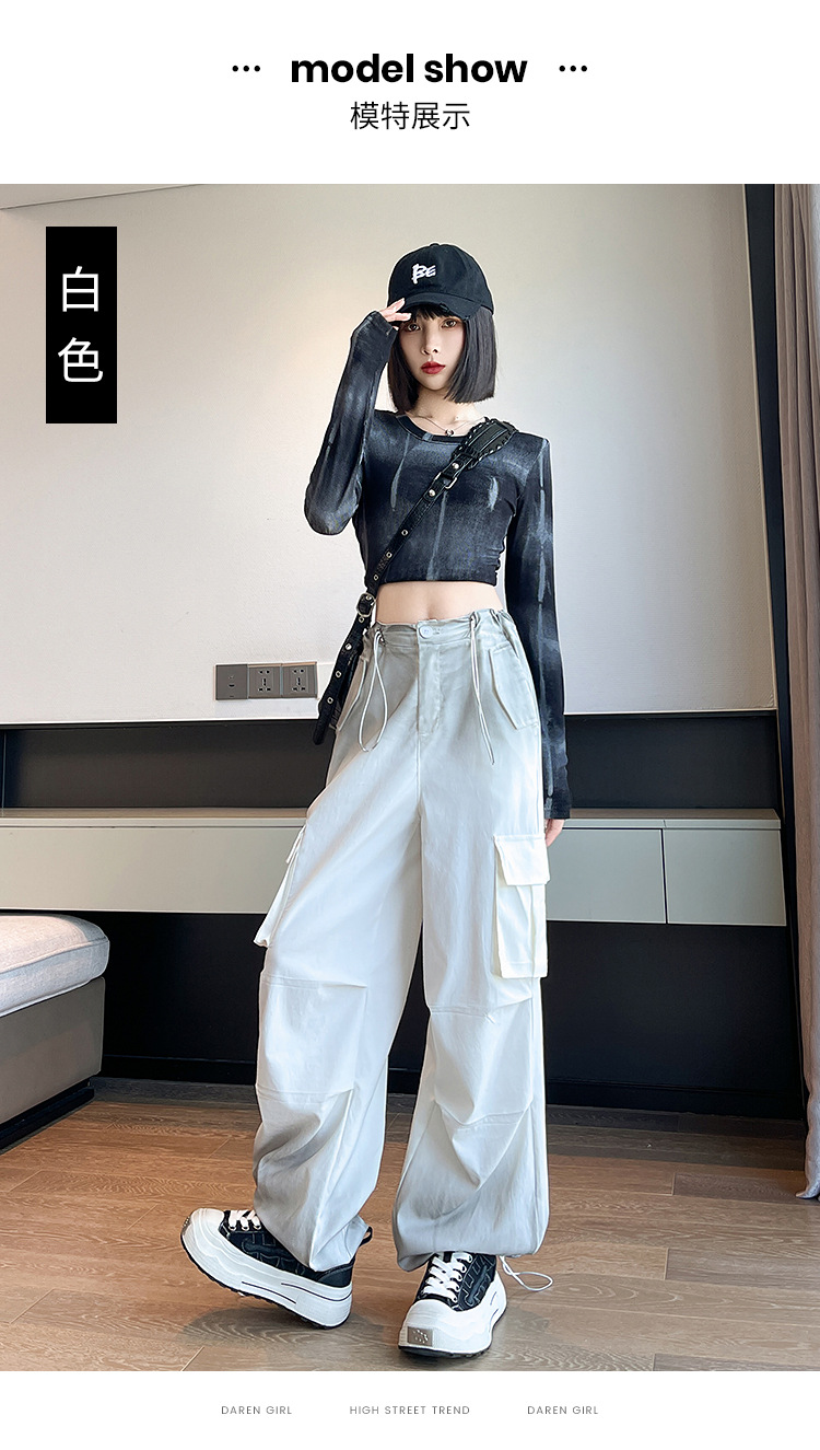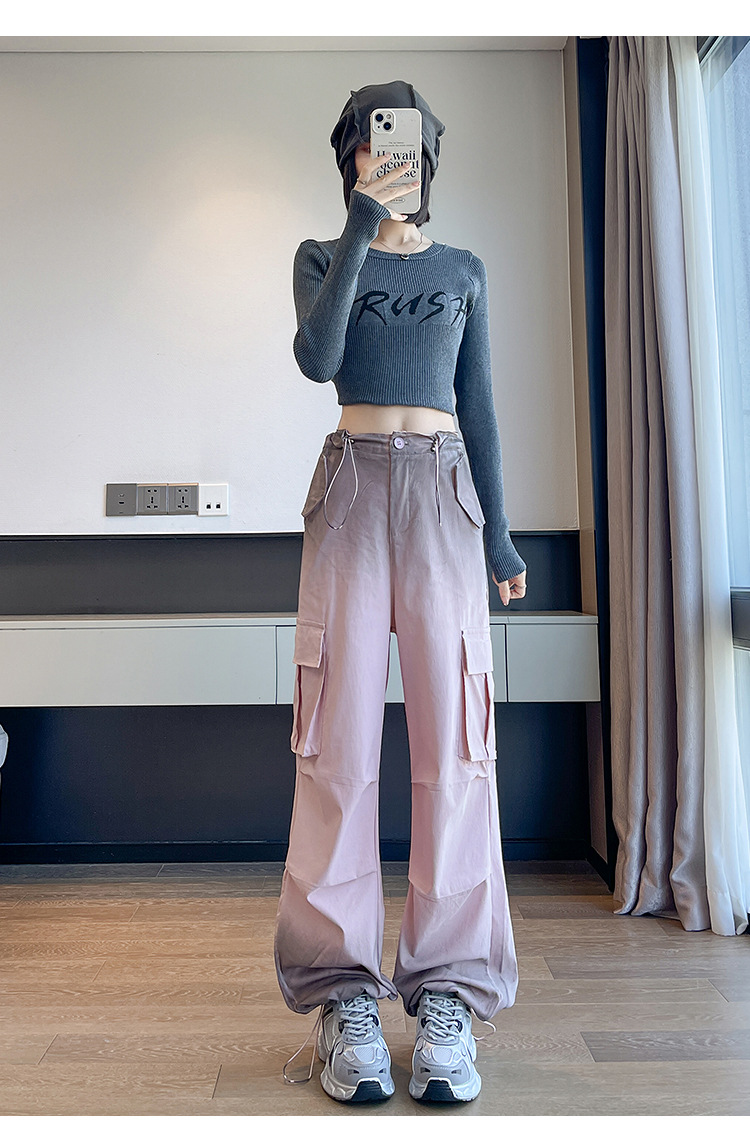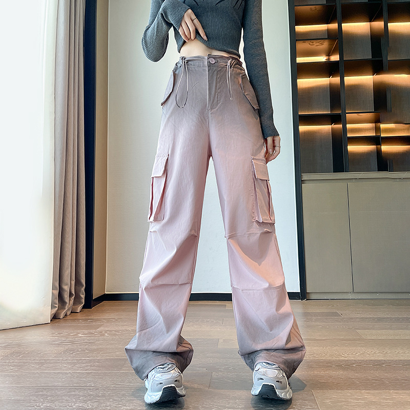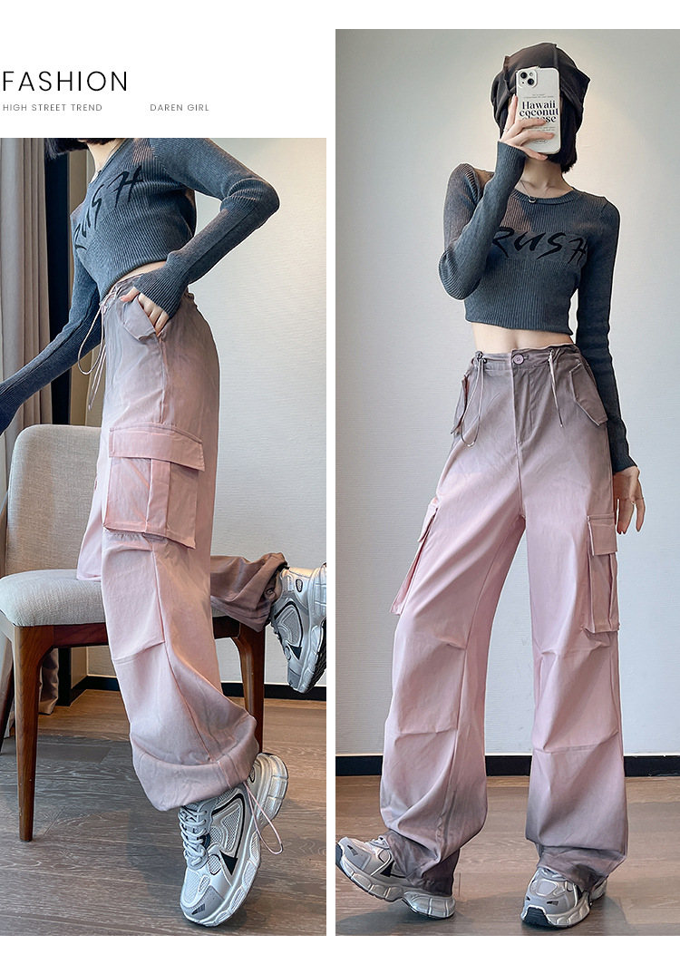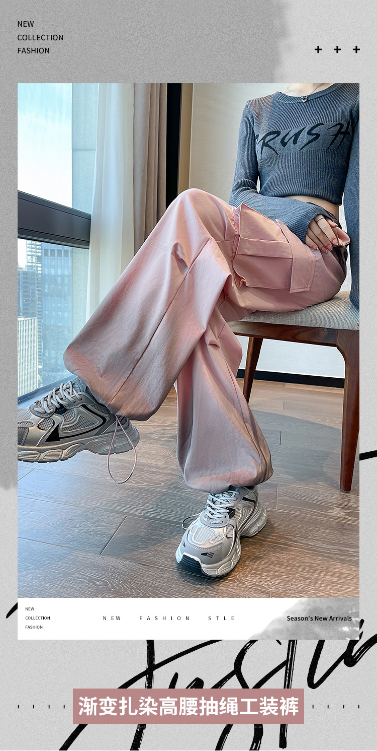 미국식 그라디언트 오버홀 여성의 봄과 가을 높은 허리 슬리밍 느슨한 캐주얼 와이드 레그 러스크 바지 넥타이 염색 바지스토어 가기