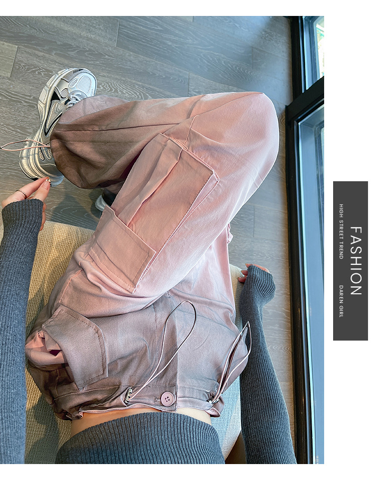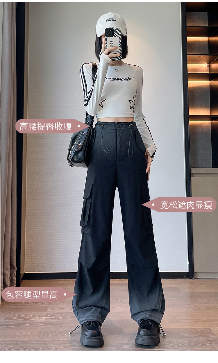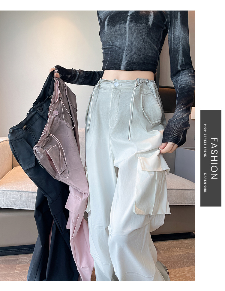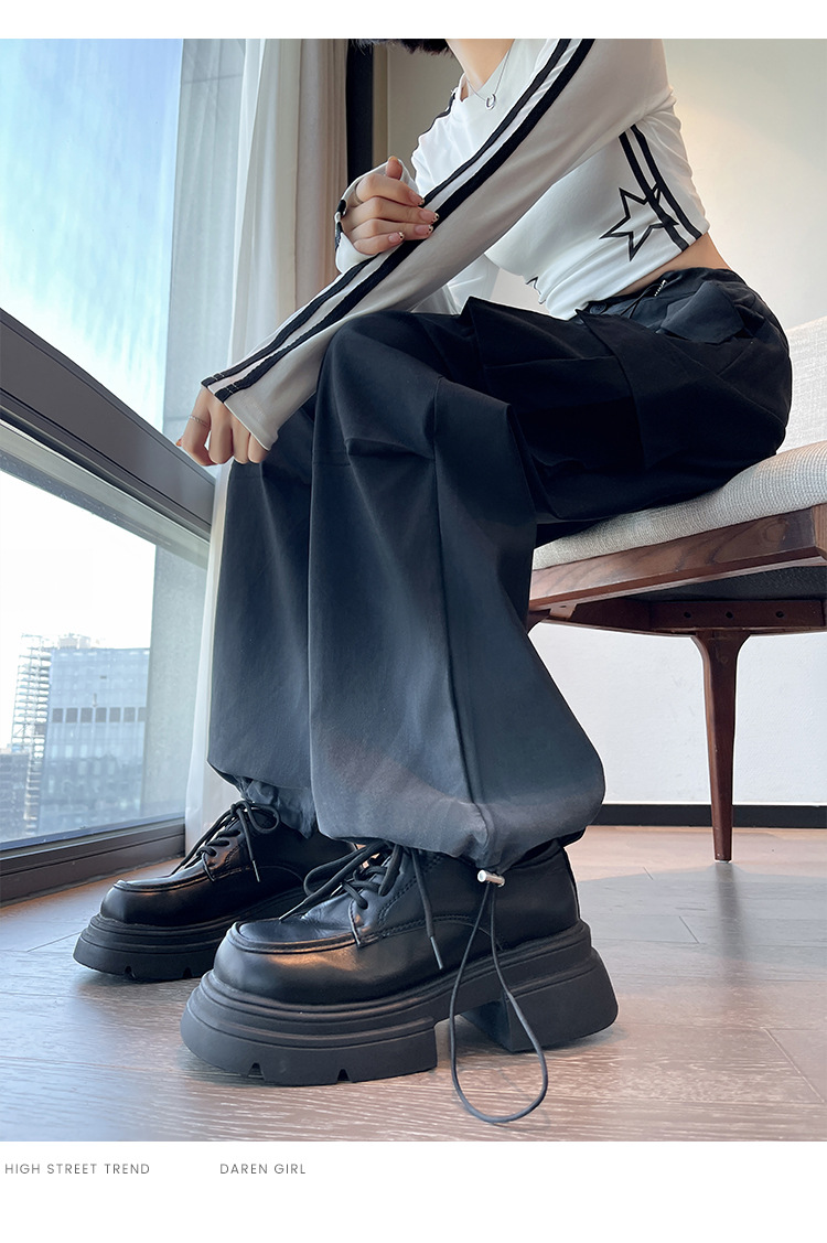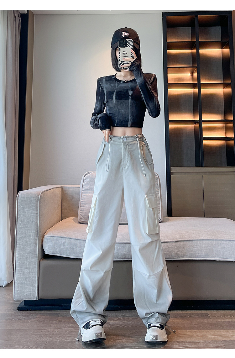 미국식 그라디언트 오버홀 여성의 봄과 가을 높은 허리 슬리밍 느슨한 캐주얼 와이드 레그 러스크 바지 넥타이 염색 바지스토어 가기