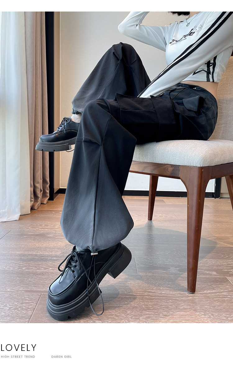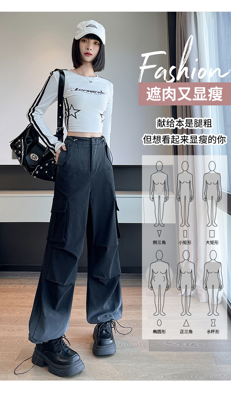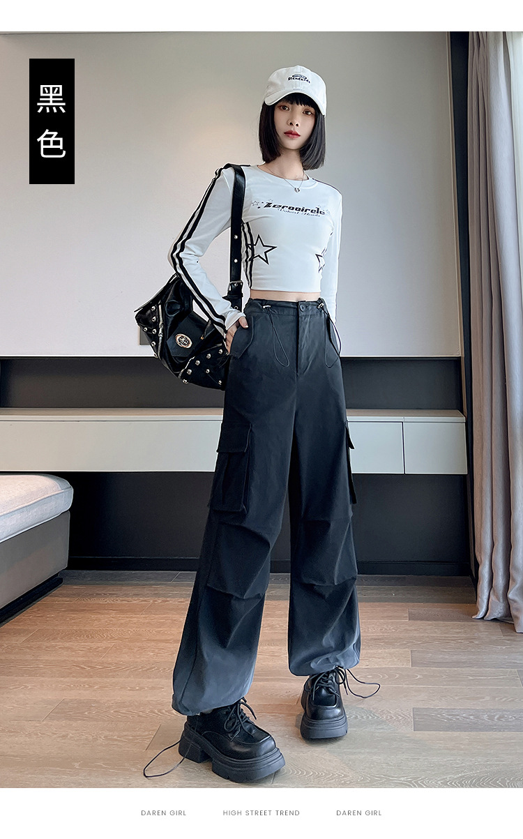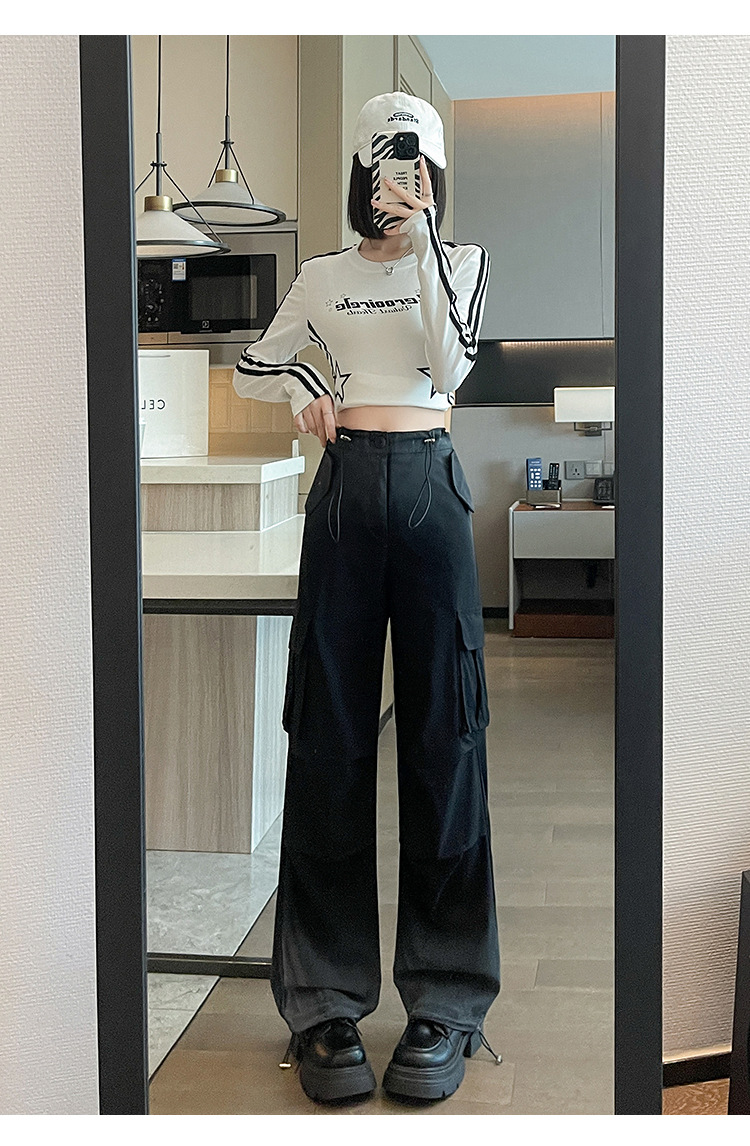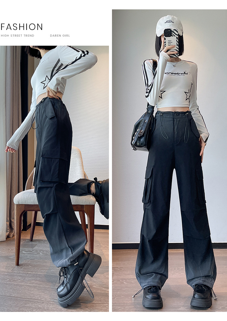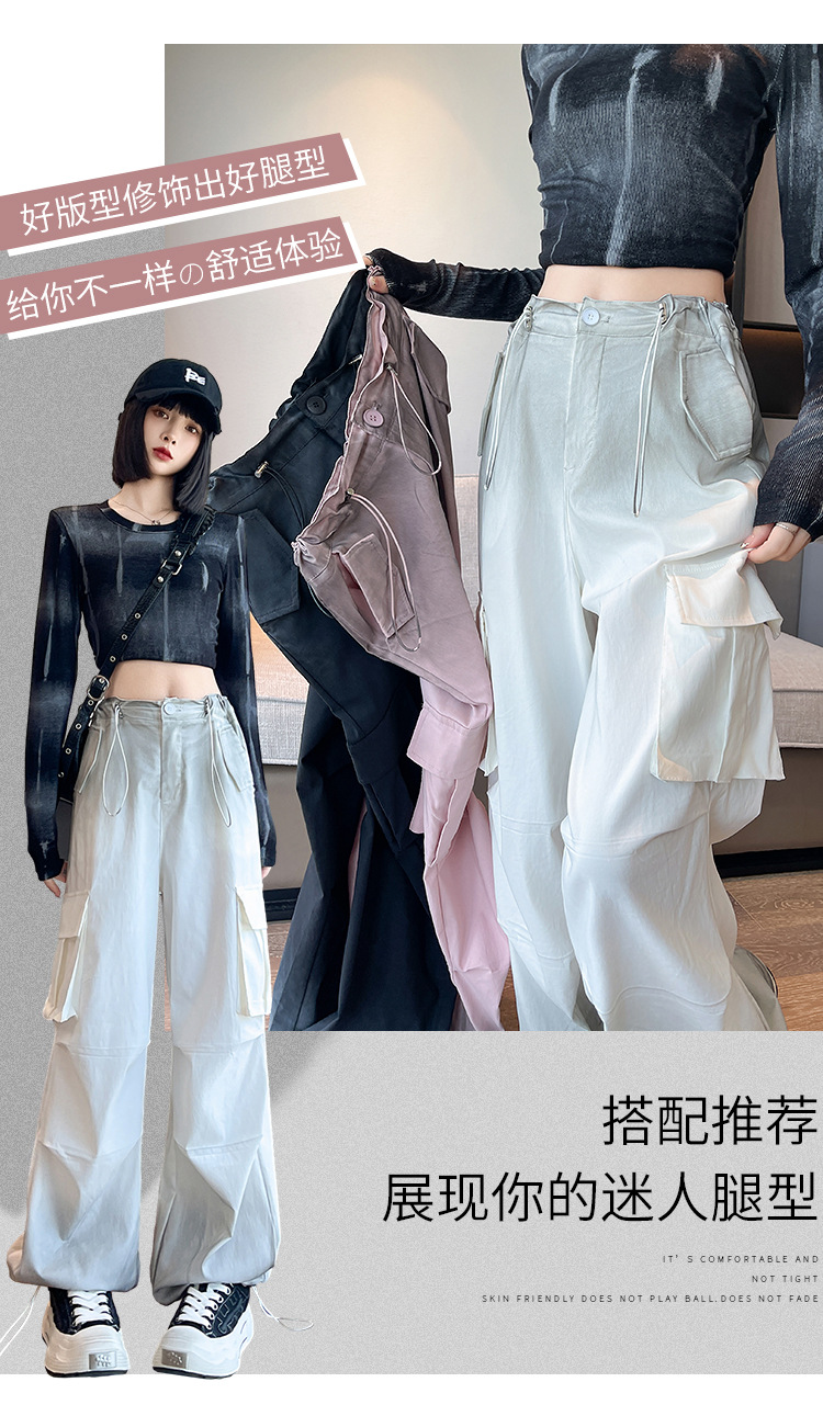 미국식 그라디언트 오버홀 여성의 봄과 가을 높은 허리 슬리밍 느슨한 캐주얼 와이드 레그 러스크 바지 넥타이 염색 바지스토어 가기
