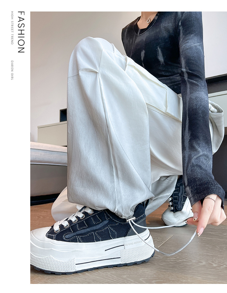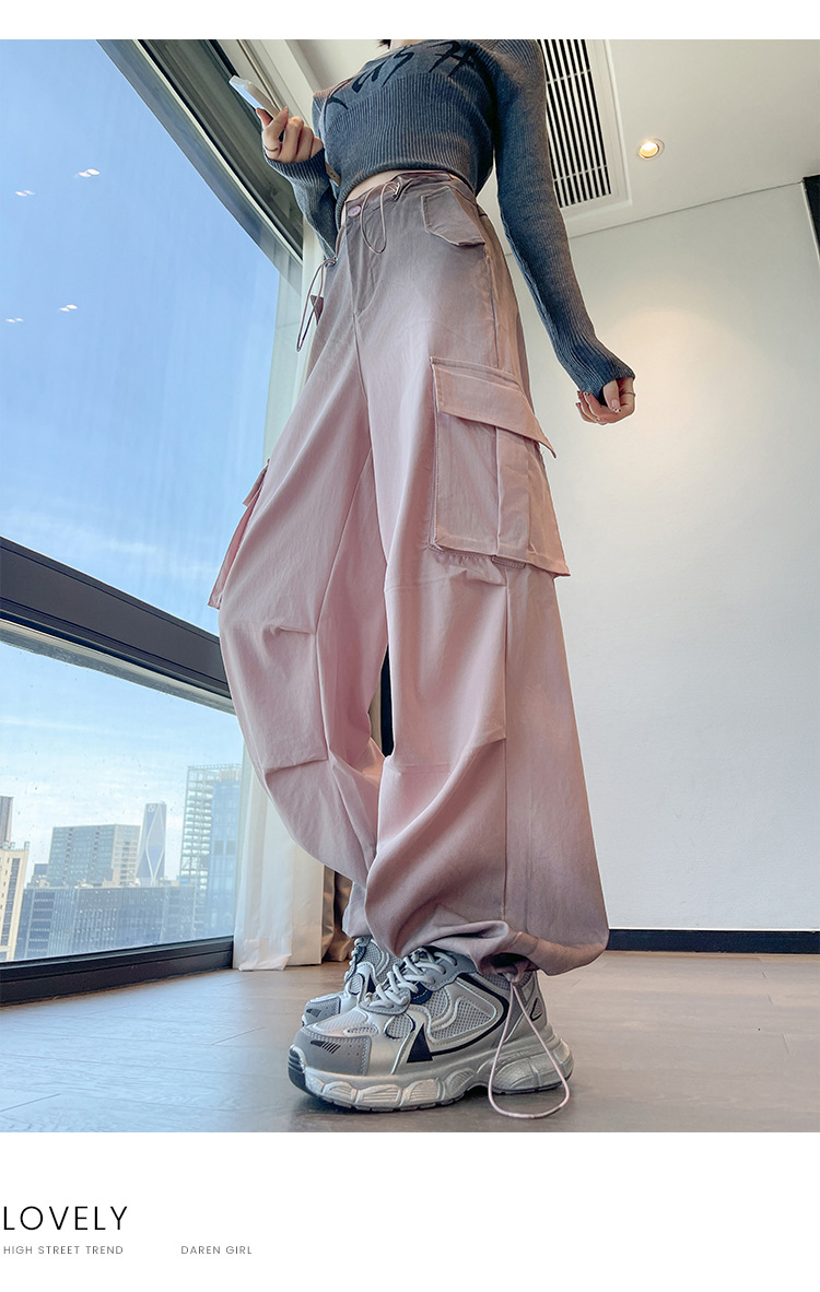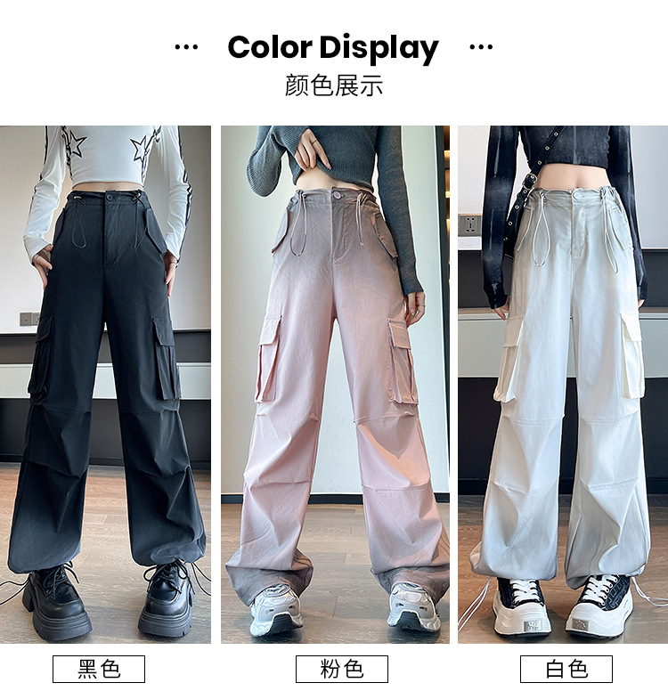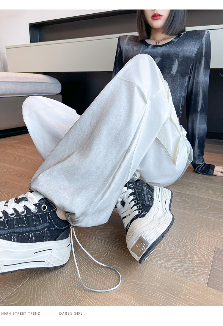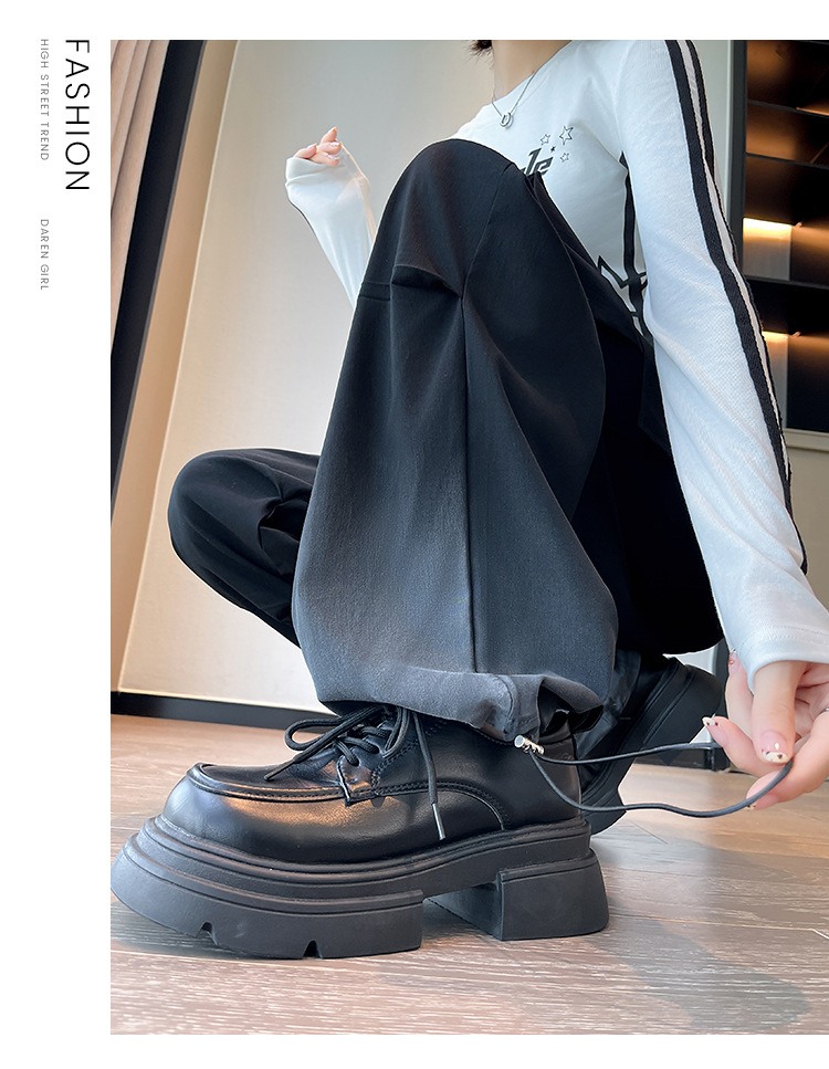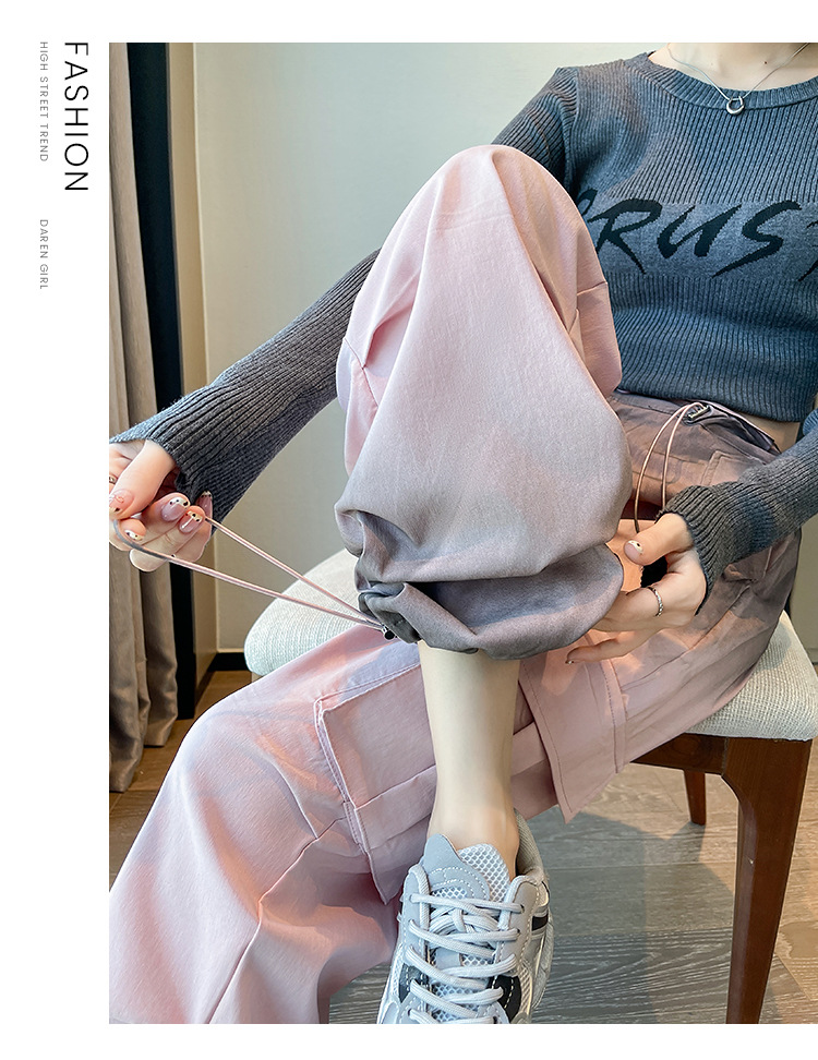 미국식 그라디언트 오버홀 여성의 봄과 가을 높은 허리 슬리밍 느슨한 캐주얼 와이드 레그 러스크 바지 넥타이 염색 바지