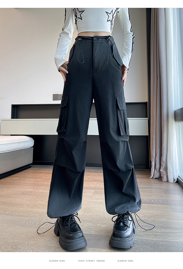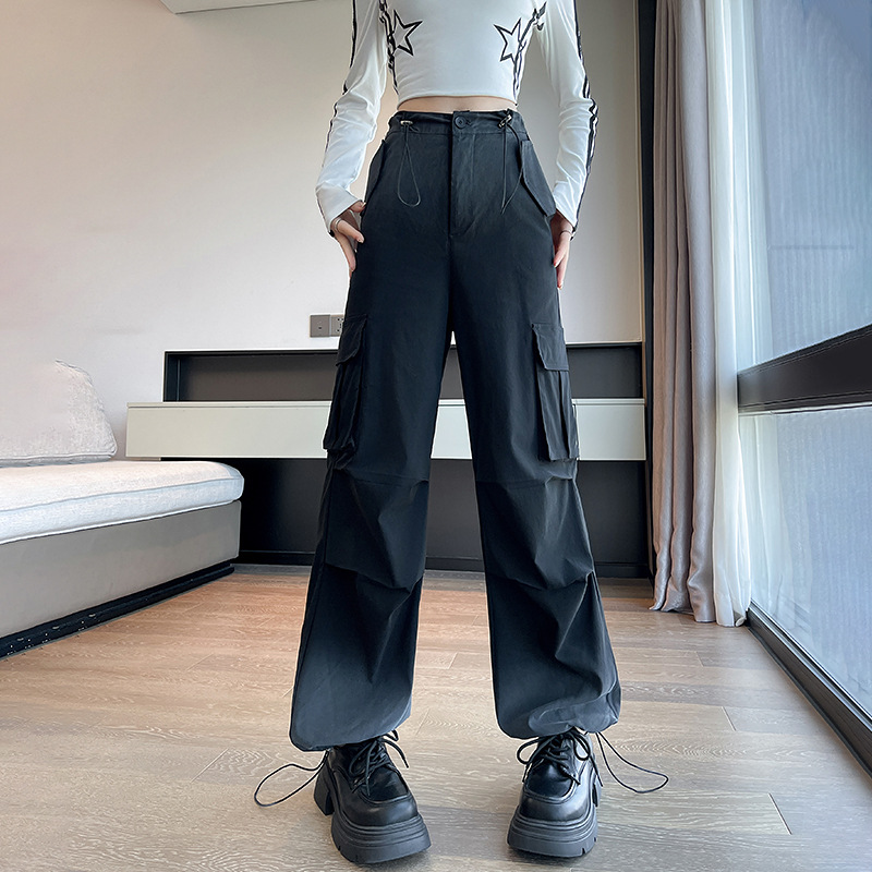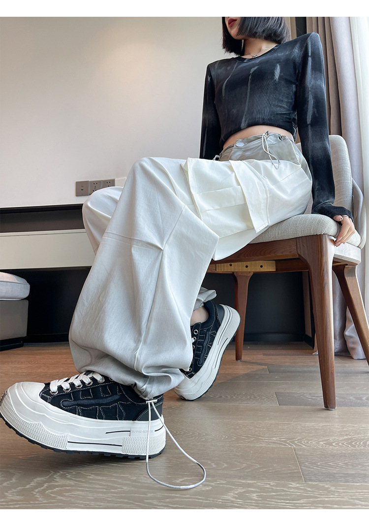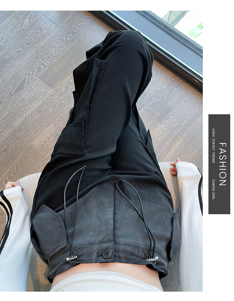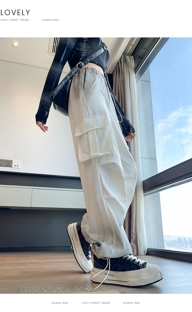 미국식 그라디언트 오버홀 여성의 봄과 가을 높은 허리 슬리밍 느슨한 캐주얼 와이드 레그 러스크 바지 넥타이 염색 바지