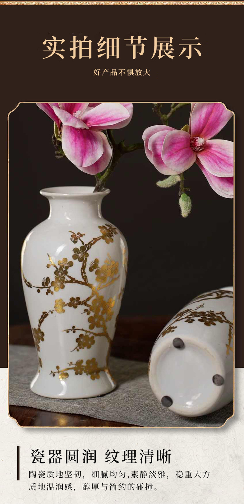 새로운 중국 꽃병 노르딕 골드 도금 장식 장식품 현대 간단한 창조적 인 복도 장식품 작은 꽃병 거실 복도