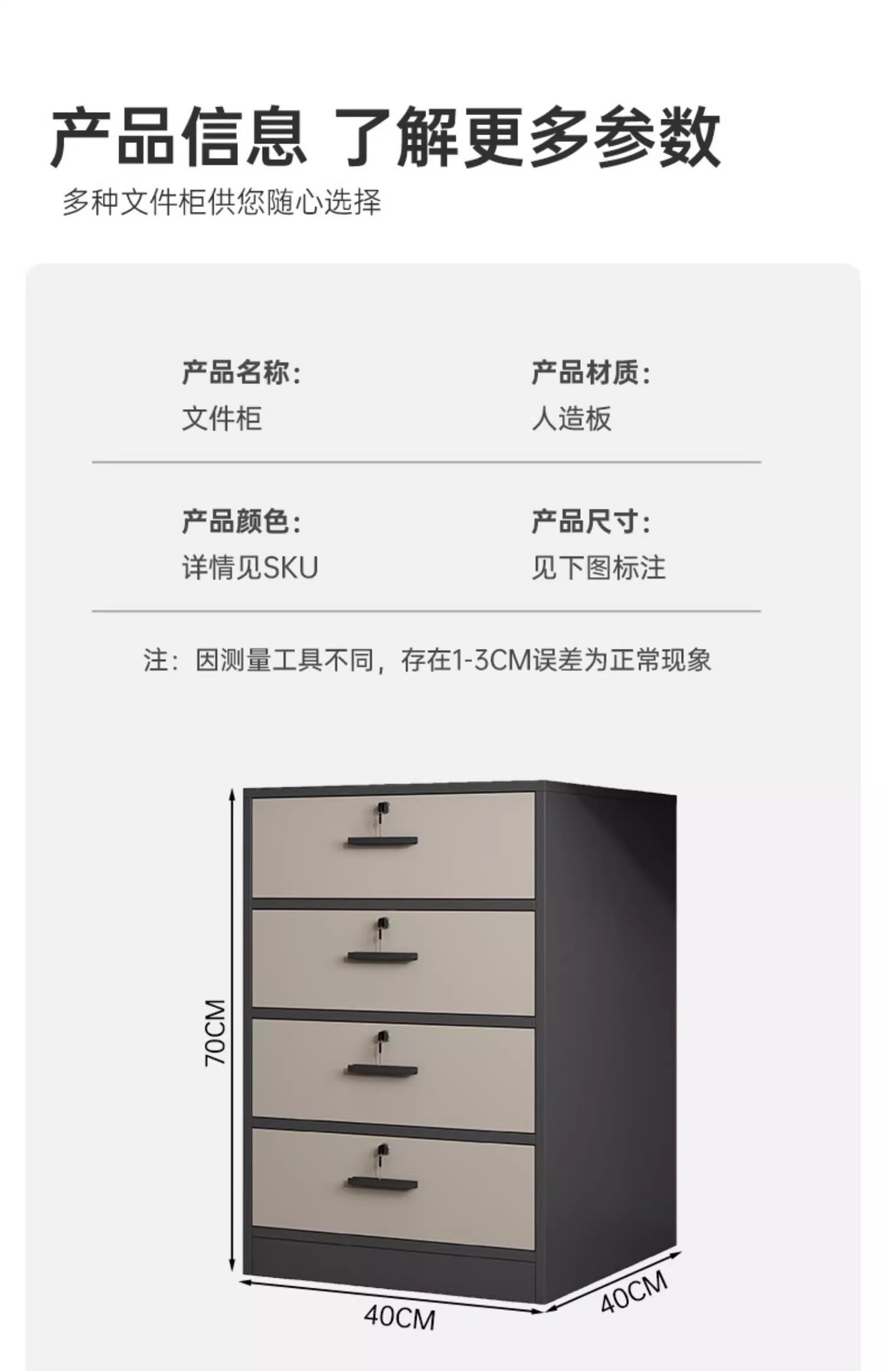 • 새로운 슬라이드 레일 모델丨서랍 4개 및 잠금 장치 4개丨따뜻한 흰색 40*40*70cm