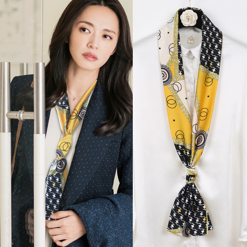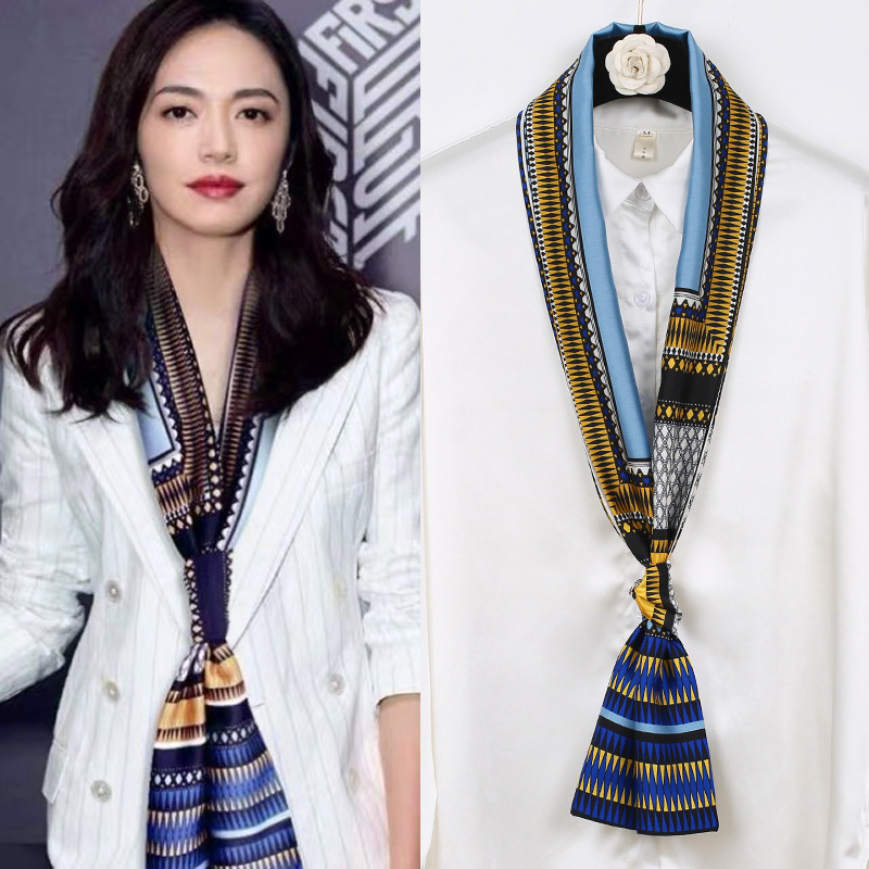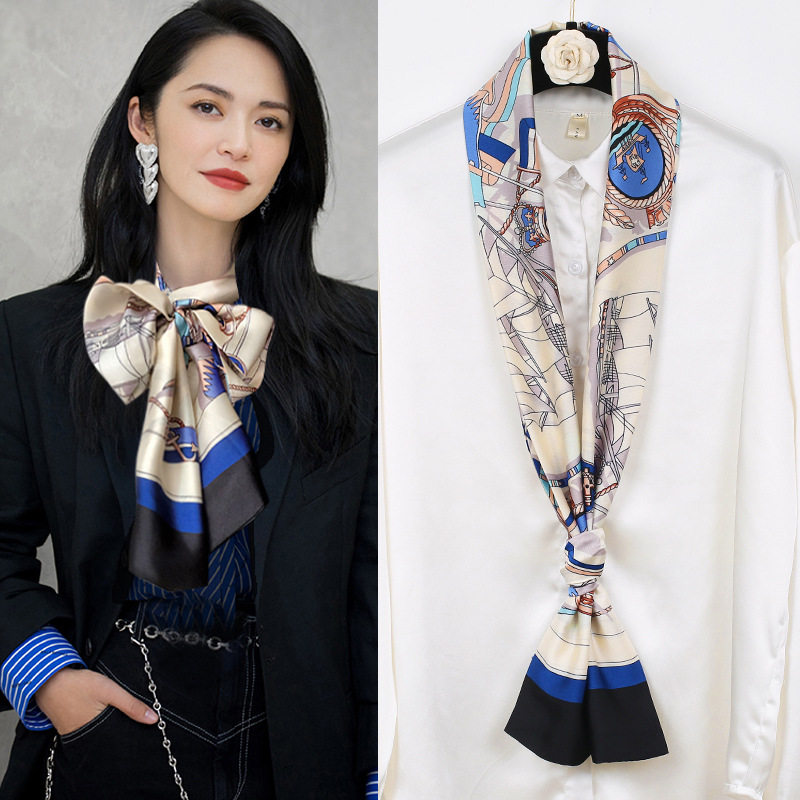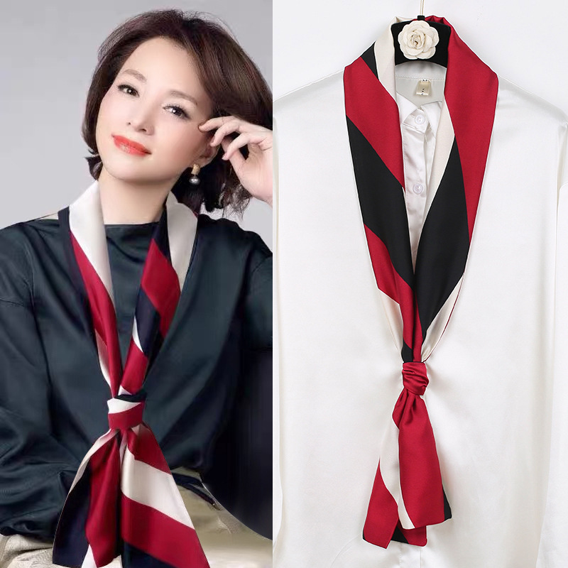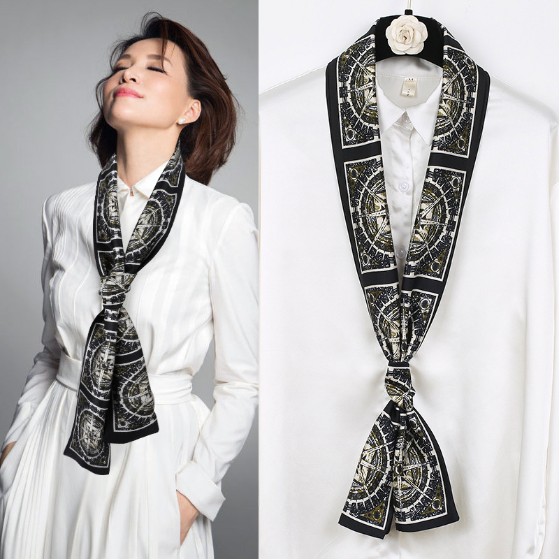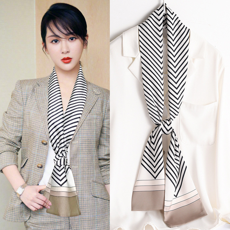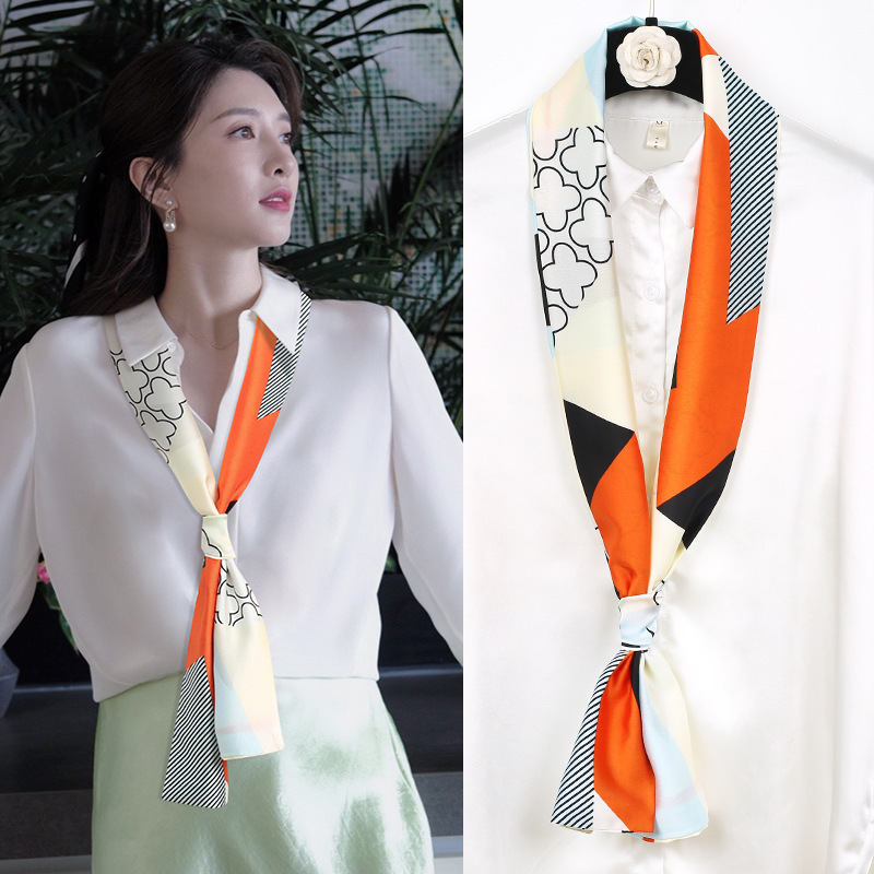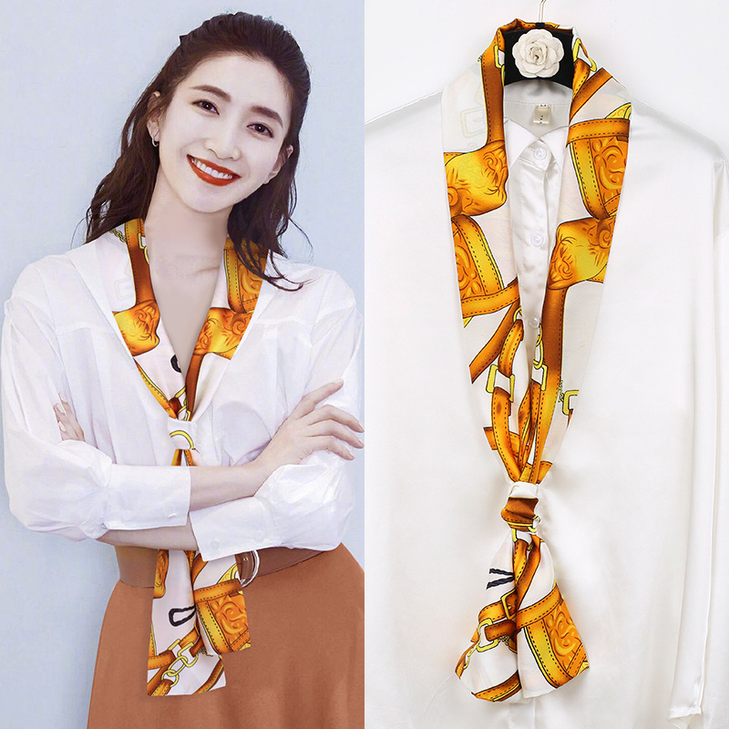 우아한 매칭 셔츠 세트 긴 스카프 여성의 봄과 가을 2024 새로운 얇은 좁은 여름 얇은 하이 엔드 스카프스토어 가기