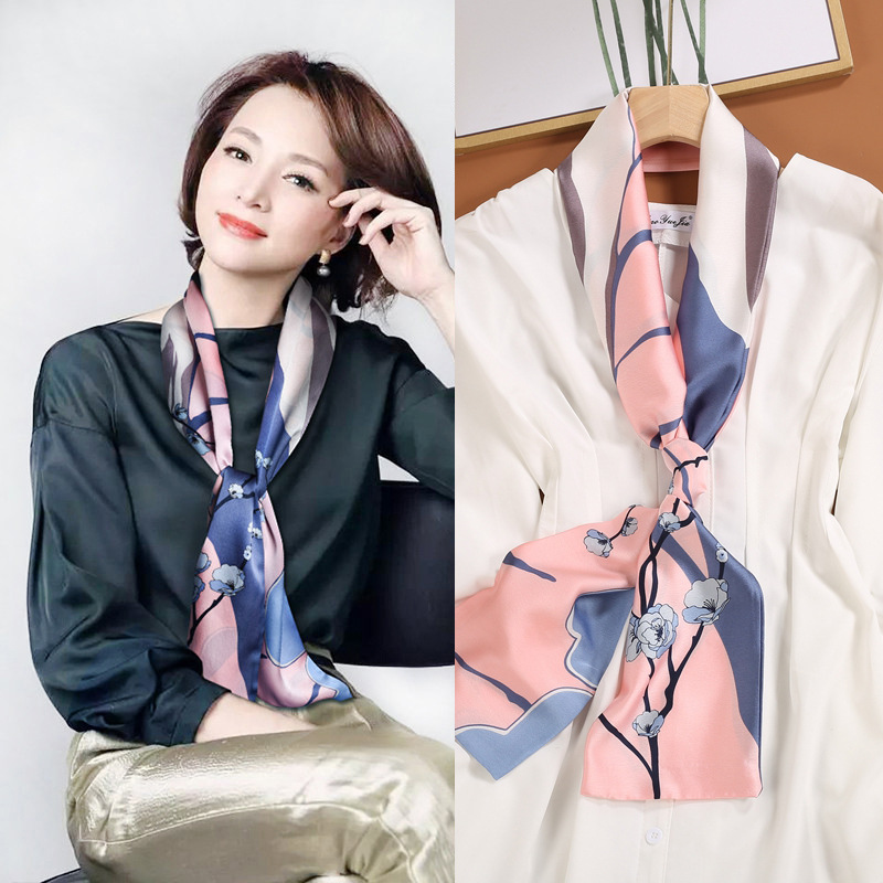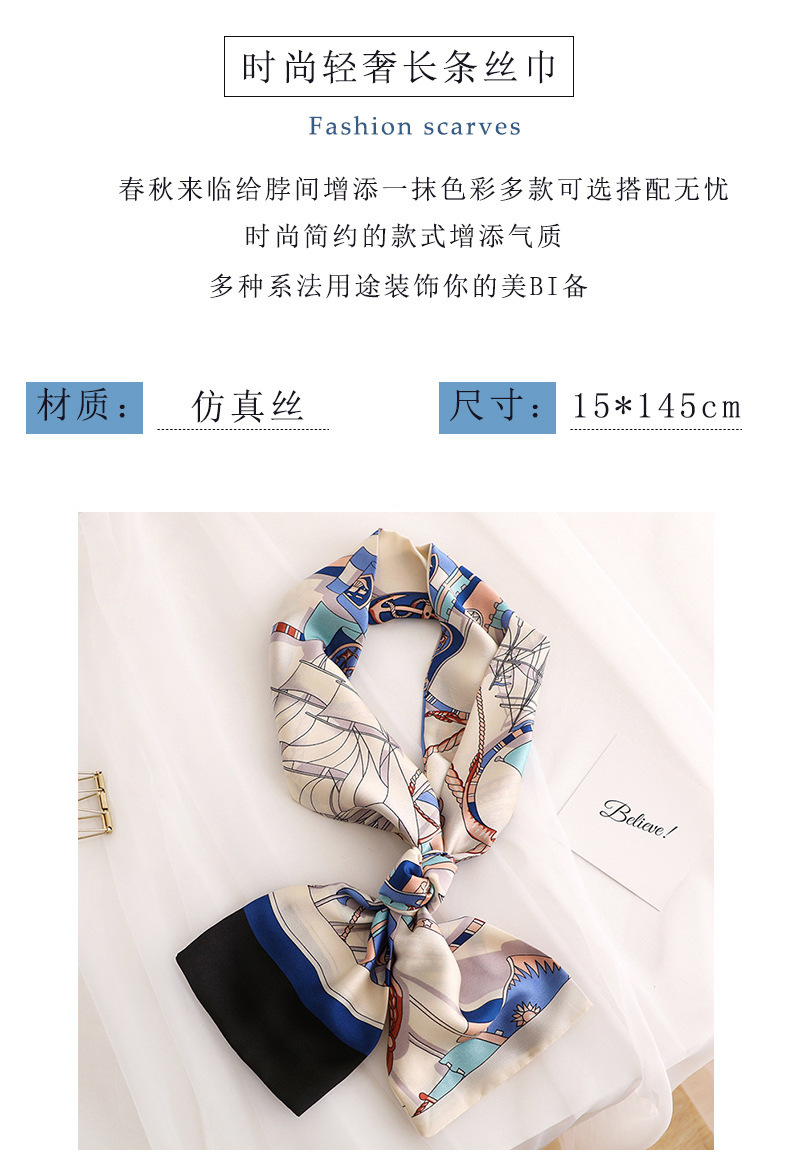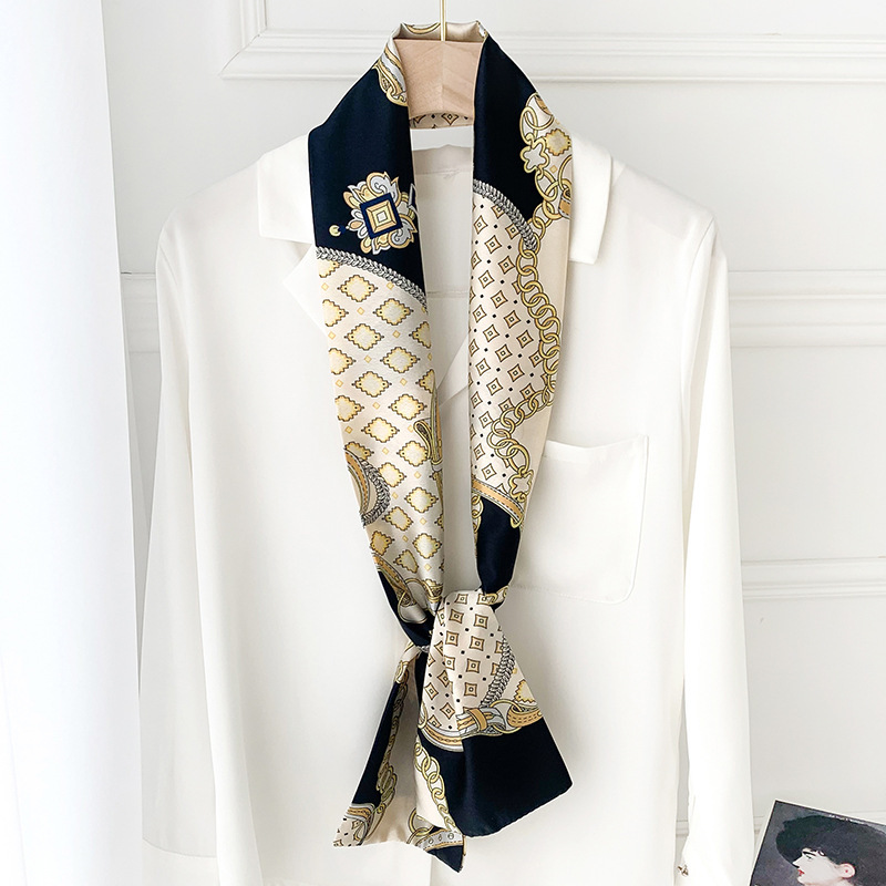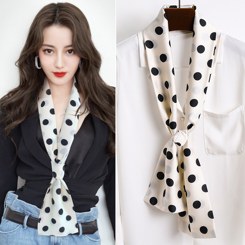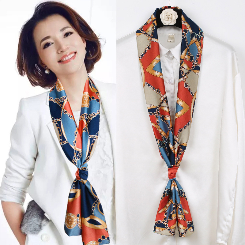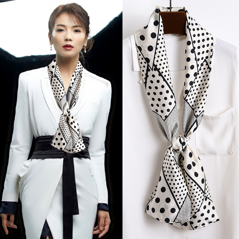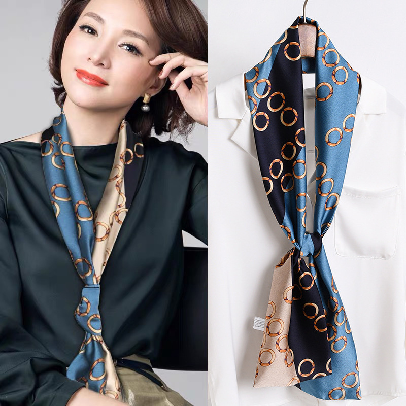 우아한 매칭 셔츠 세트 긴 스카프 여성의 봄과 가을 2024 새로운 얇은 좁은 여름 얇은 하이 엔드 스카프스토어 가기