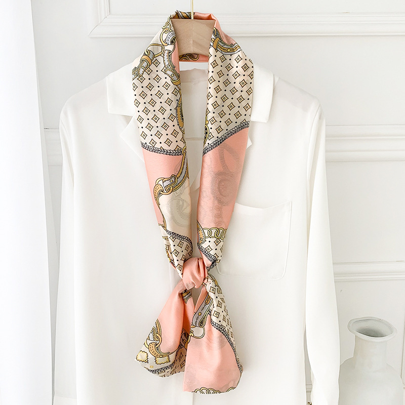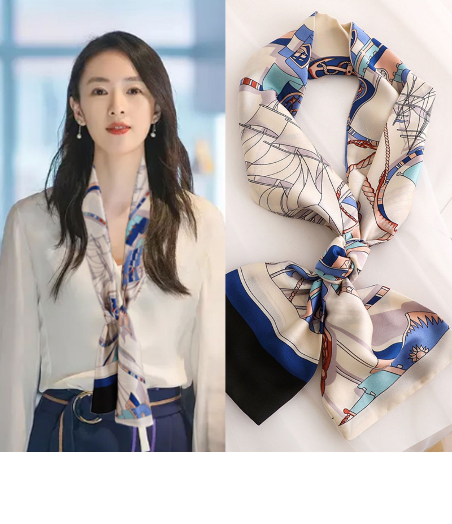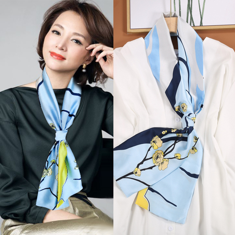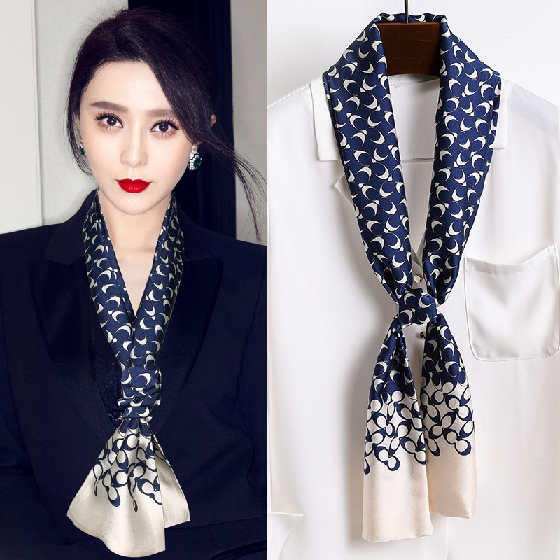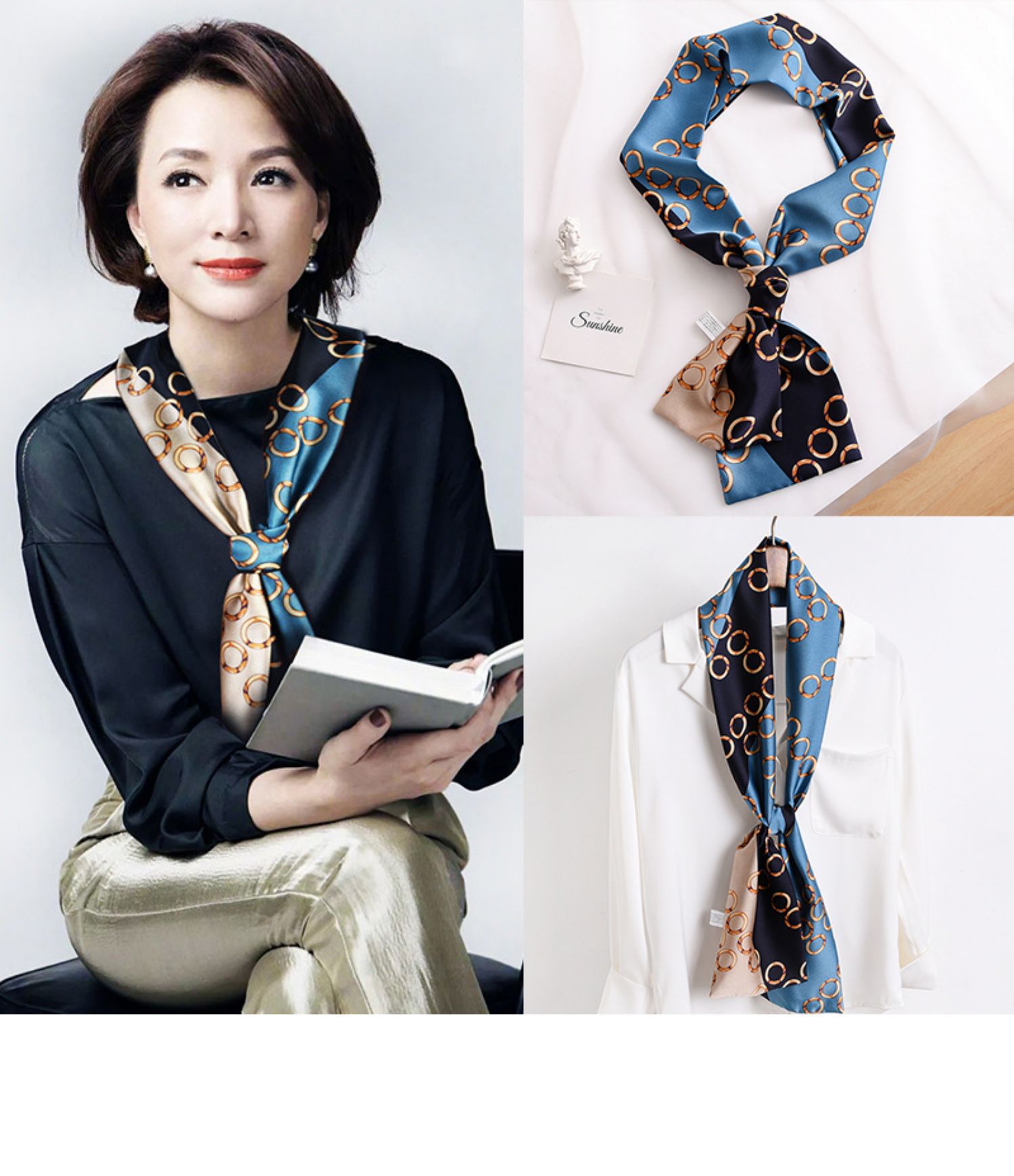 우아한 매칭 셔츠 세트 긴 스카프 여성의 봄과 가을 2024 새로운 얇은 좁은 여름 얇은 하이 엔드 스카프스토어 가기