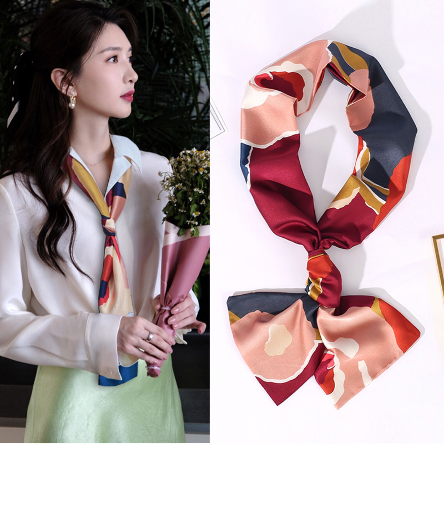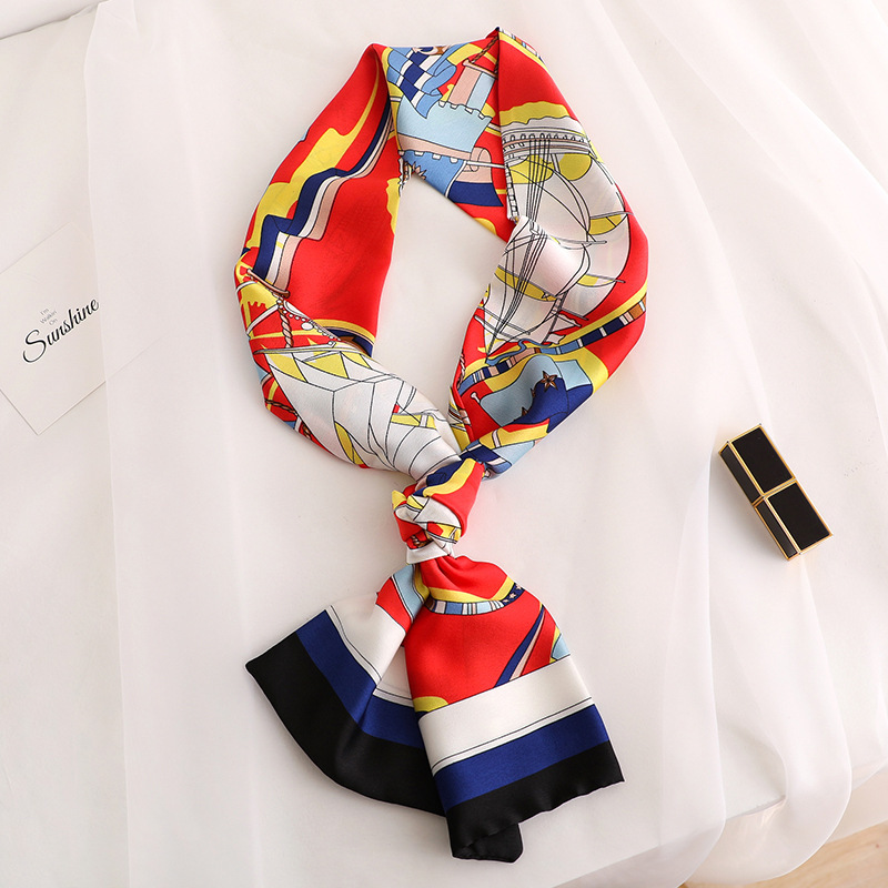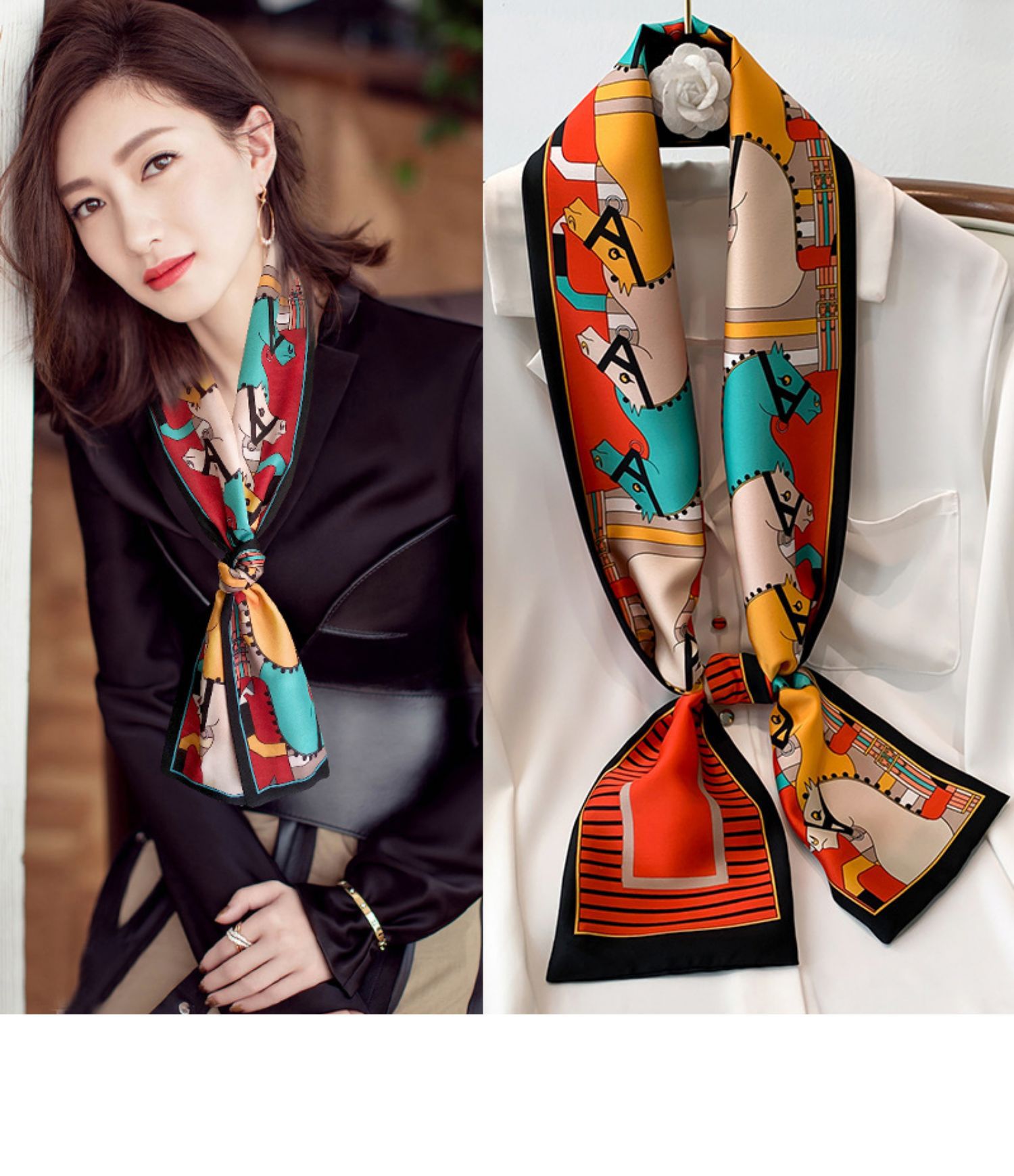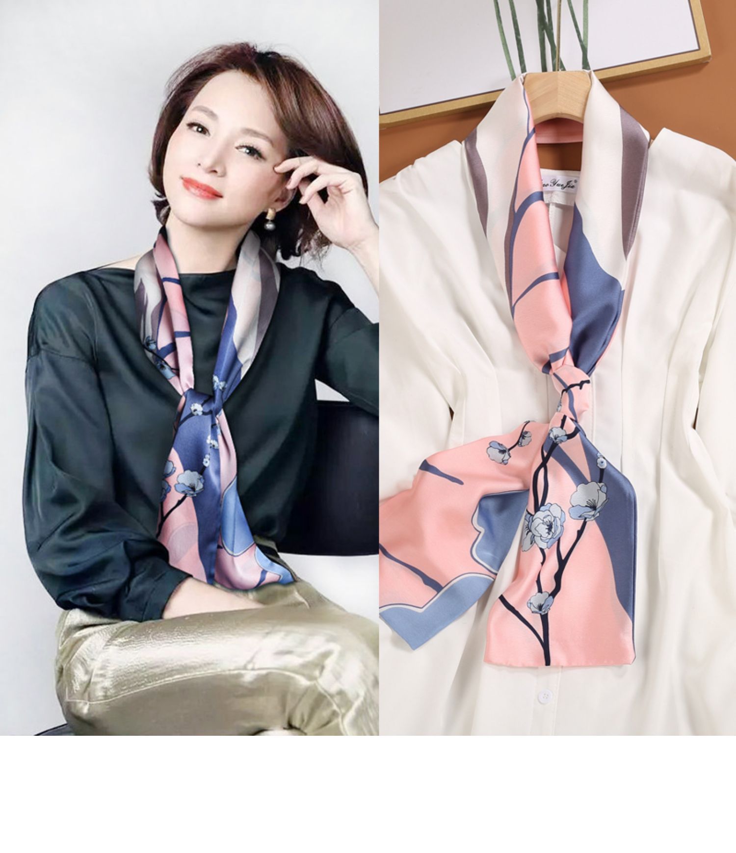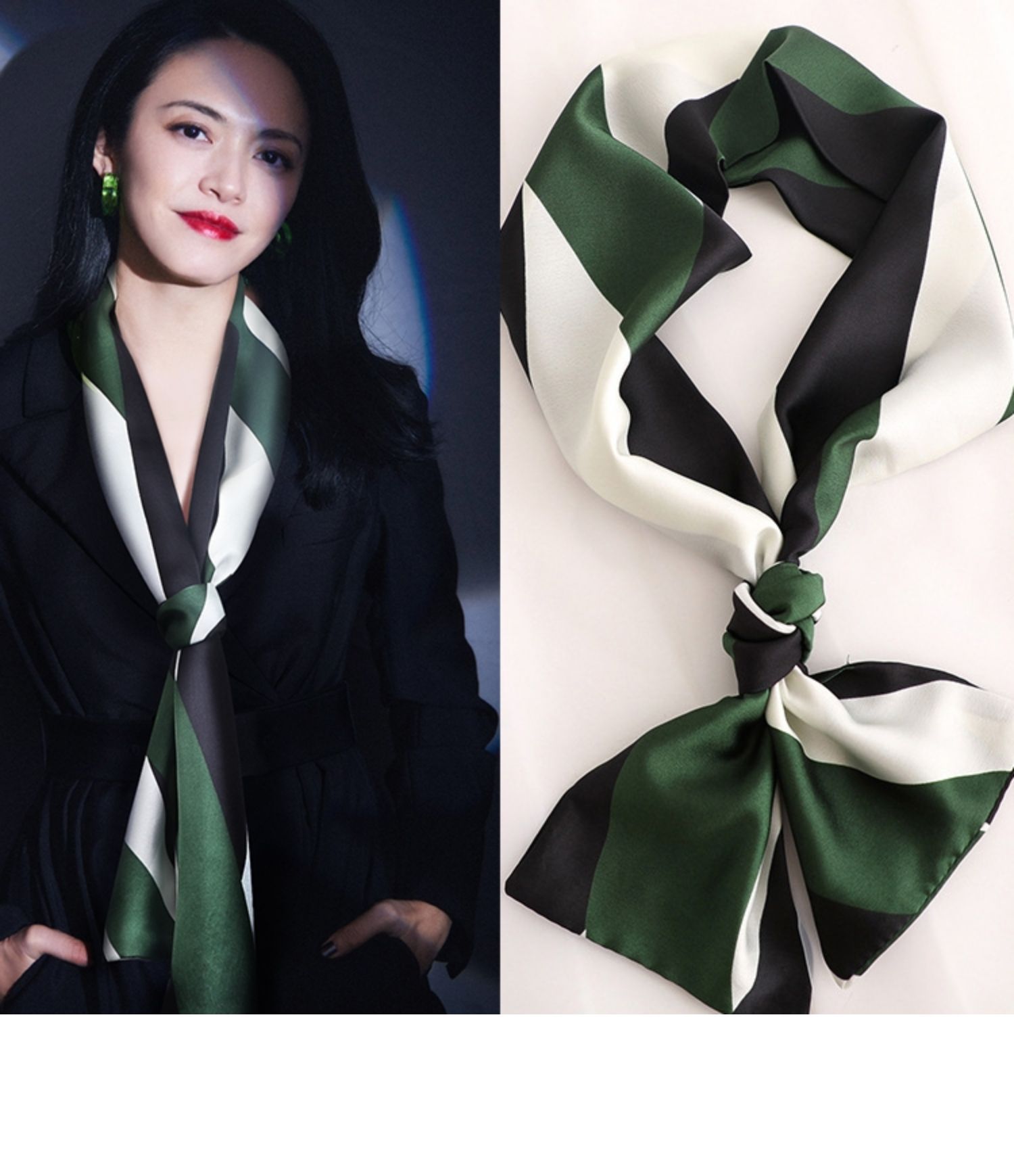 우아한 매칭 셔츠 세트 긴 스카프 여성의 봄과 가을 2024 새로운 얇은 좁은 여름 얇은 하이 엔드 스카프스토어 가기