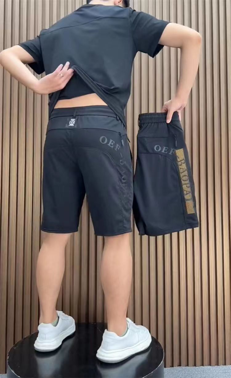 여름 얇은 아이스 실크 빠른 건조 남성 캐주얼 세트 스트레치 인쇄 통기성 메쉬 상쾌한 스포츠 반바지-T-셔츠스토어 가기
