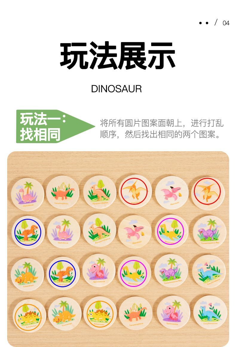나무 공룡 같은 플립 체스 게임 유아 교육 교육 만화 생각 메모리 체스 장난감 찾기스토어 가기