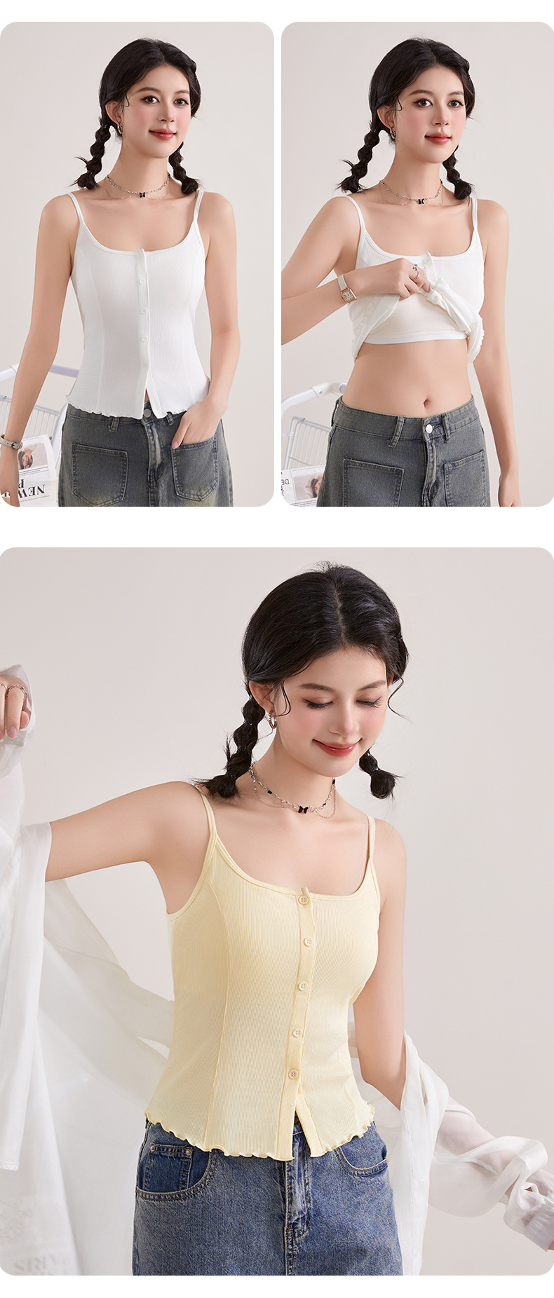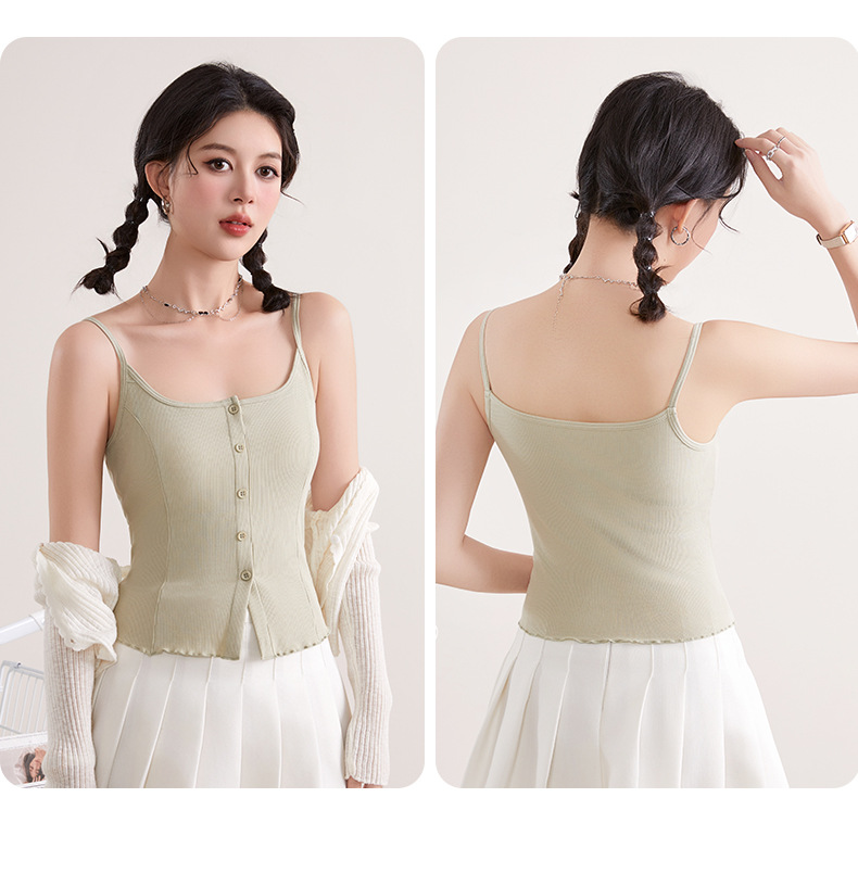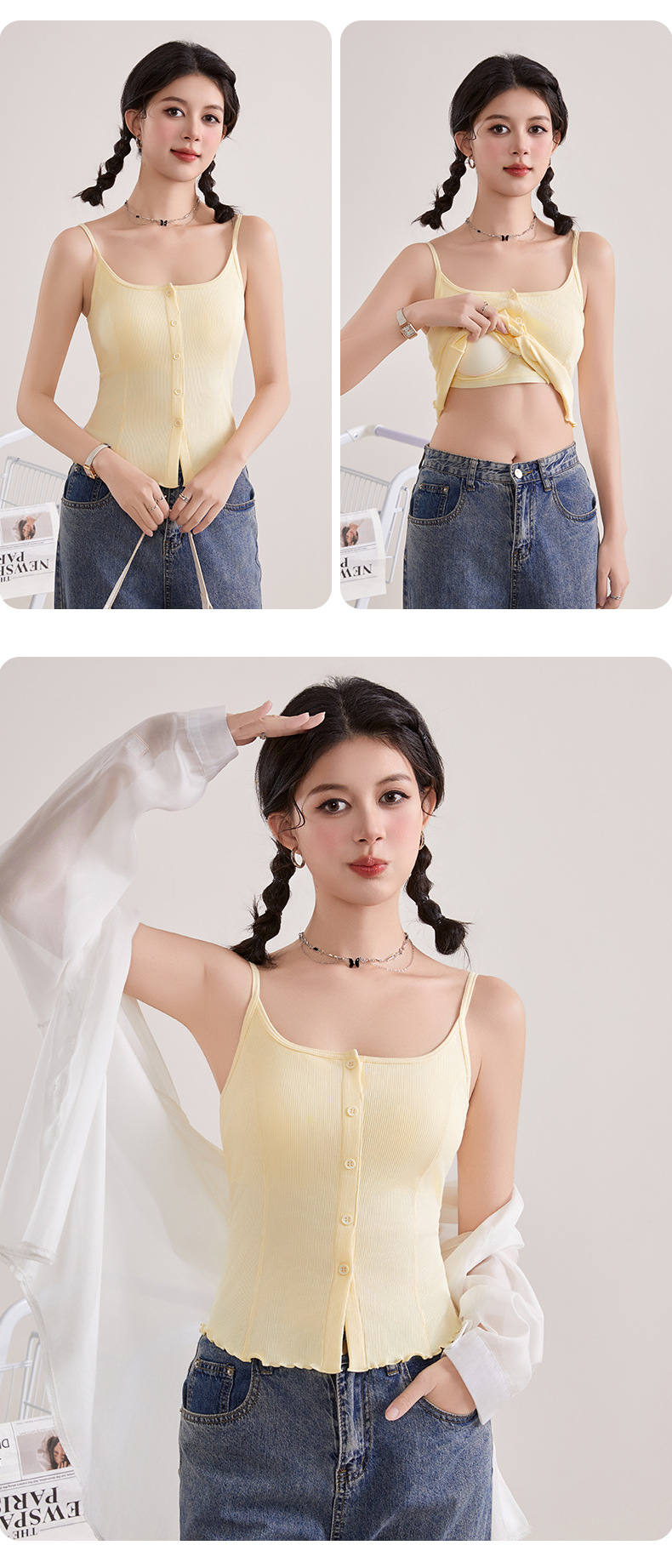 1303 카미 솔 여성의 여름 외부 대형 U 넥 버튼 벨트 가슴 패드면 달콤하고 매운 생선 뼈 민소매 탑