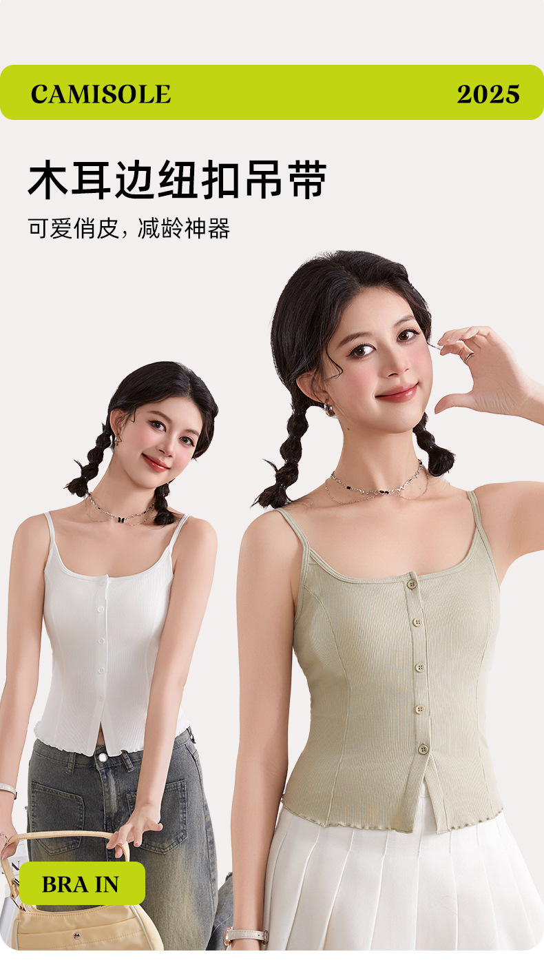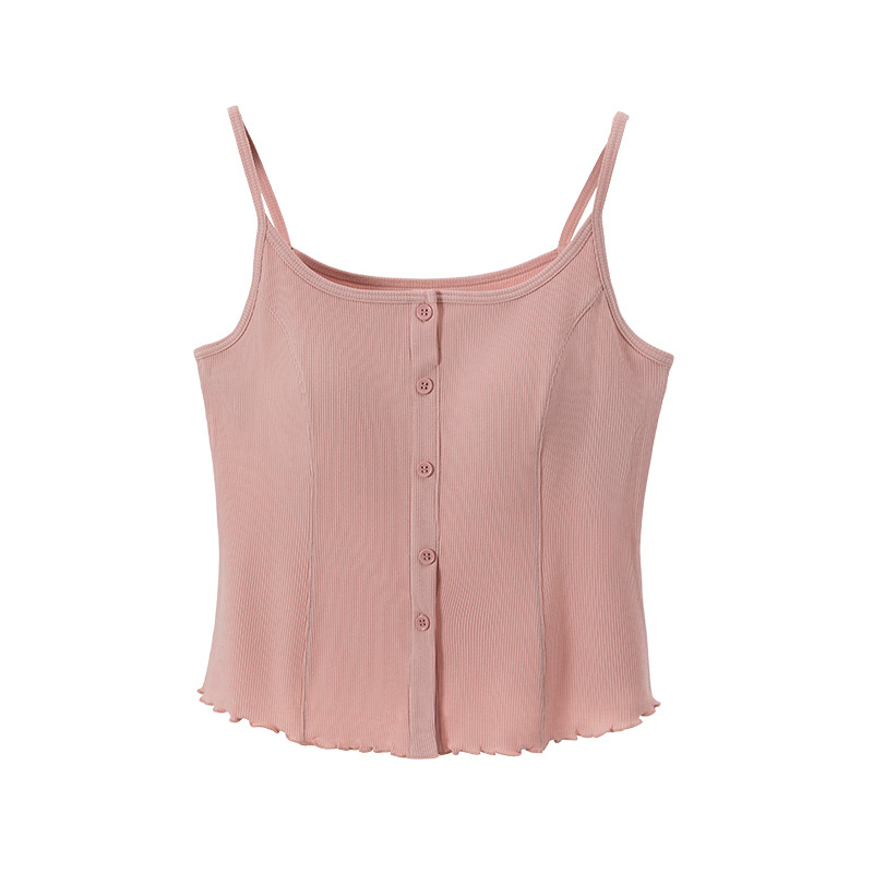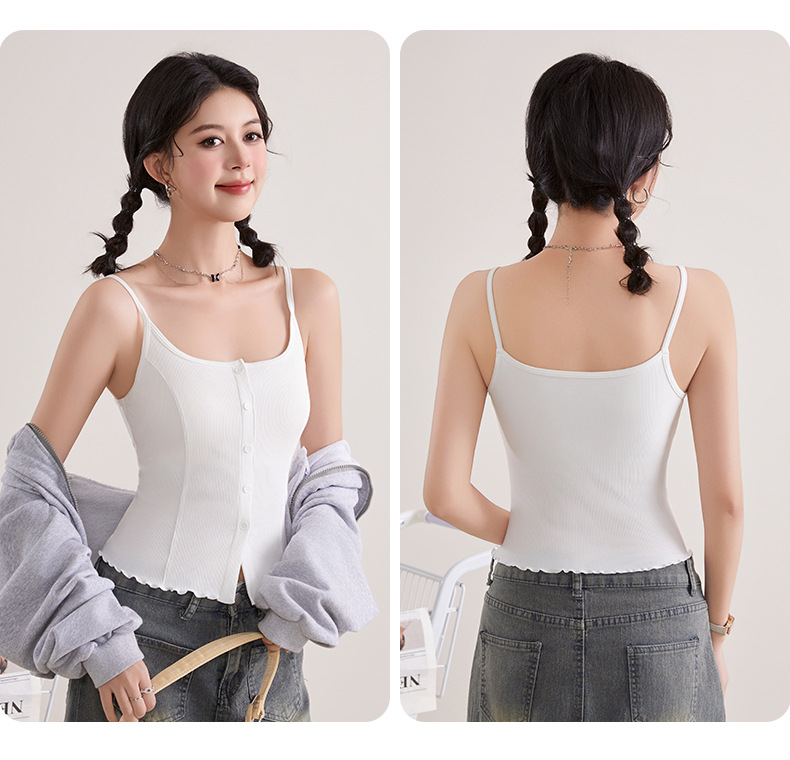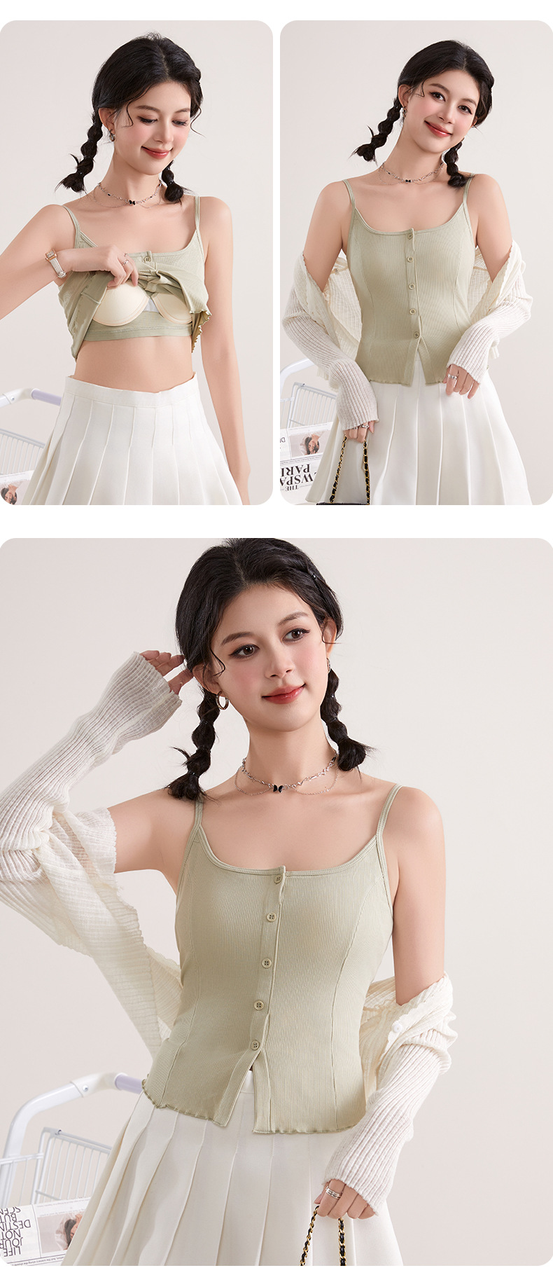 1303 카미 솔 여성의 여름 외부 대형 U 넥 버튼 벨트 가슴 패드면 달콤하고 매운 생선 뼈 민소매 탑