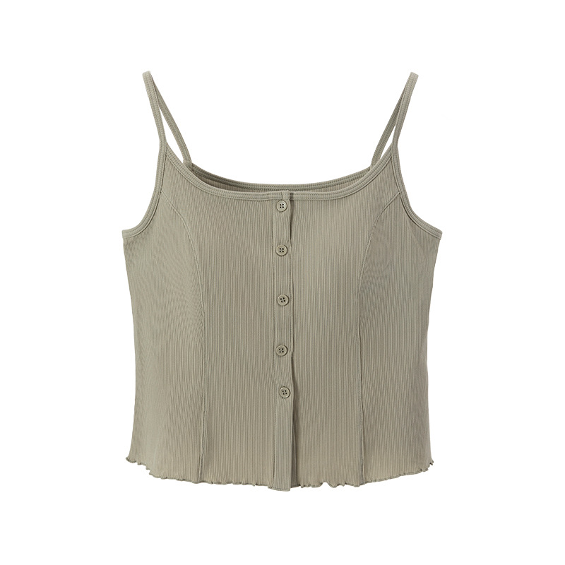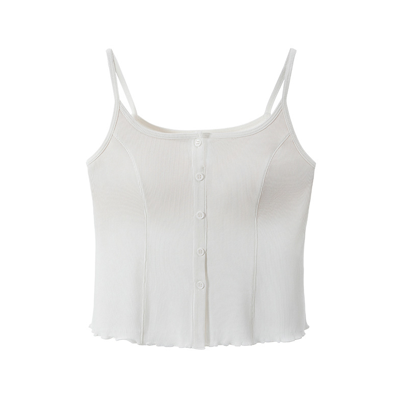 1303 카미 솔 여성의 여름 외부 대형 U 넥 버튼 벨트 가슴 패드면 달콤하고 매운 생선 뼈 민소매 탑스토어 가기