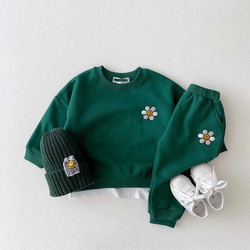 • 녹색 자수 꽃무늬 스웨트셔츠 + 바지