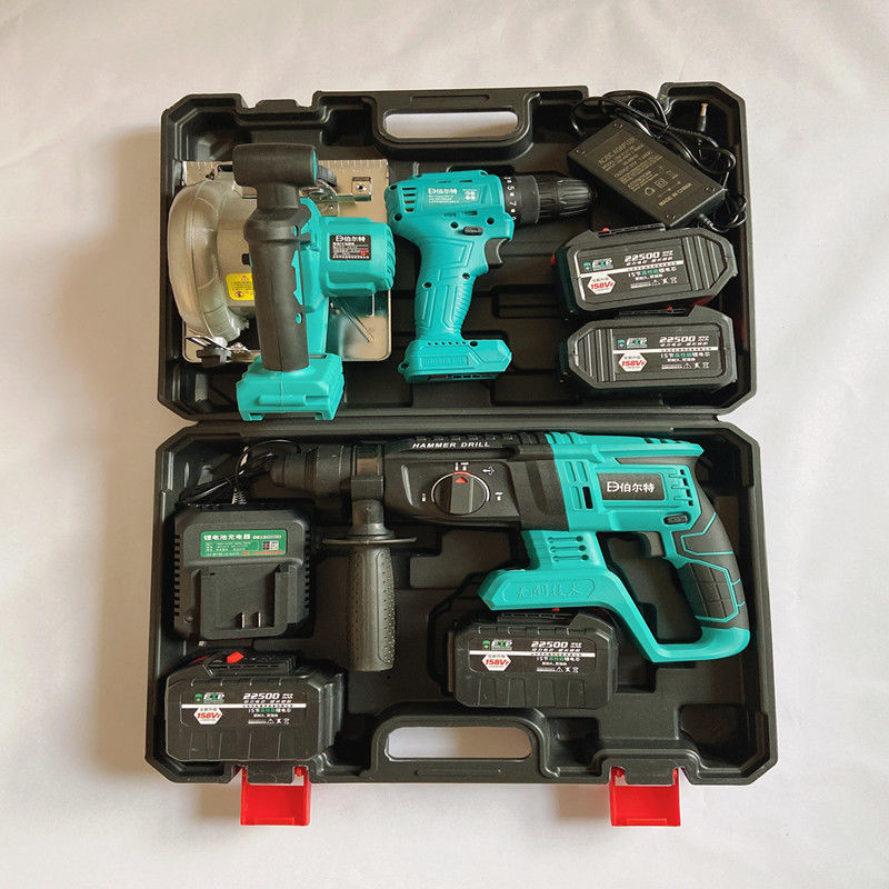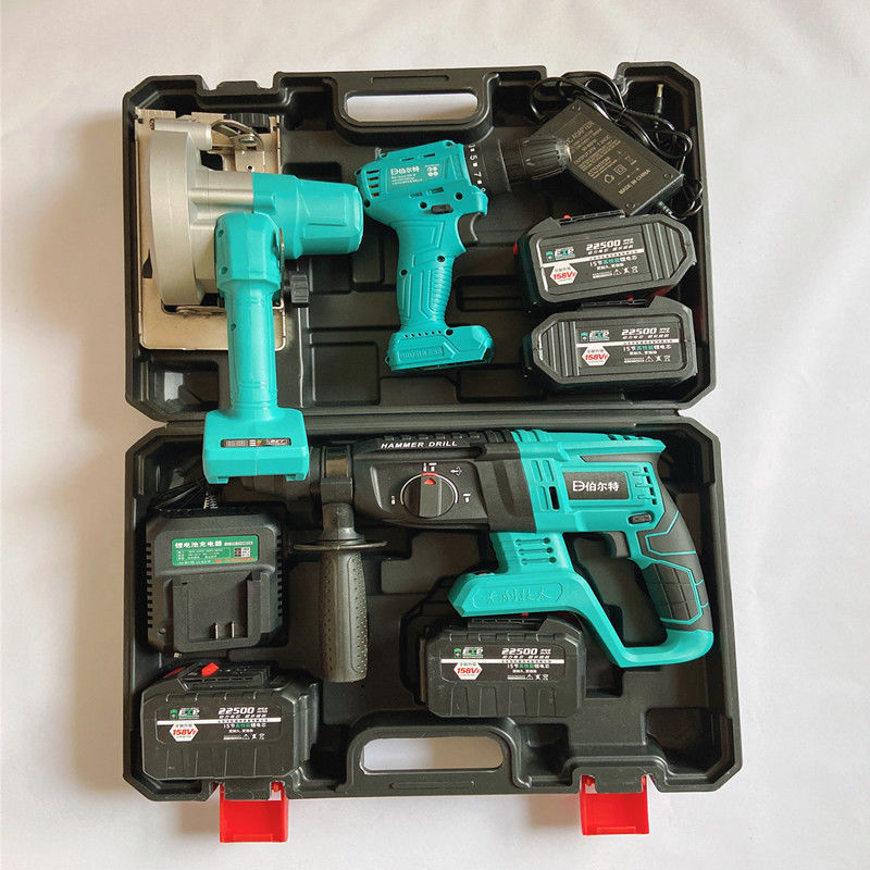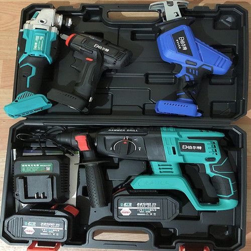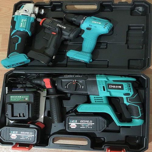 • 배터리 4개, 충전기 2개 + 전기 해머 + 핸드 드릴 + 싱글 핸드 톱