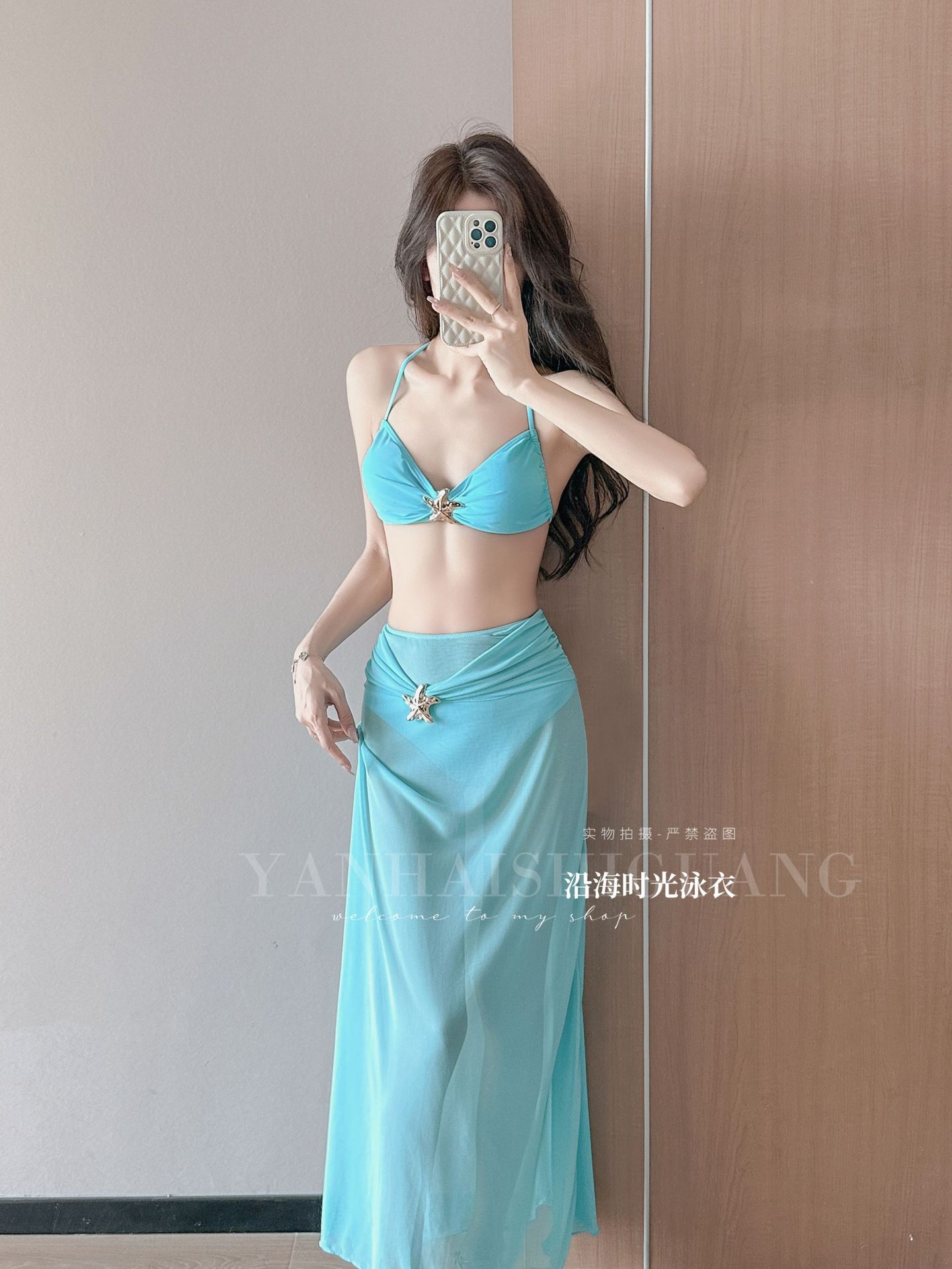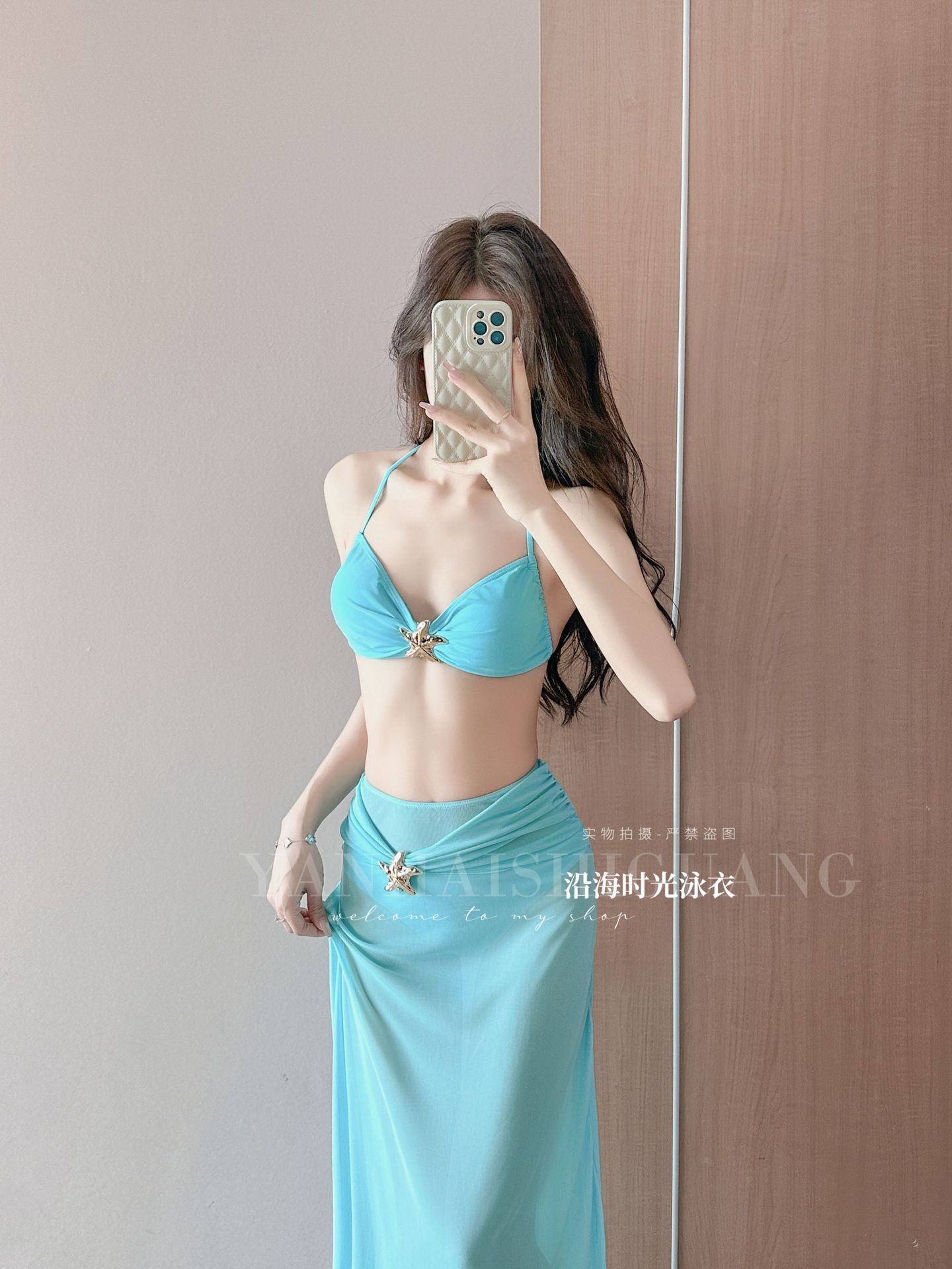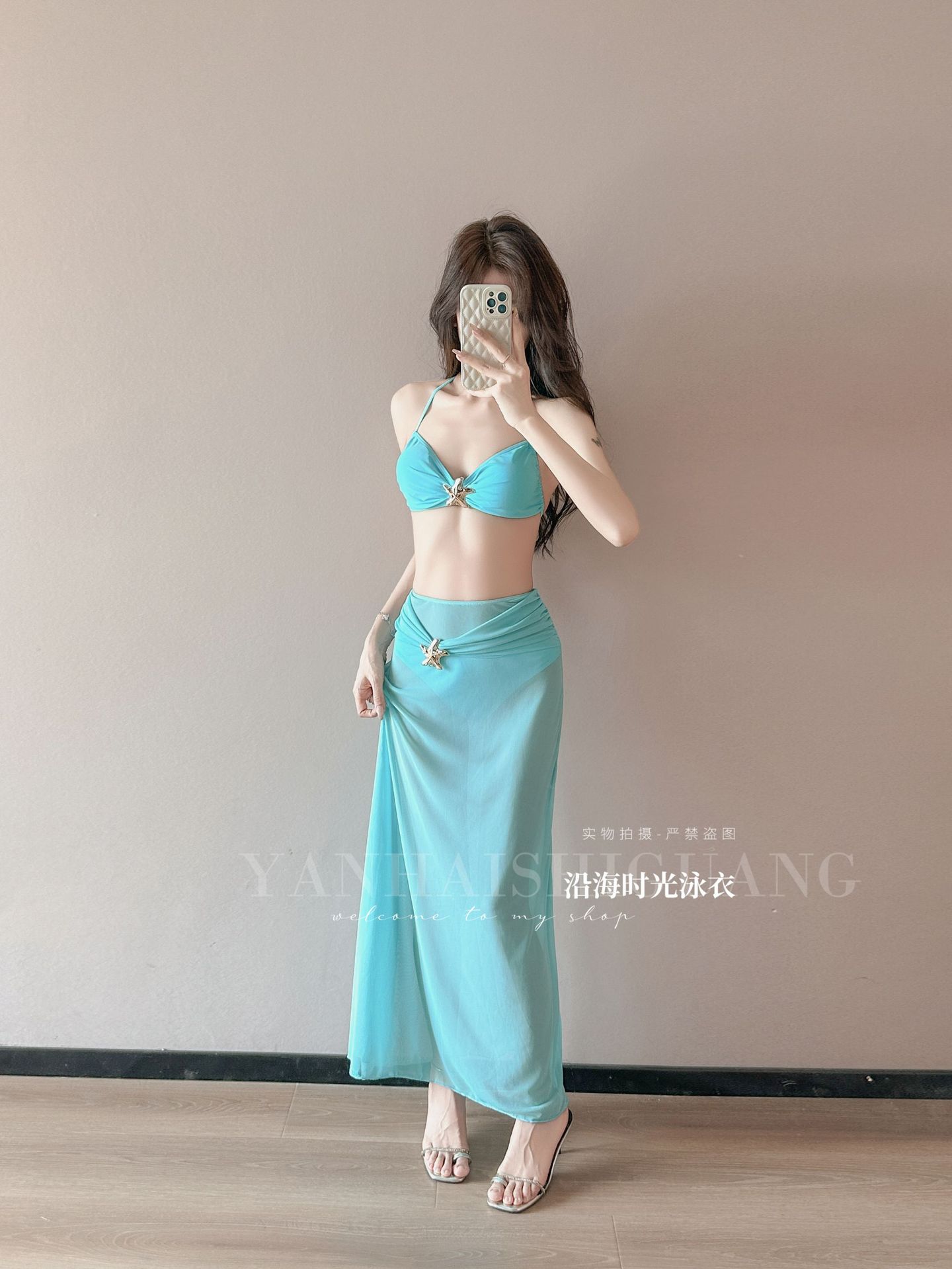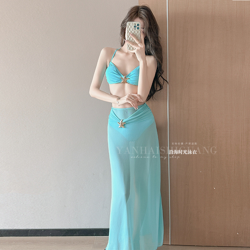 수영복 여성 태국 아름다운 쪼개지는 긴 원피스 작은 가슴은 섹시한 비키니 3 조각 긴 원피스 섬 홀리데이 스타일