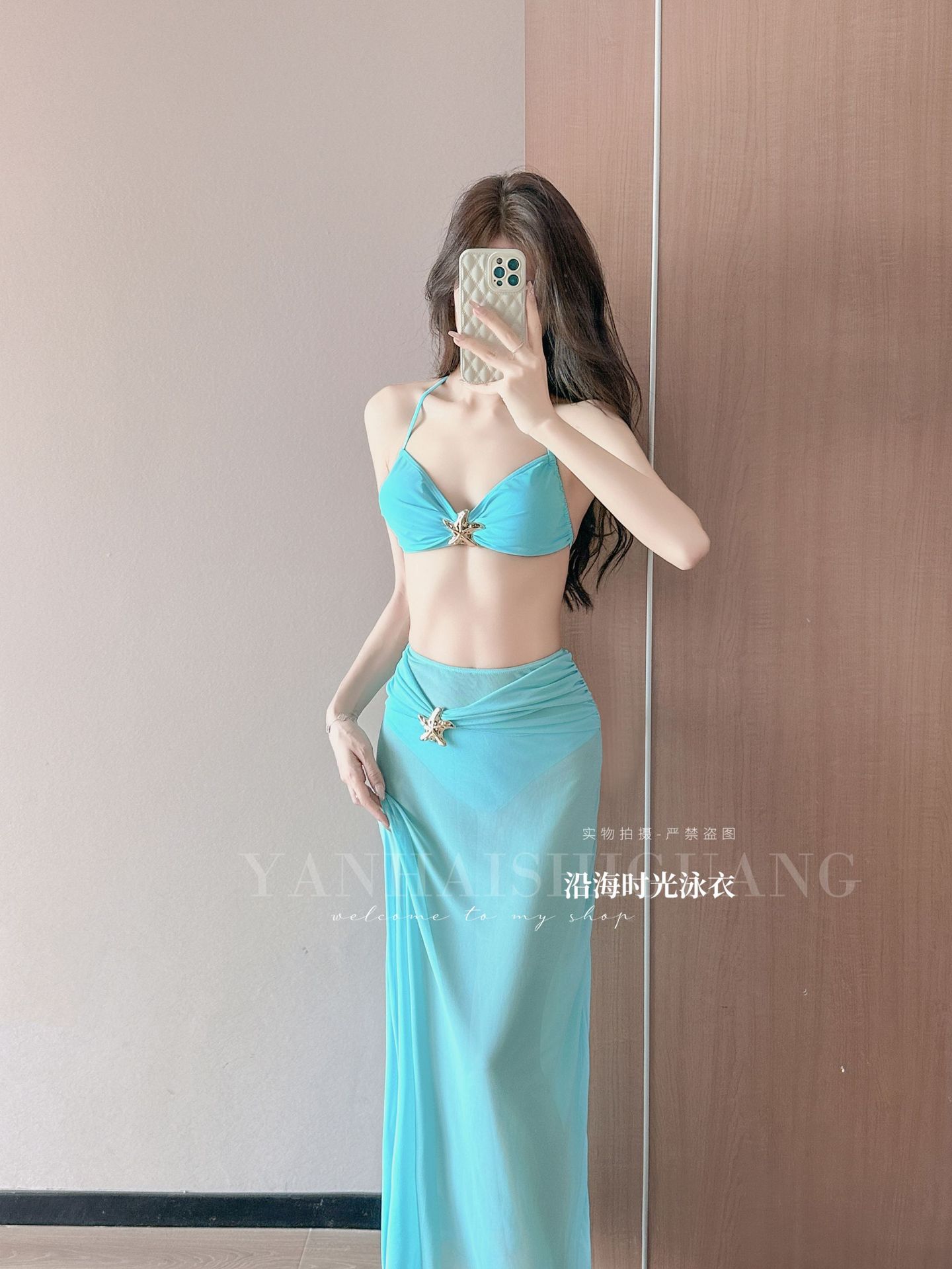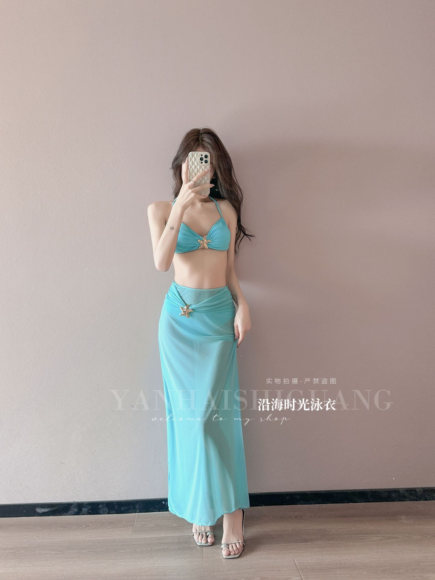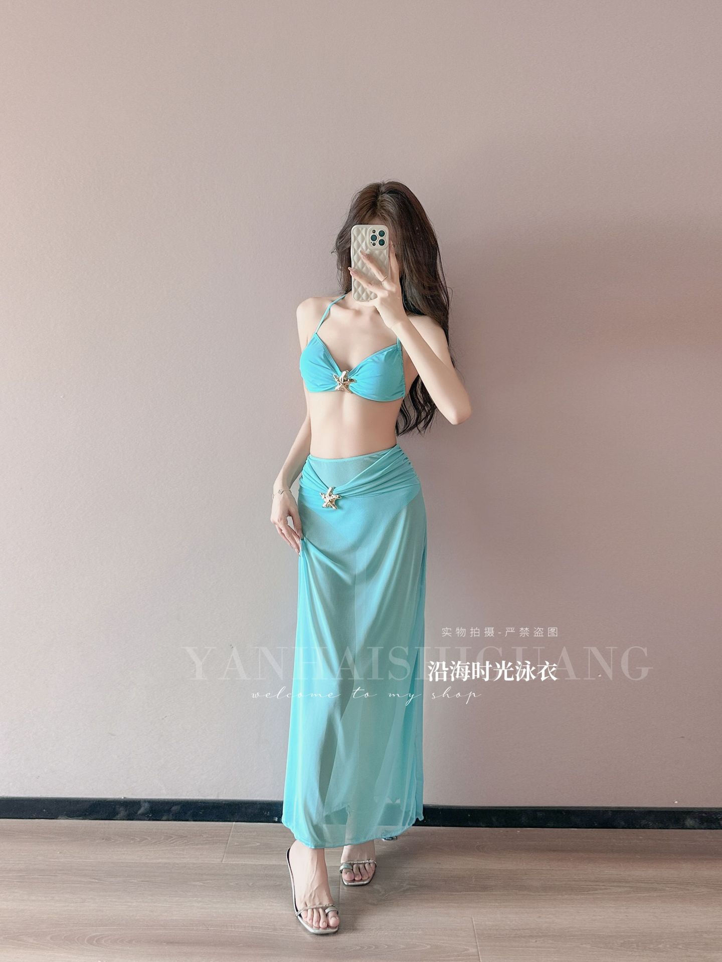 수영복 여성 태국 아름다운 쪼개지는 긴 원피스 작은 가슴은 섹시한 비키니 3 조각 긴 원피스 섬 홀리데이 스타일