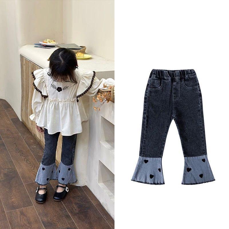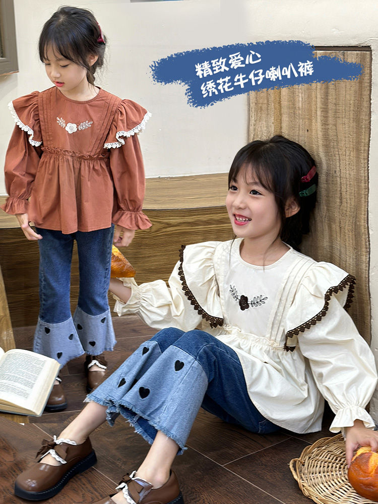 소녀 청바지 어린이 가을 바지 2025 새로운 스타일 소녀 꽃 바지 유행 캐주얼 바지스토어 가기