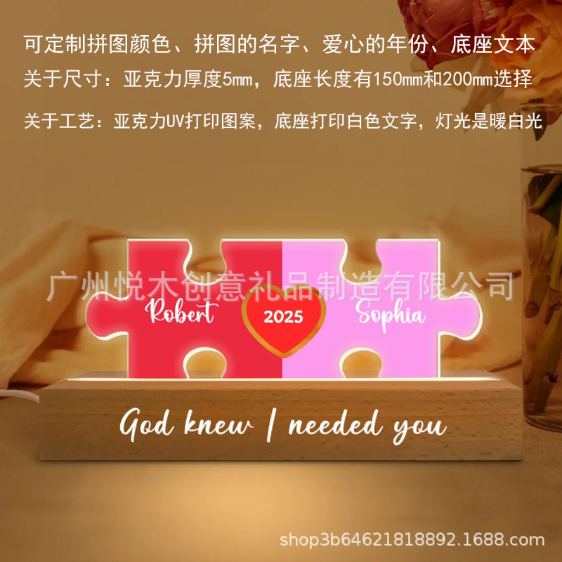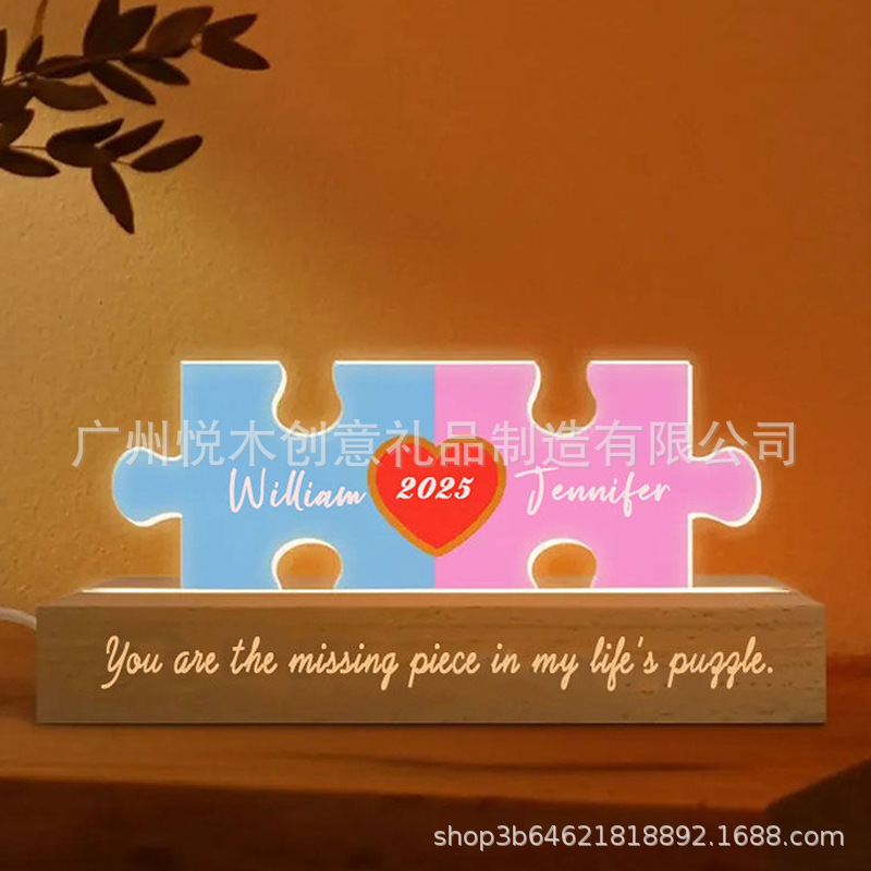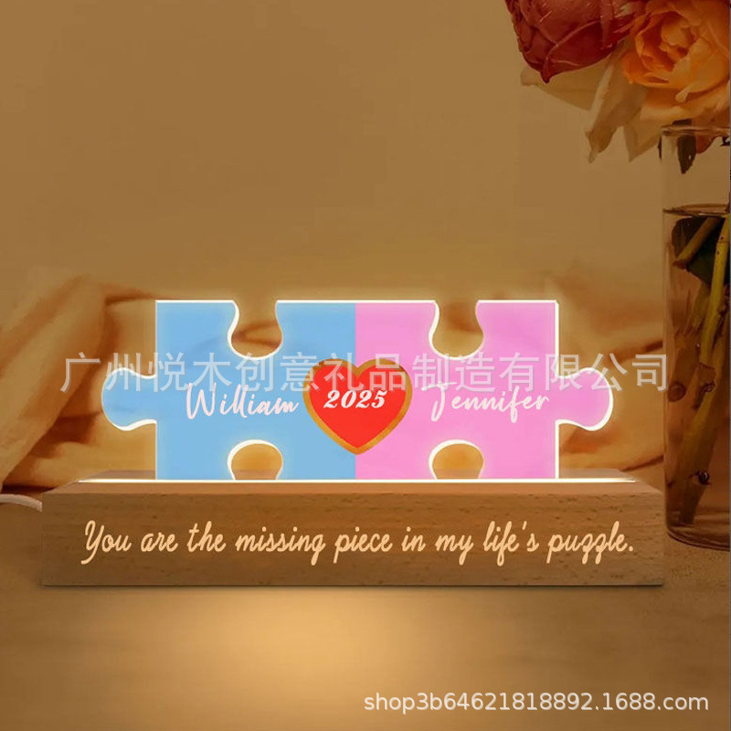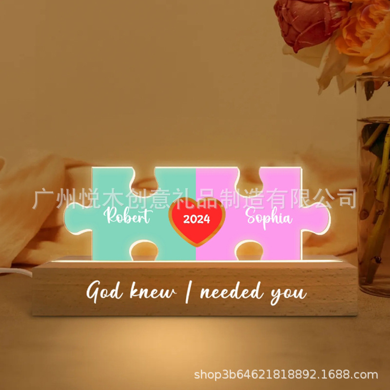 맞춤형 커플 이름 퍼즐 LED 야간 조명 국경 간 인기 판매 발렌타인 데이 선물 2025 Amazon 인기 판매 장식품