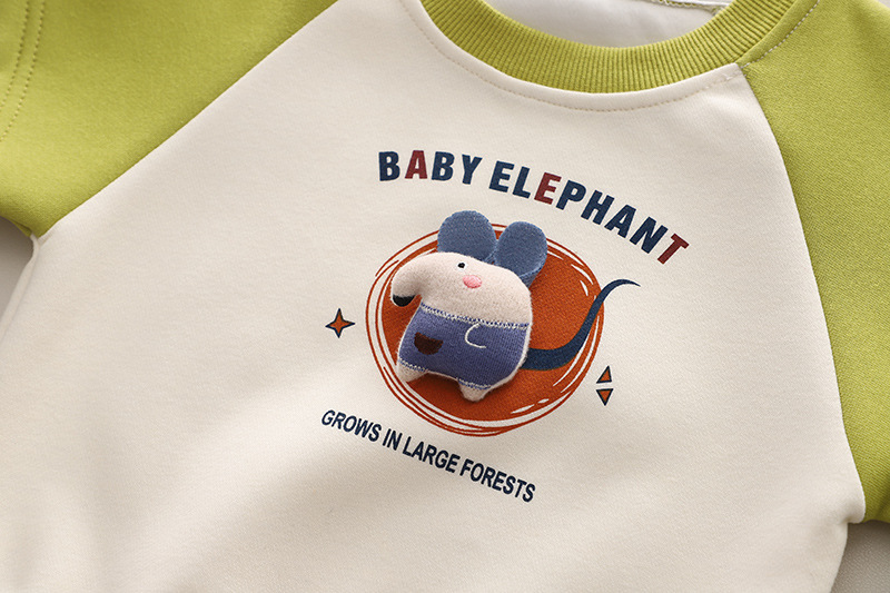 봄 2025 새로운 아동복 긴팔 코끼리 0-5 세 소년 투피스 봄 어린이 세트 도매