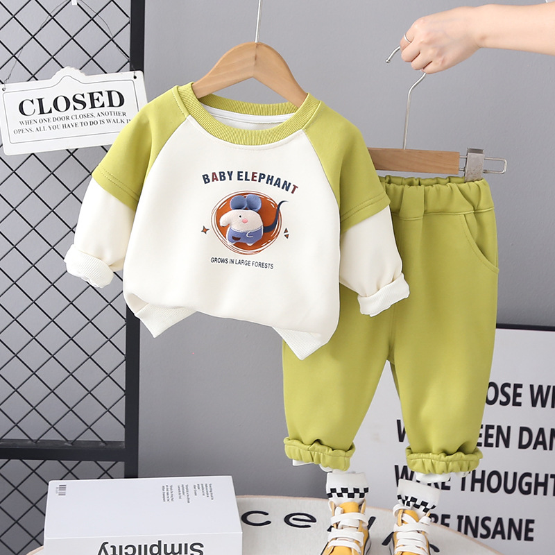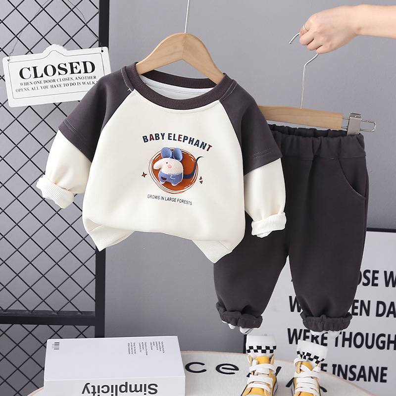 봄 2025 새로운 아동복 긴팔 코끼리 0-5 세 소년 투피스 봄 어린이 세트 도매스토어 가기