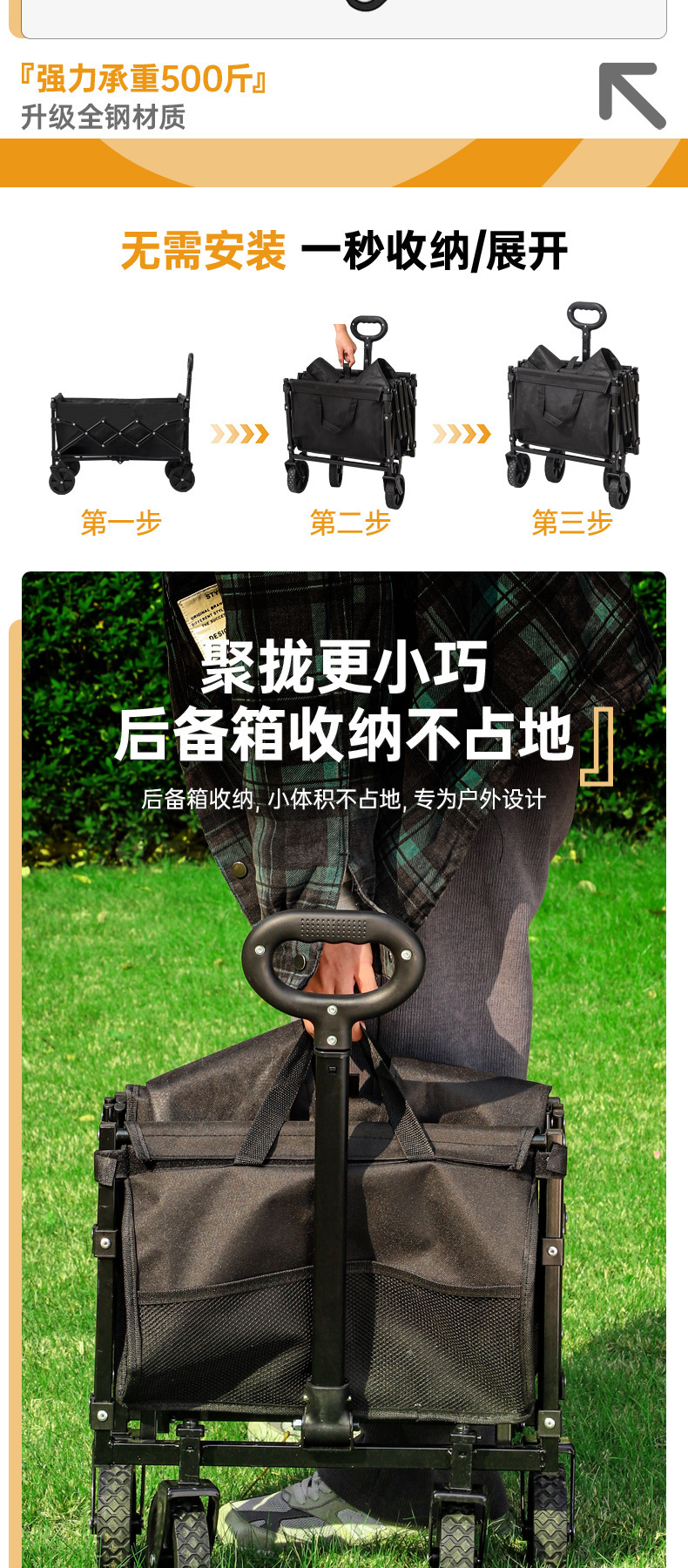 국경 간 폭발 분리 가능한 캠퍼 자동차 야외 트롤리 캠핑 휴대용 접이식 카트 초경량 플랫 폴드 트레일러스토어 가기