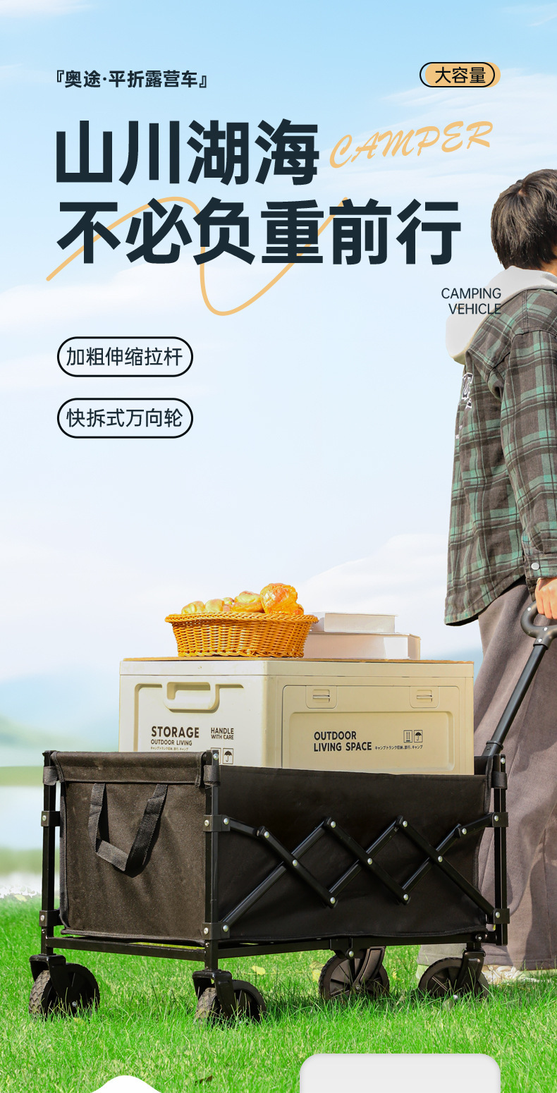 국경 간 폭발 분리 가능한 캠퍼 자동차 야외 트롤리 캠핑 휴대용 접이식 카트 초경량 플랫 폴드 트레일러