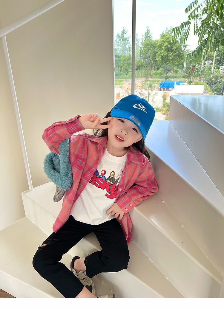소녀 셔츠 2025 가을 새로운 어린이 아기 격자 무늬 셔츠 어린이 얇은 카디건 자켓 트렌디스토어 가기