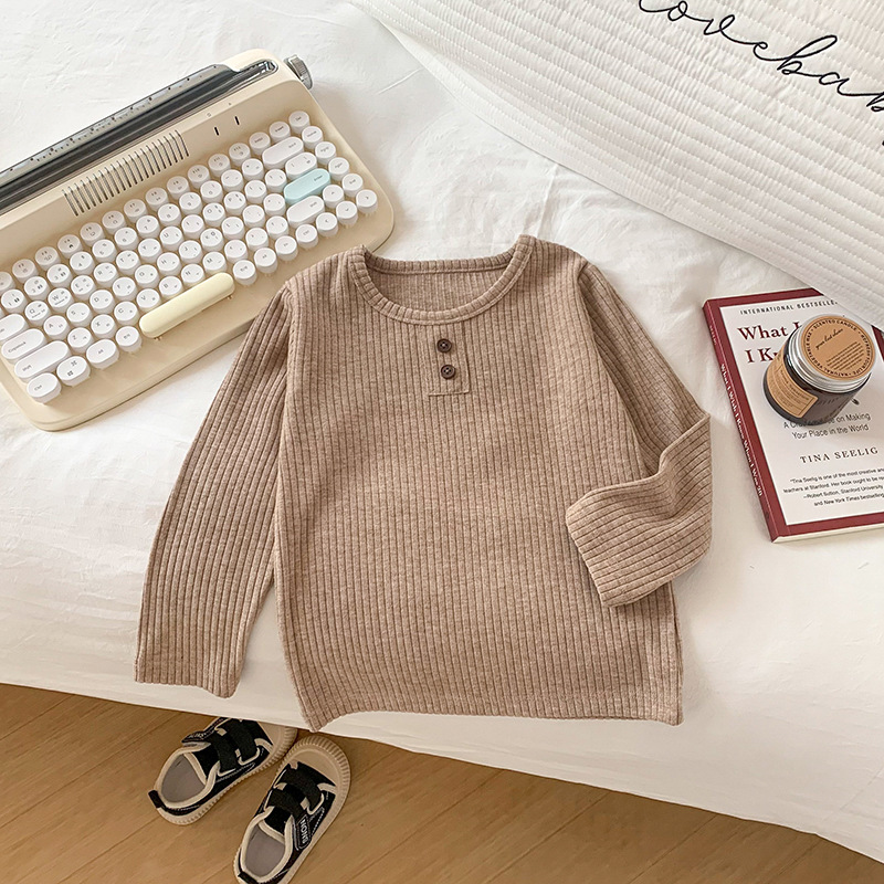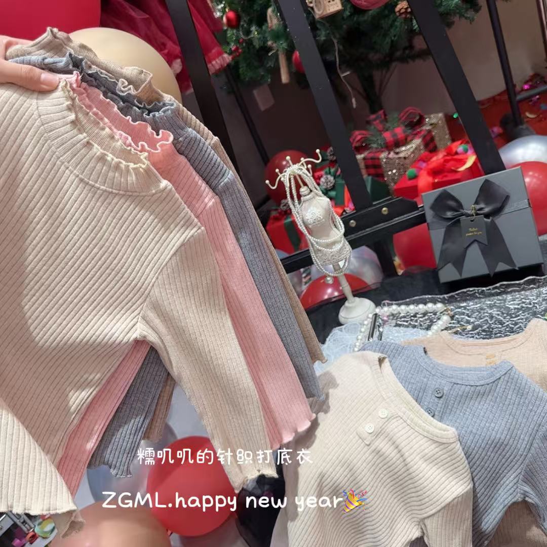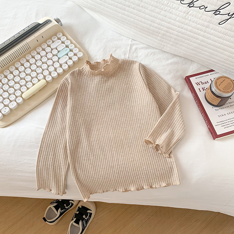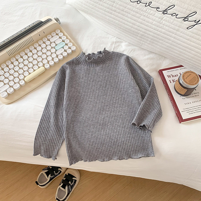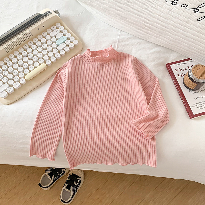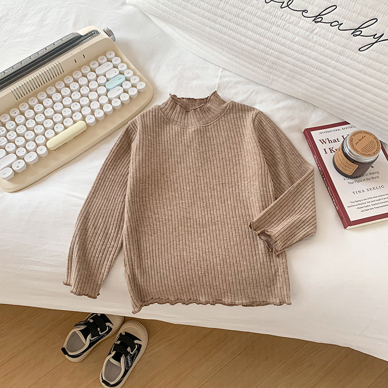 어린이와 소녀를위한 왁스 니트베이스 의류 반 높이 칼라 따뜻한 내부 재킷 어린이 아기 티셔츠 긴 소매