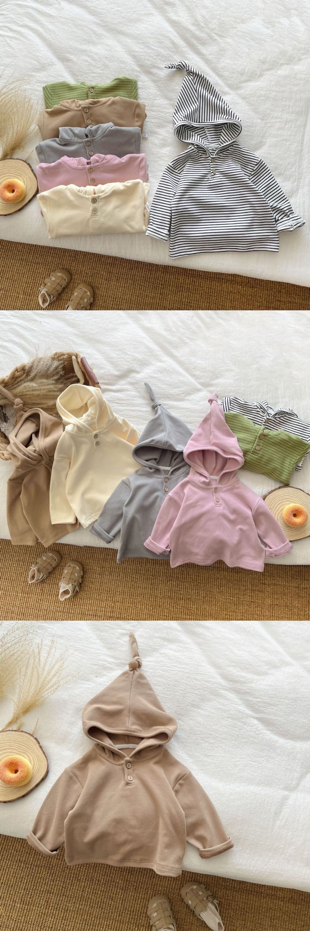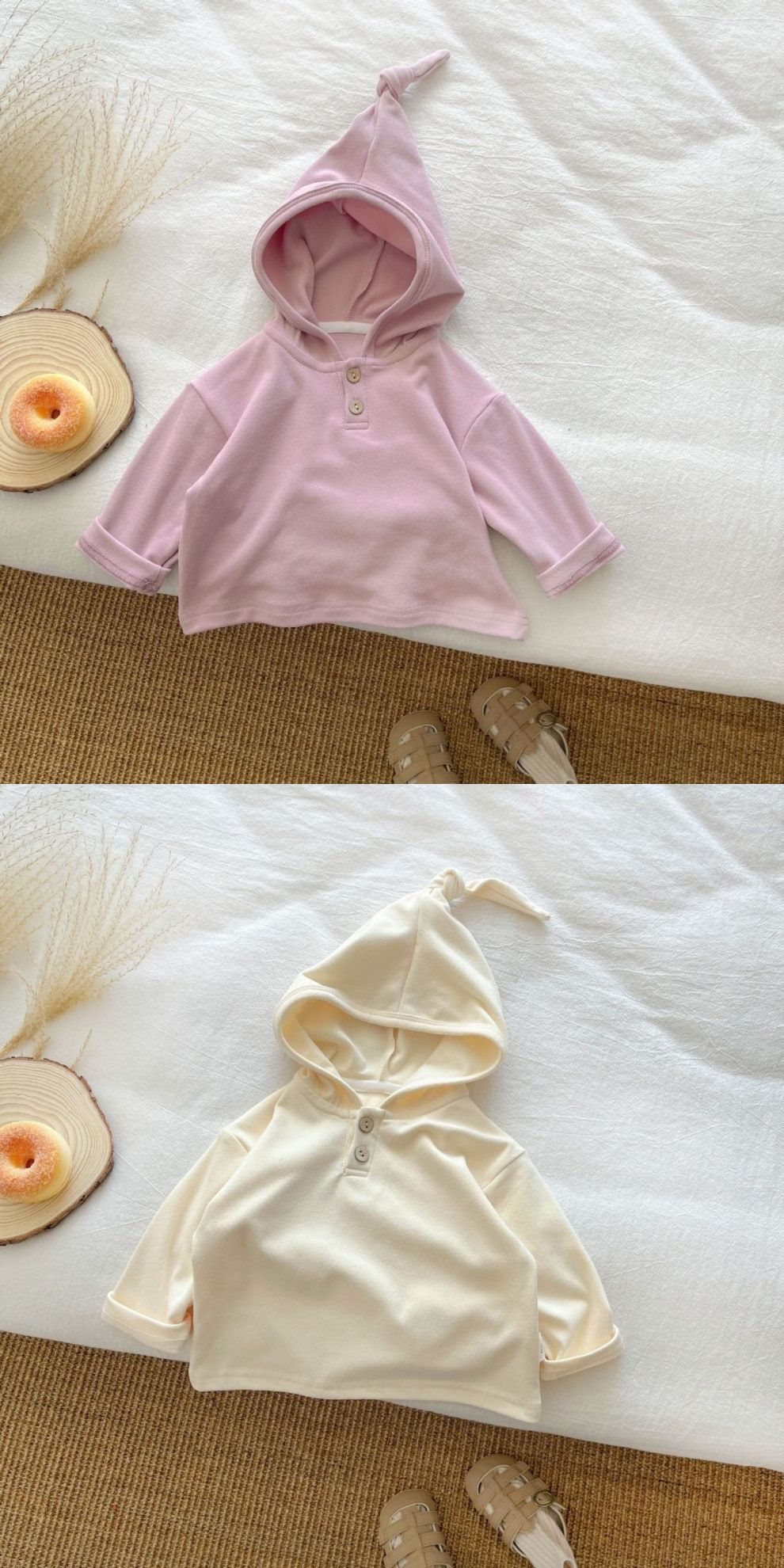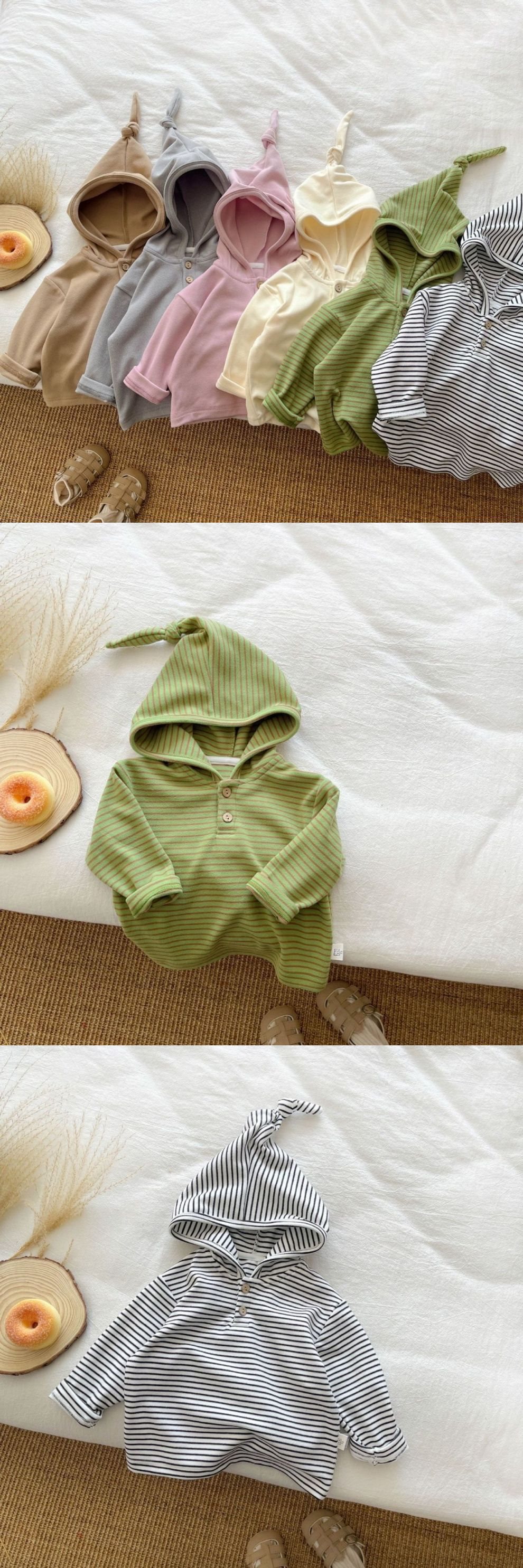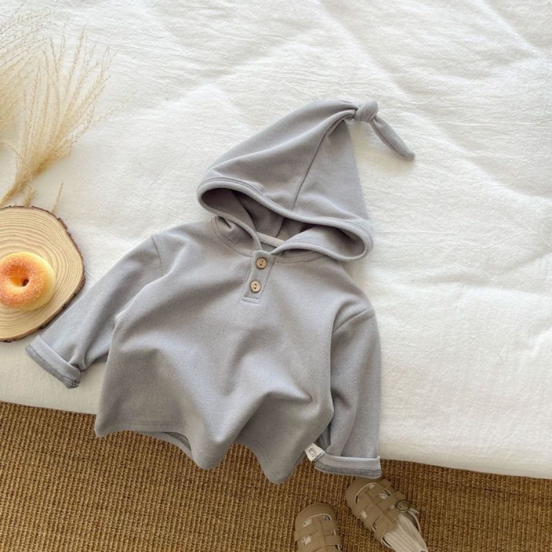 한국 스타일 2025 봄과 가을 소년 아기를위한 아기 탑 마녀 모자 줄무늬 긴 소매 소녀 귀여운 단색 후드 스웨터