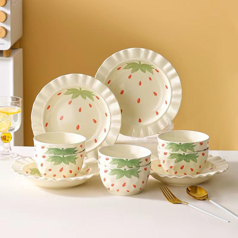 Underglaze 색상-라즈베리를 만나십시오-그릇과 접시 세라믹 식기 세트-스토어 가기