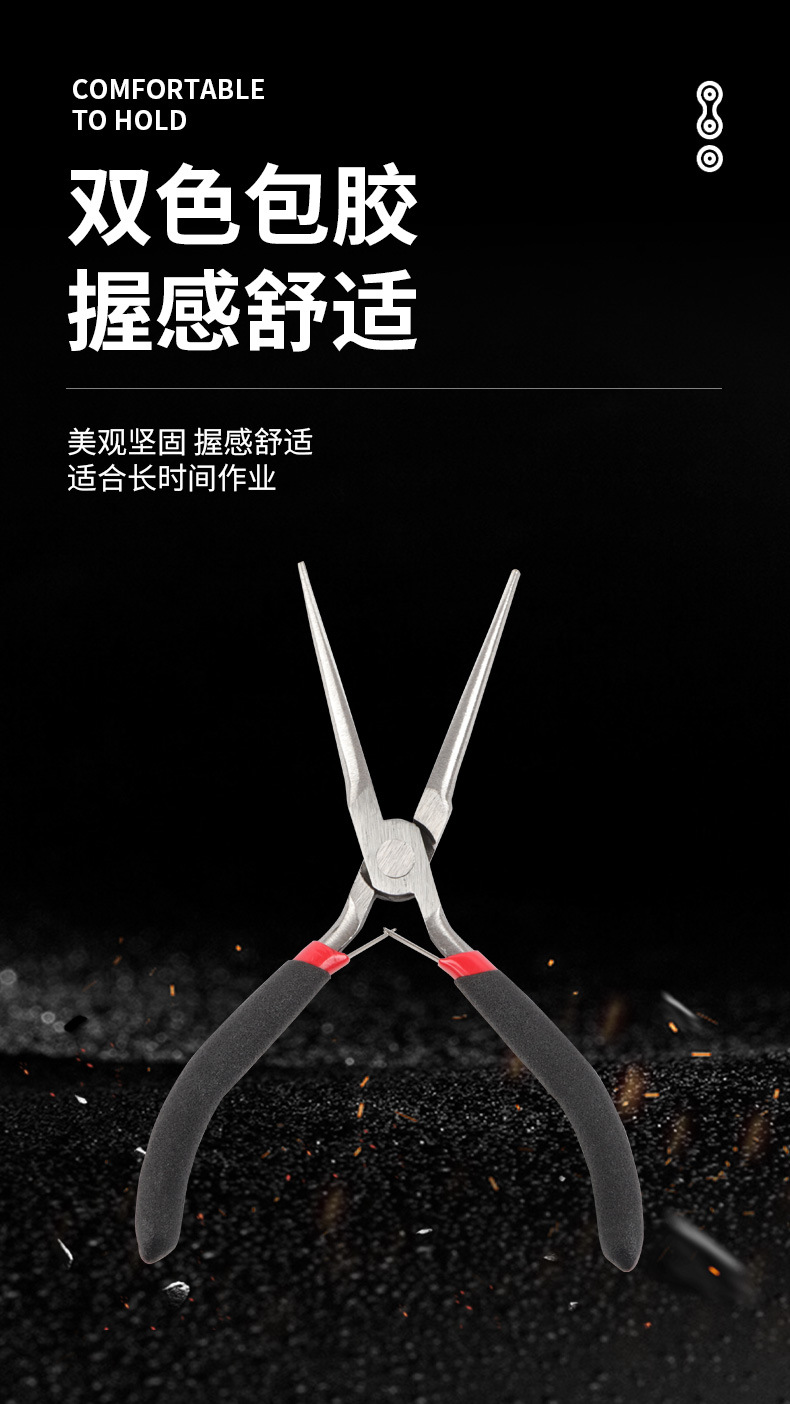 4.5 인치 바늘 코 펜치 제조업체는 4.5 인치 미니 펜치 파편 디자인 긴 코 펜치 DIY 펜치 도구를 생산합니다.