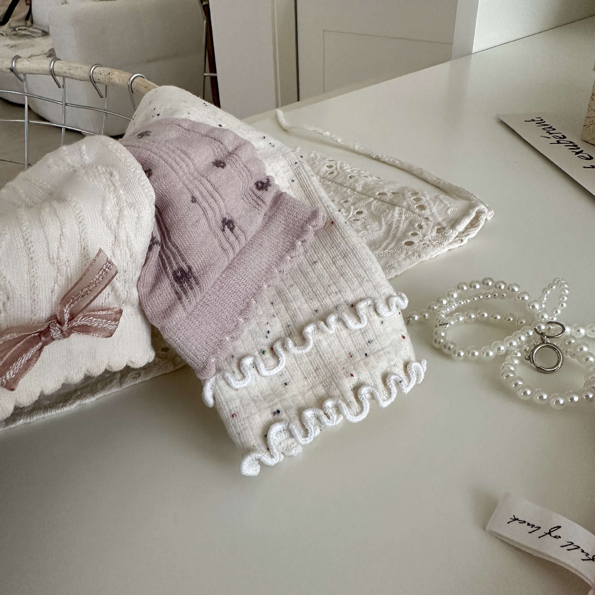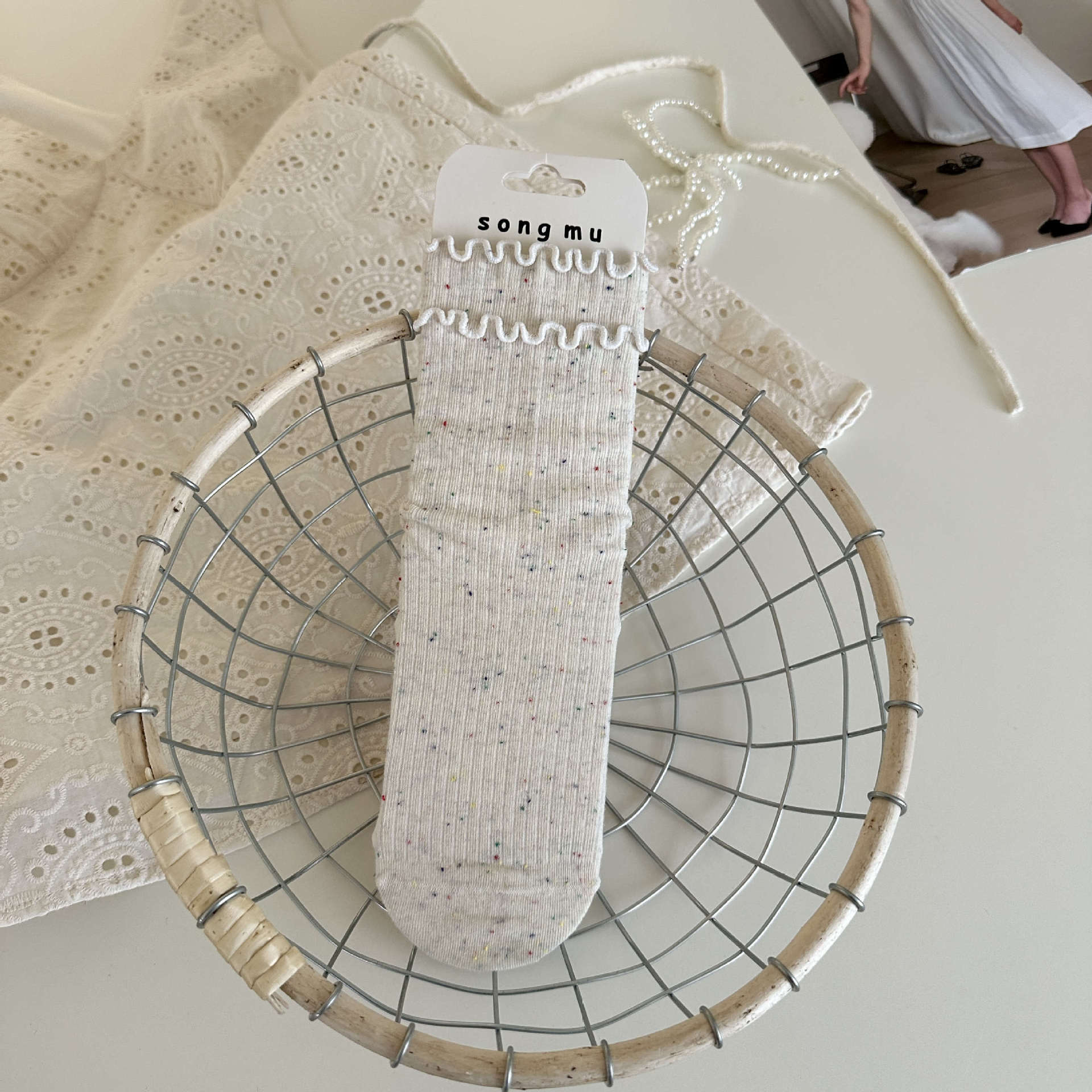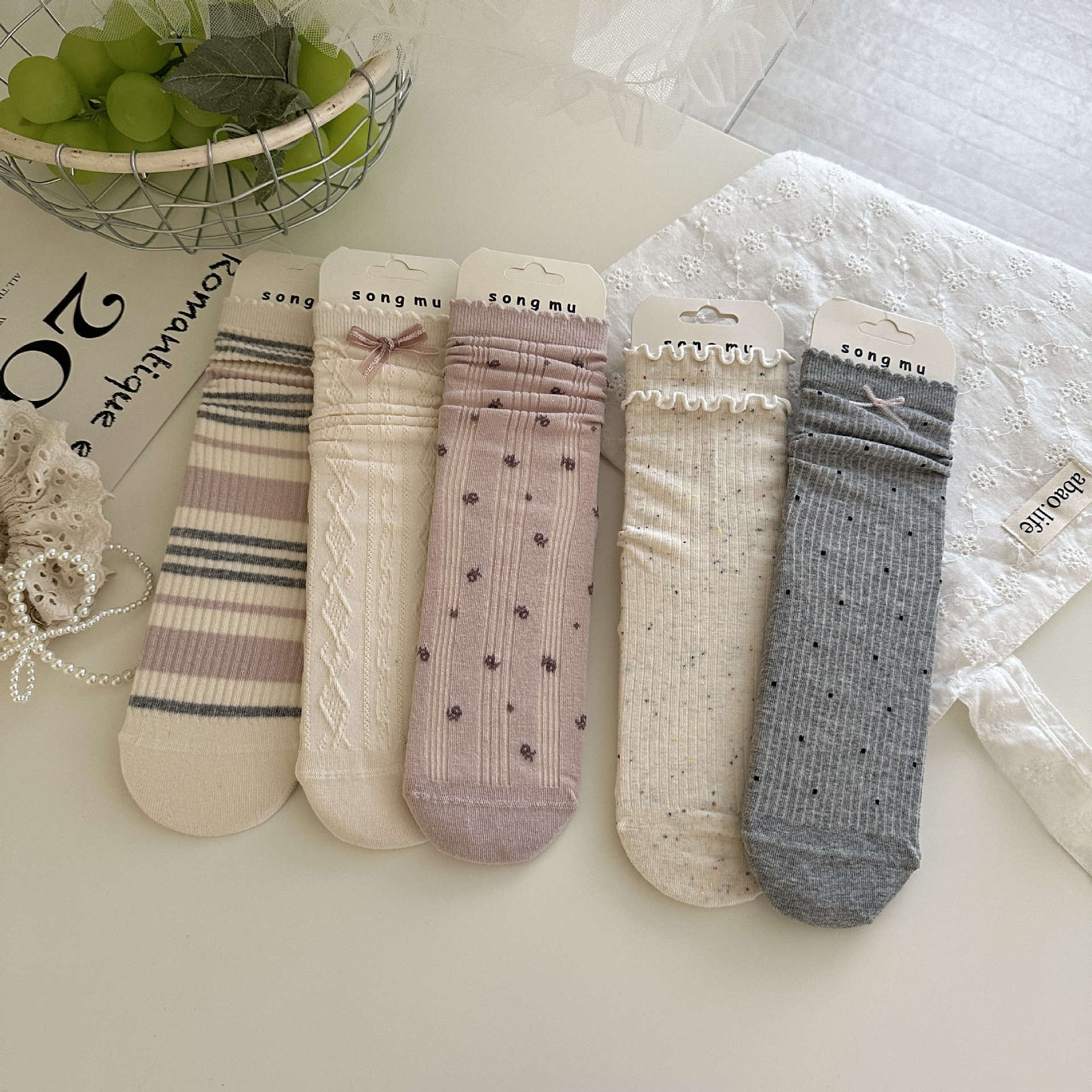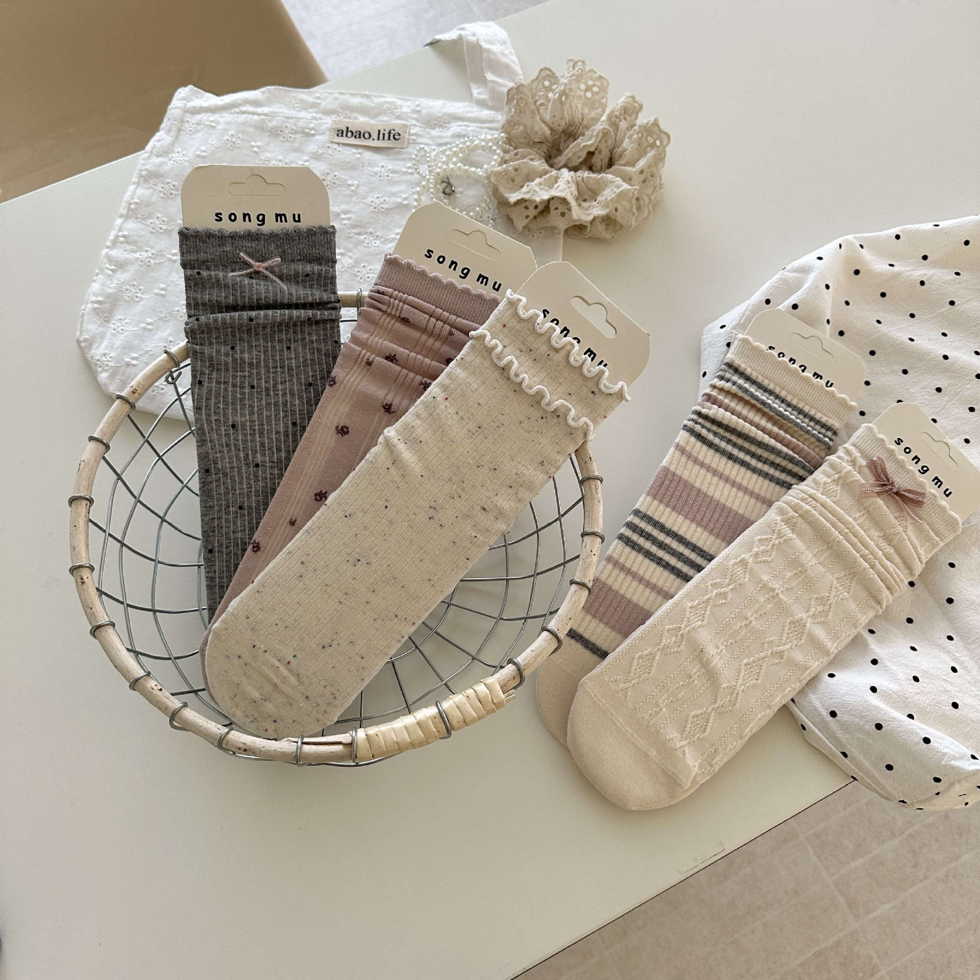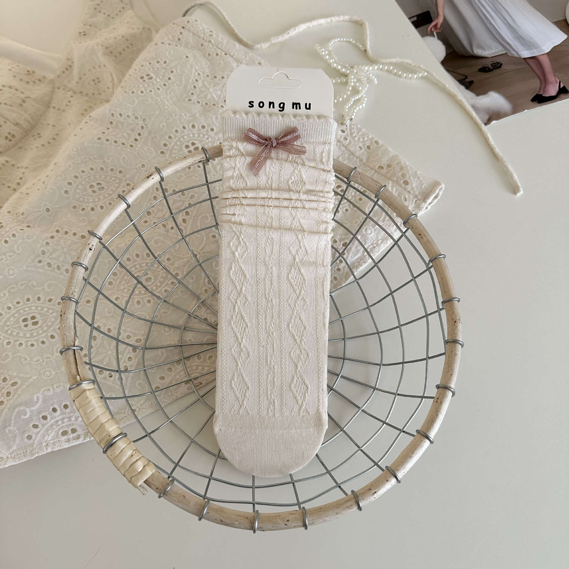 흰색 나비 매듭 웨이브 포인트 양말 어린이 튜브 양말 레이스 여름 얇은 코튼 메쉬 중공 여름 더미 양말