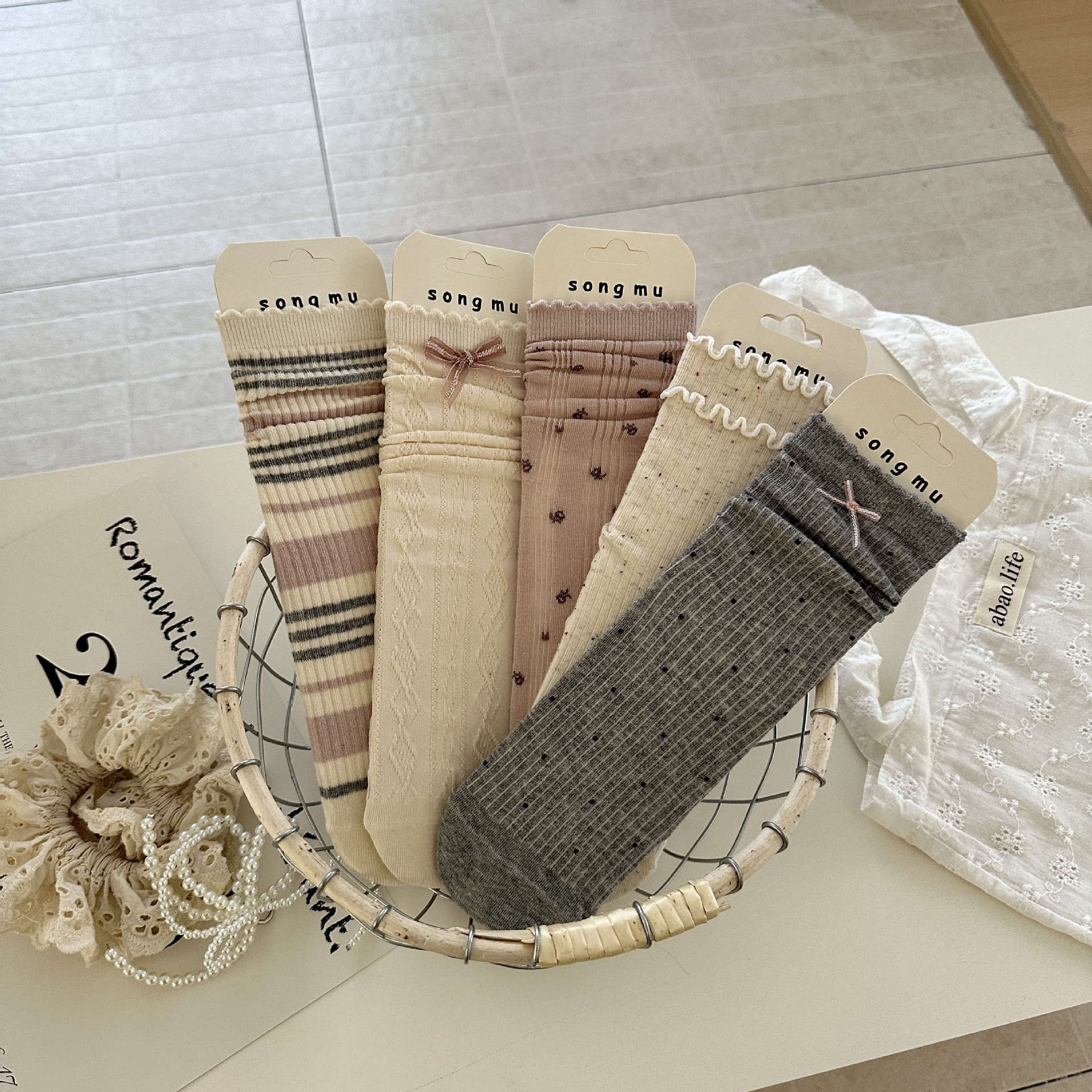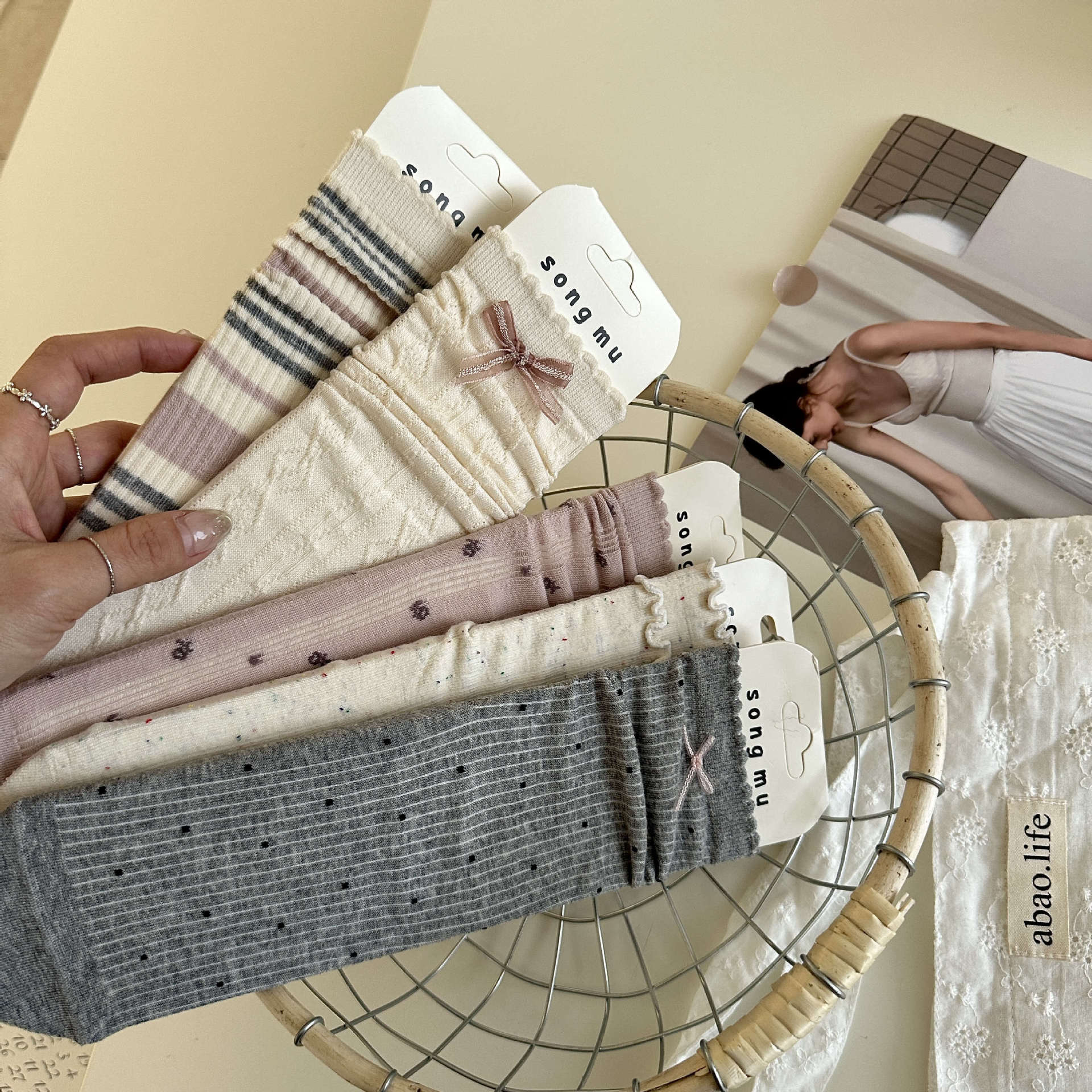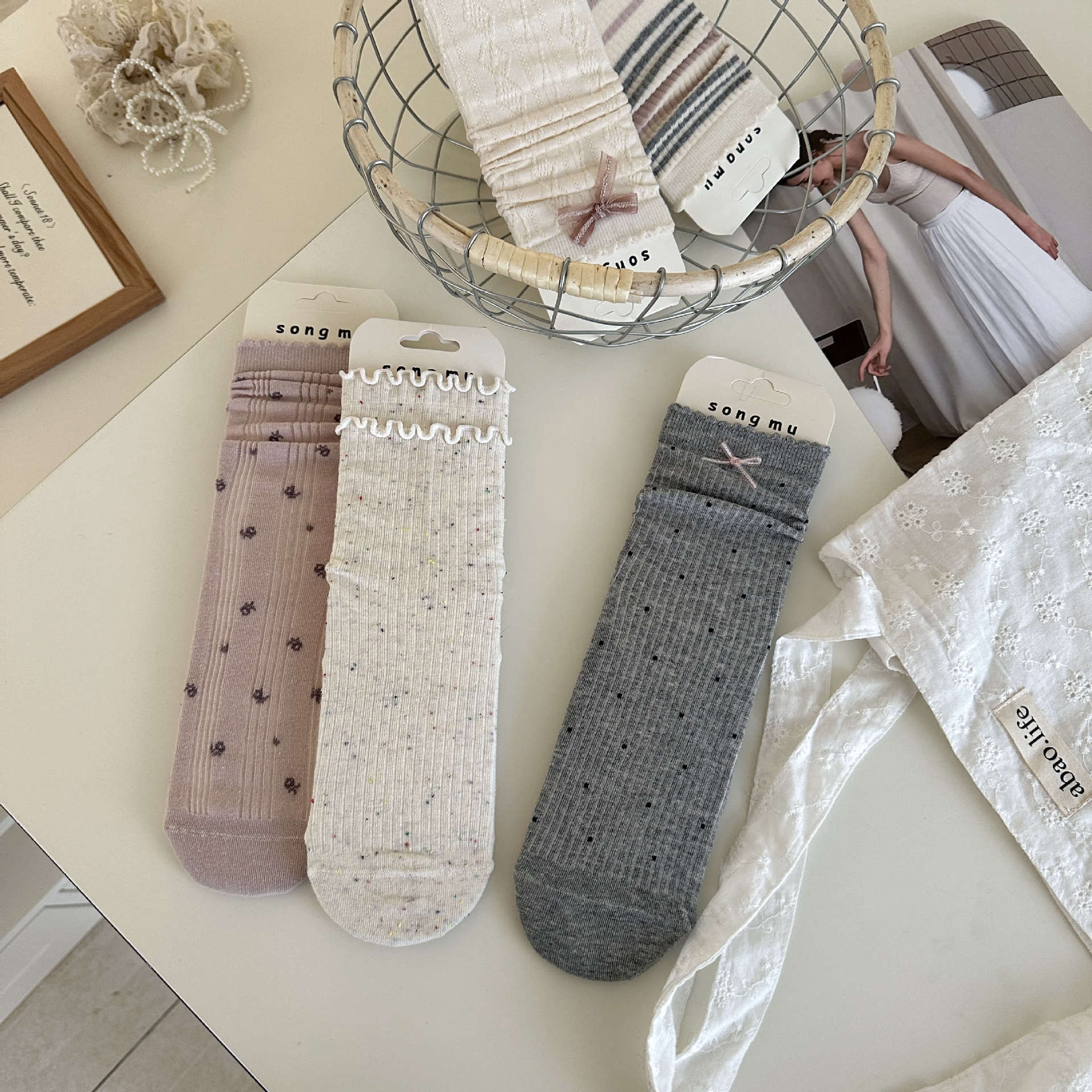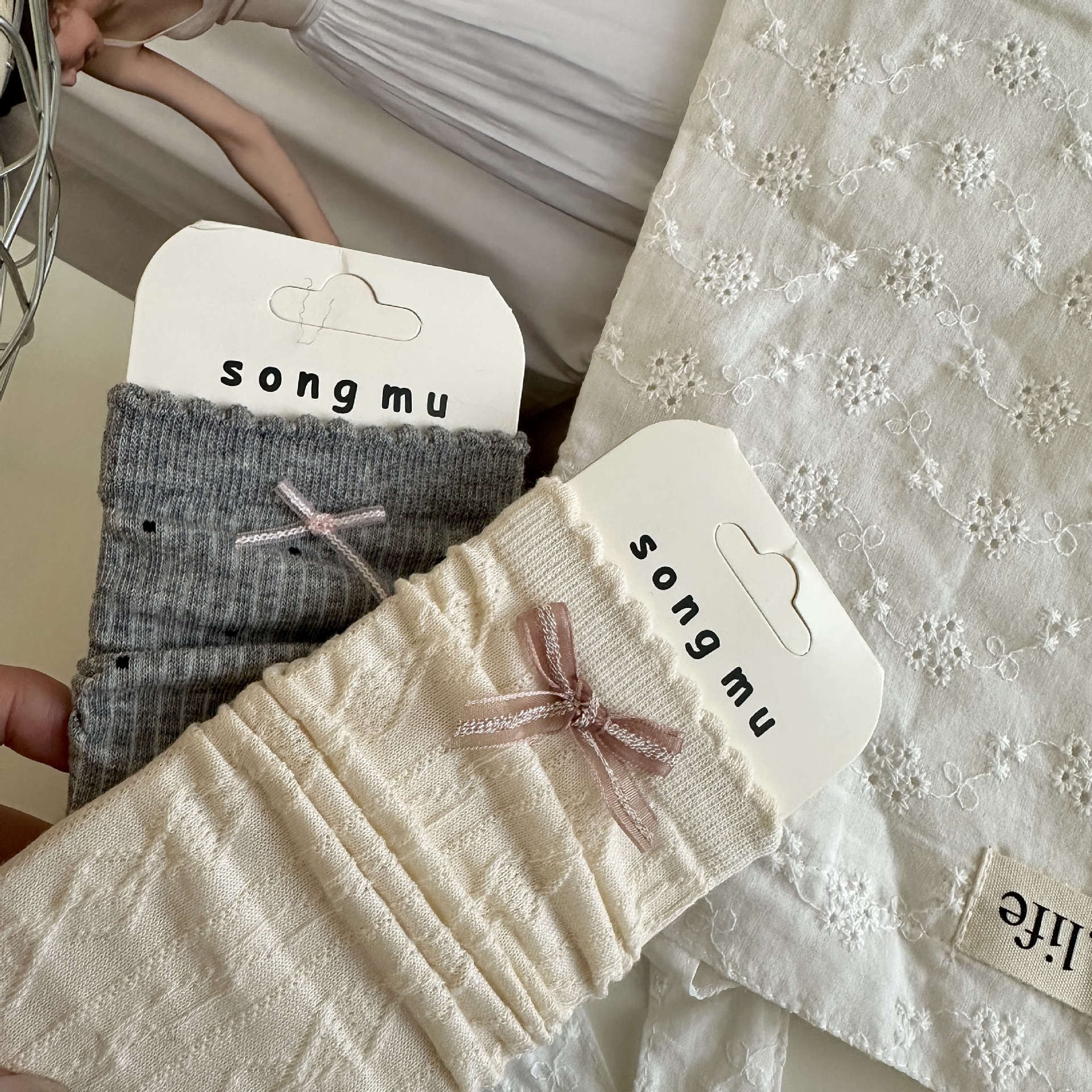흰색 나비 매듭 웨이브 포인트 양말 어린이 튜브 양말 레이스 여름 얇은 코튼 메쉬 중공 여름 더미 양말스토어 가기