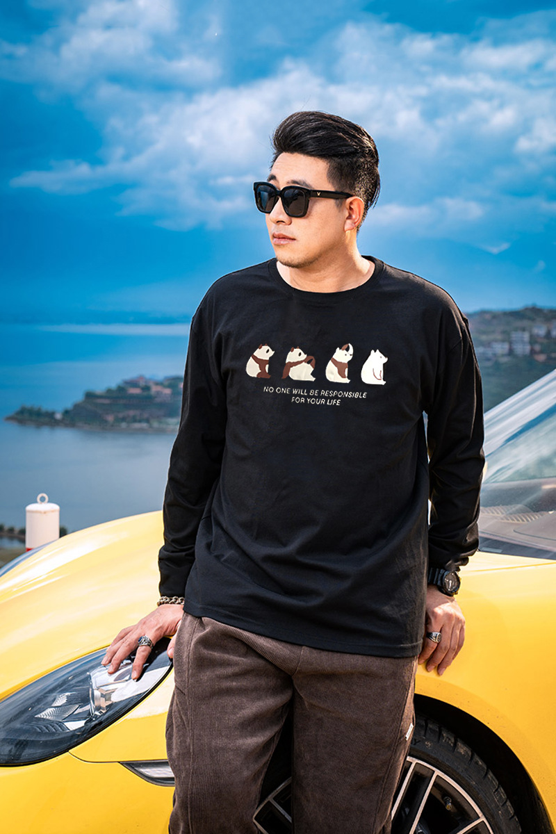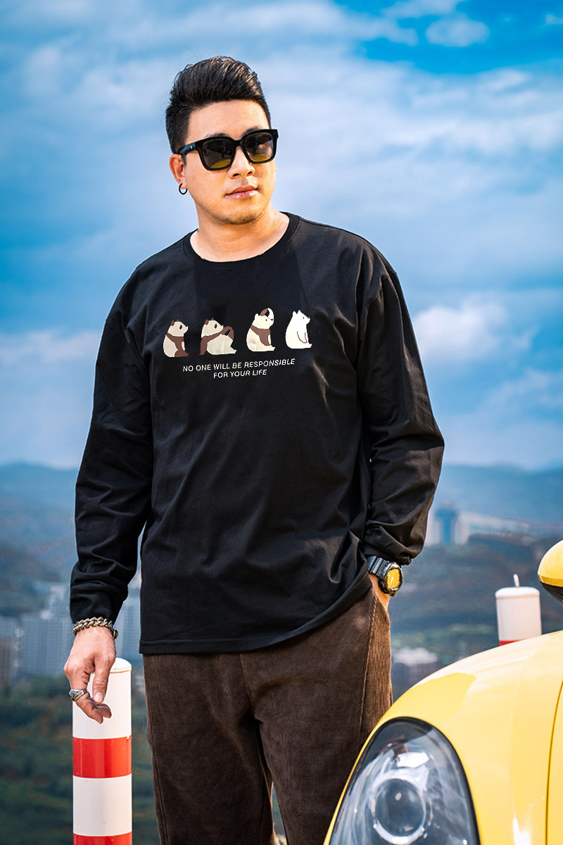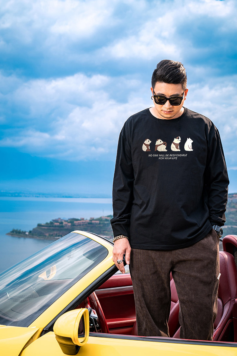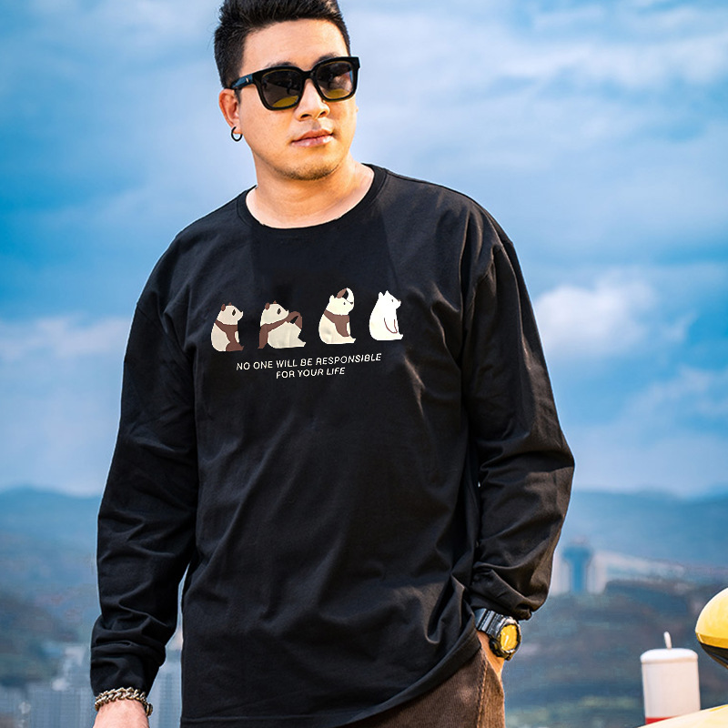2025 남성 초대형 패션 브랜드 지방 느슨한 플러스 지방 증가 봄과 가을 인쇄 긴 소매 티셔츠베이스 셔츠 11X스토어 가기