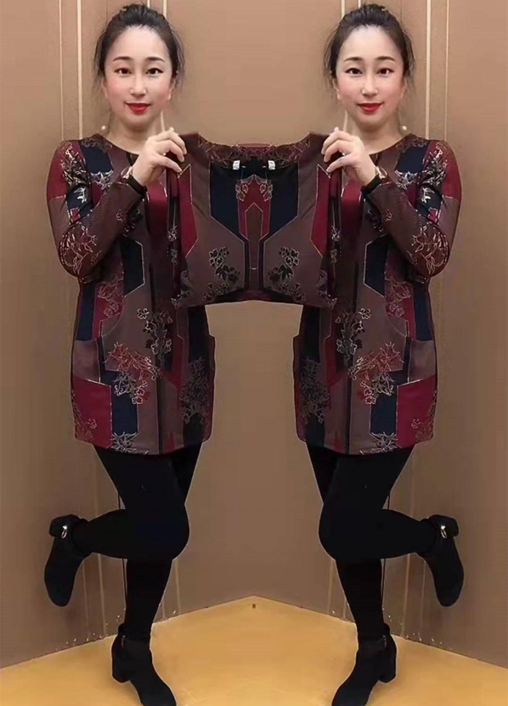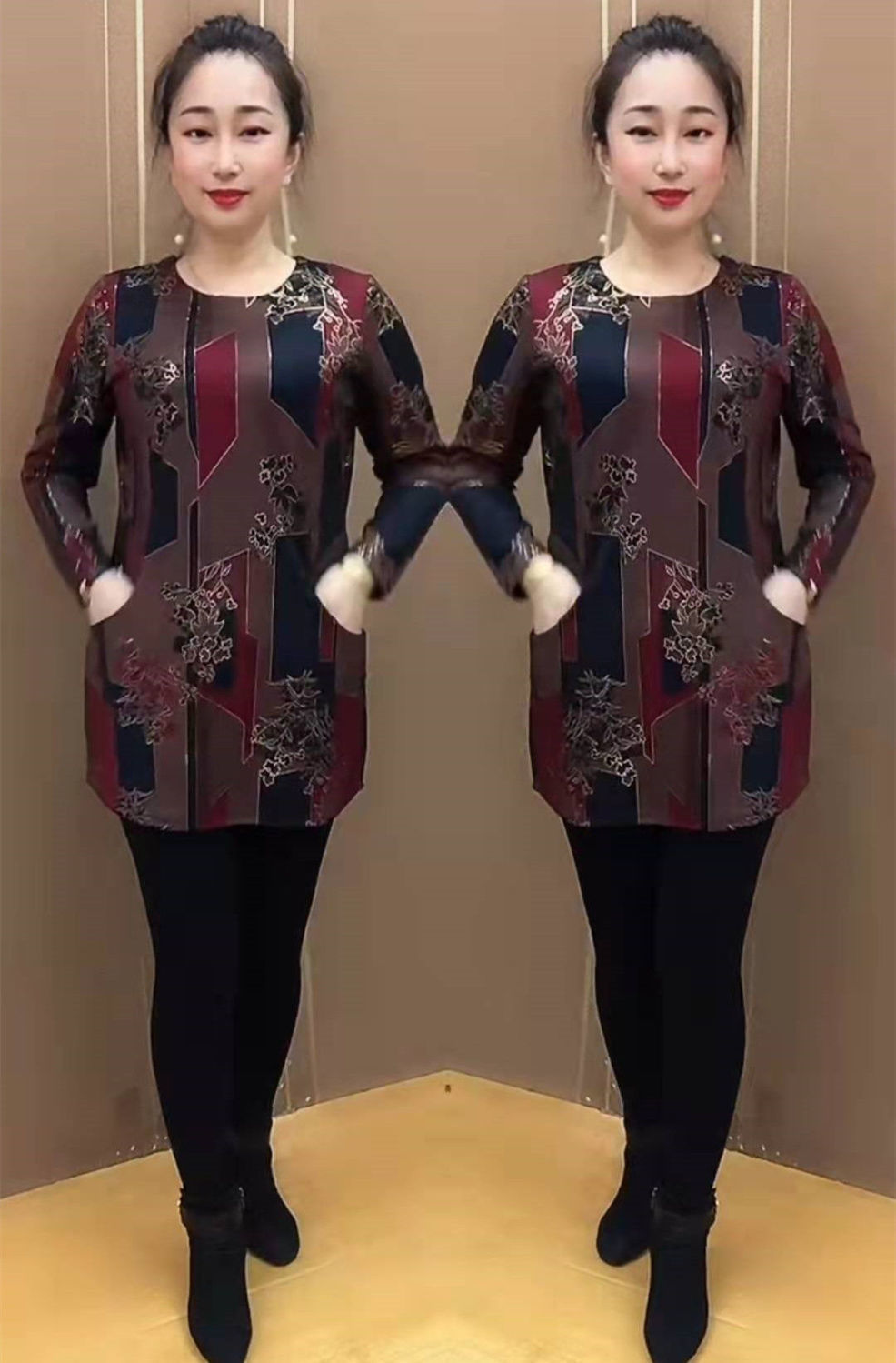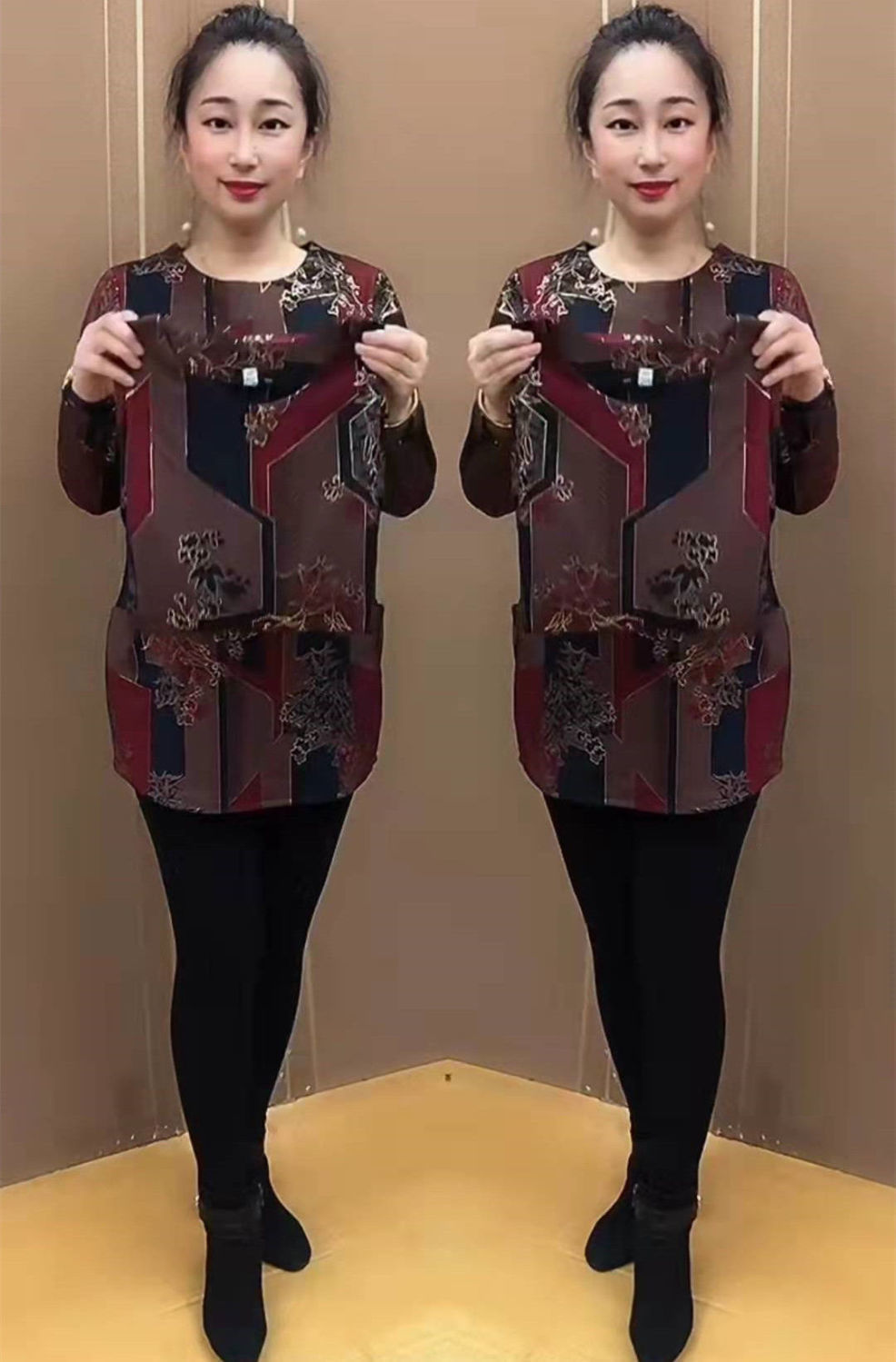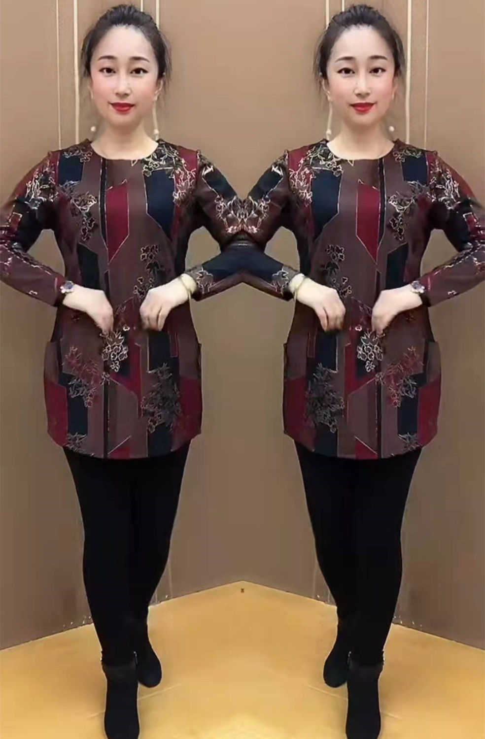 2025 년 봄과 가을 새로운 배꼽 인쇄 된베이스 셔츠 플러스 사이즈 여성의 중년 어머니 느슨한 브론징 긴팔 원피스스토어 가기
