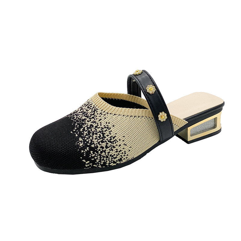 의상 스퀘어 하이힐 로퍼 그라데이션 플라잉 위버 신발 대외 무역 도매 2025 새로운 바오 터 하프 슬리퍼 여성